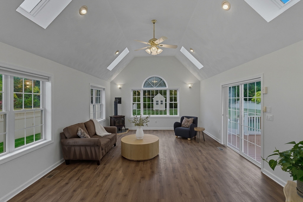 In highly sought after Lakeside Meadows, 9 Loon Way is a testament to timeless beauty. This 4 bedroom, 4 bath home spans nearly 4,500 sq ft. The heart of the home is the open-concept family room with gas fireplace, bathed in natural light and boasting a dramatic 16-foot vaulted ceiling. This spacious room flows seamlessly into a four-season sunroom w/ slider access to a 24x20 composite deck and a heated saltwater pool creating the ultimate outdoor oasis. The kitchen is designed for entertaining, w/ open sightlines & professional grade Viking appliances. A formal DR, LR, home office, 3/4 bath & mudroom off the garage complete the first floor. Upstairs there are four generously sized bedrooms, including a primary suite w/ a custom walk in closet & dedicated laundry room. The finished lower level offers almost 900 sq ft of living space, complete with a large bonus room and guest room with its own ensuite bathroom offering in law potential. Open Sat Nov 1st 12-2 and Sun Nov 2nd 11-1.