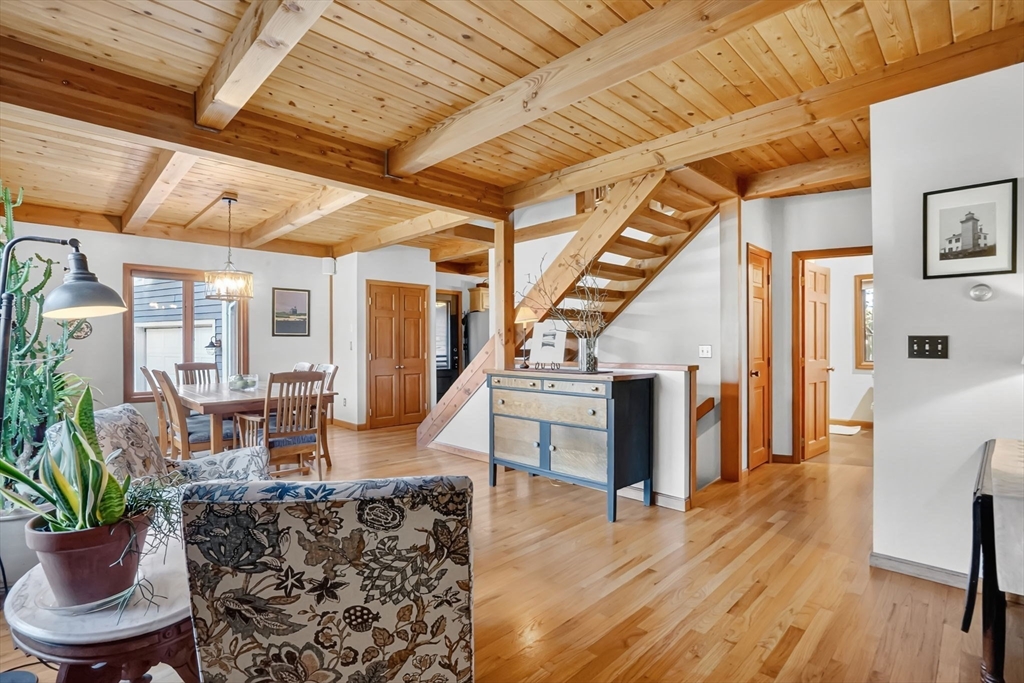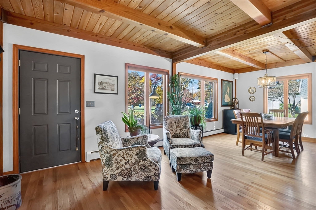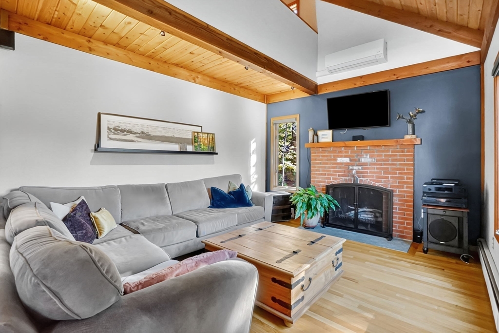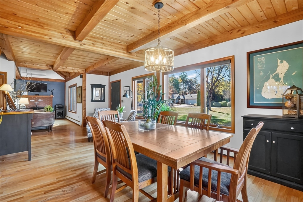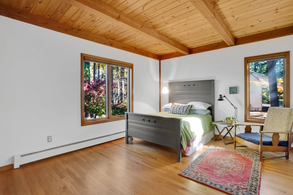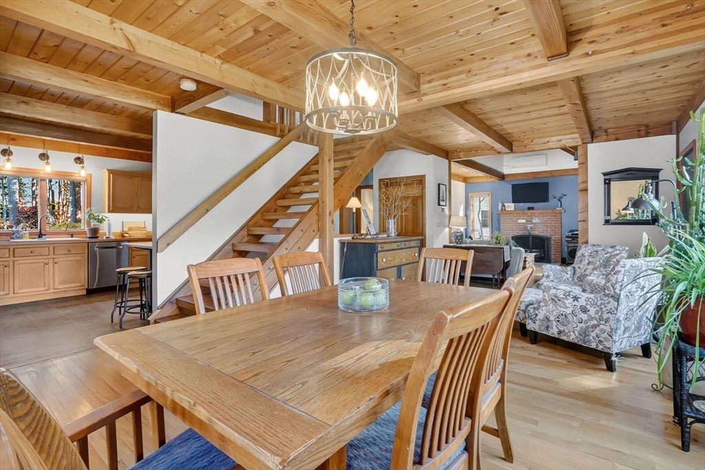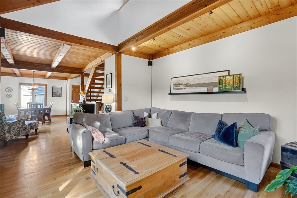**OPEN HOUSE Saturday, Nov 1, from 11:30 - 1:00** Step into this inviting 4 bedroom, 3 full bath post and beam contemporary on nearly an acre in a desirable Easthampton neighborhood. Sunlight pours through large windows, highlighting beautiful exposed beams & soaring cathedral ceilings. The layout transitions from the kitchen, to the open space of the dining & living areas, creating an easy flow for everyday living & entertaining. A convenient 1st fl bedroom rounds out the main floor. Upstairs is the primary bedroom with a wall of windows up to the peak of the ceiling, & plenty of closet space. Finished basement adds even more living space, spacious walk-in closet & full bath—ideal for guests or cozy retreat. Outside, enjoy your private getaway with in-ground saltwater pool & deck. The yard features Granny Smith apple trees, a charming shed, perfect for gardening or a creative studio, and a fire pit. A special home in a great location minutes to downtown, bike path, & local amenities.