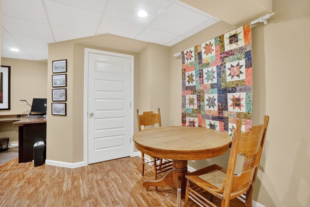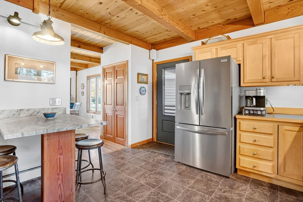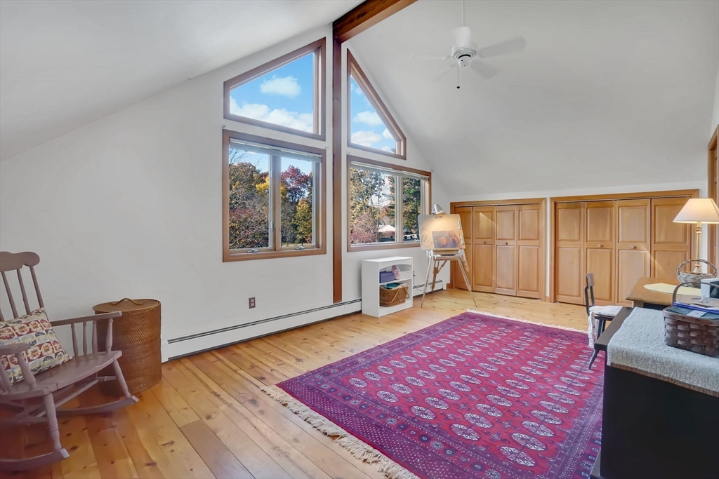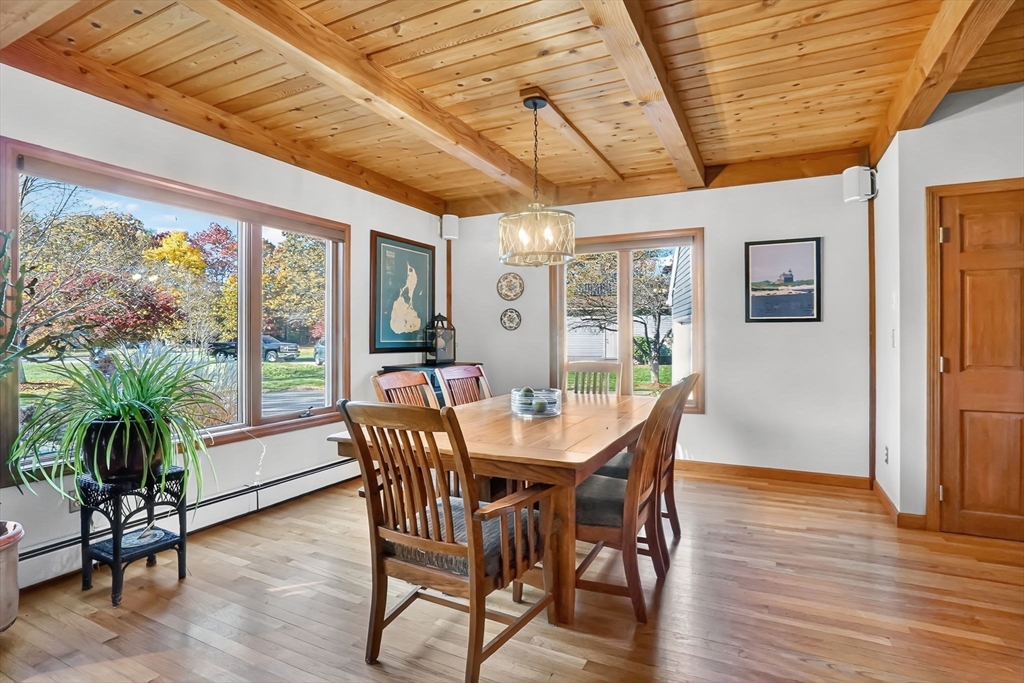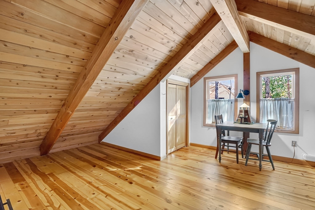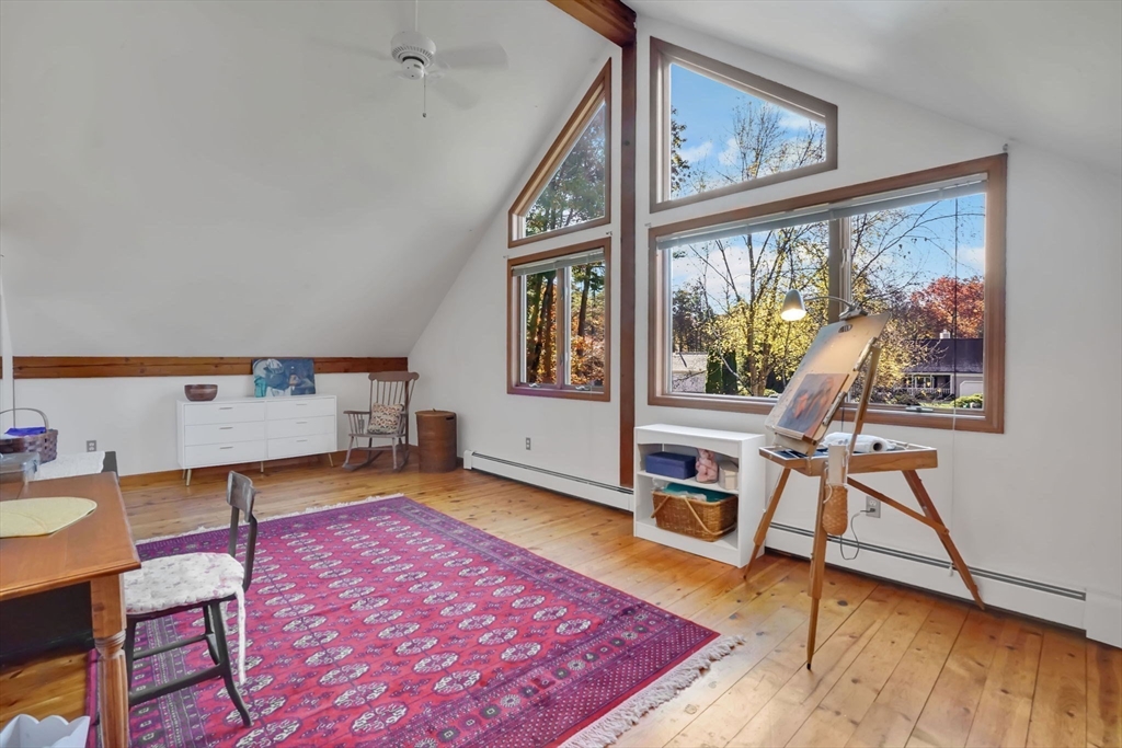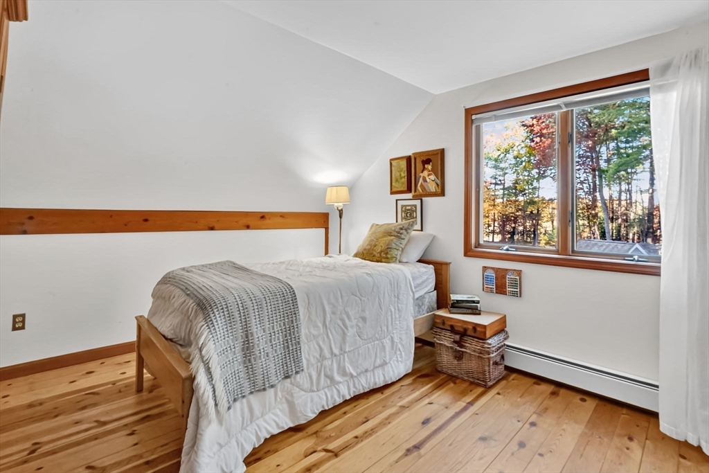 **OPEN HOUSE Saturday, Nov 1, from 11:30 - 1:00** Step into this inviting 4 bedroom, 3 full bath post and beam contemporary on nearly an acre in a desirable Easthampton neighborhood. Sunlight pours through large windows, highlighting beautiful exposed beams & soaring cathedral ceilings. The layout transitions from the kitchen, to the open space of the dining & living areas, creating an easy flow for everyday living & entertaining. A convenient 1st fl bedroom rounds out the main floor. Upstairs is the primary bedroom with a wall of windows up to the peak of the ceiling, & plenty of closet space. Finished basement adds even more living space, spacious walk-in closet & full bath—ideal for guests or cozy retreat. Outside, enjoy your private getaway with in-ground saltwater pool & deck. The yard features Granny Smith apple trees, a charming shed, perfect for gardening or a creative studio, and a fire pit. A special home in a great location minutes to downtown, bike path, & local amenities.