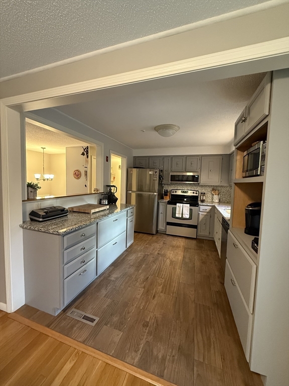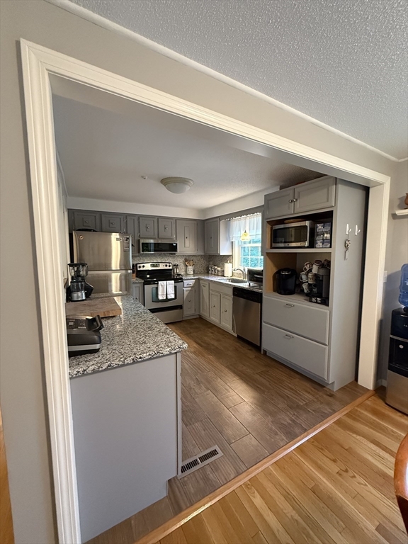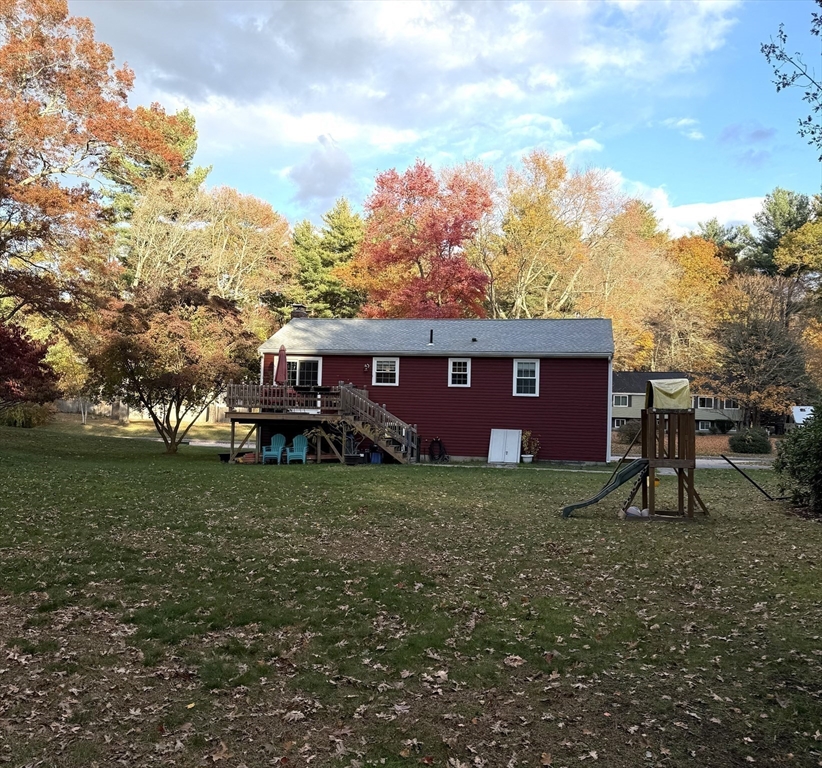 Welcome to this beautiful home located on a cul-de-sac in desirable North Bellingham neighborhood. This 3 bd, 1 bth split ranch sits on almost 2 acres, with private trails to water access of Beaver Pond. Imagine canoeing and fishing in summer and skating or hockey in winter, right in your own back yard. Gleaming hardwood, and tile floors. Updated, roof, clapboard, front door, slider door, bathroom, kitchen, hot water heater, refrigerator, and some windows through out main floor within the last 5 years. Cozy fireplace in living room and wood stove in basement. Bright and sunny open concept in kitchen/dining/living areas. Enjoy morning coffee on the back deck or grilled dinners in the evenings. Lots of potential in the unfinished area of basement, to add a garage or more living space. Wild life in and around the yard is pretty awesome. This home is truly a Nature Lovers Dream!