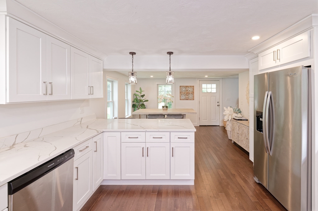 Welcome to this beautifully remodeled single-family style condo in desirable Medway! Part of a small six-unit HOA, this 3BR, 2.5 bath home offers the privacy of a standalone residence with the ease of condo living. Thoughtfully renovated from top to bottom, it feels more like new construction, featuring modern systems, finishes, and design while preserving a touch of historic charm. The bright, open layout includes gleaming hardwood floors, a spacious living room with a cozy gas fireplace, and a stunning white kitchen with quartz counters, stainless steel appliances, and plenty of storage. Upstairs are three generous bedrooms, including a serene primary suite with a beautifully tiled bath and glass shower doors, plus home office space perfect for remote work. The welcoming front porch and meticulous attention to detail only add to the home's charm. Great location close to shopping, dining and 495 for easy commuter access -come see it today and move just in time for the holidays!