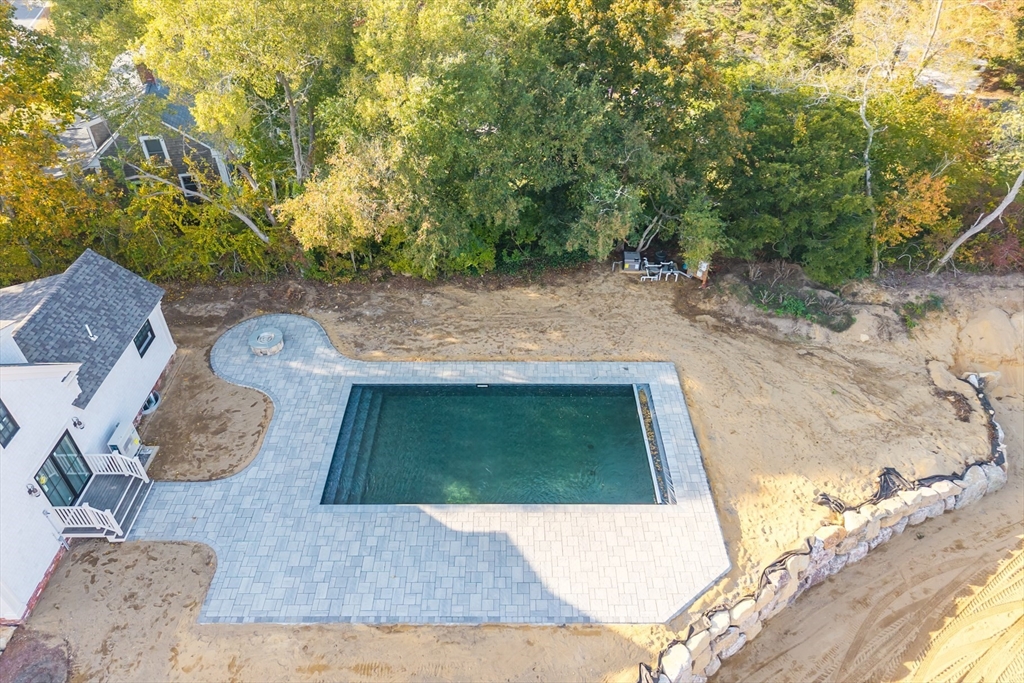 Blending resort-style amenities with timeless New England character, this exceptional Harwich compound redefines multi-generational coastal living. A fully restored antique guest house pairs seamlessly with a brand-new, custom-built three-bedroom main residence by Whitcomb Building, one of Cape Cod’s premier craftsmen. Together they create a campus-style retreat distinguished by nautical detailing and masterful woodwork. The main home features a farmer’s porch with skylights and hanging bench, a chef’s kitchen with island and sliders to the porch and yard, a first-floor primary suite, and two spacious upstairs bedrooms plus lounge. The antique offers vaulted ceilings, exposed beams, and a finished walk-out lower level with private patio. A handcrafted stone wall connects both homes and integrates the pool, bluestone terrace, and fire-pit area. Set in a central Harwich location near beaches, shops, and dining, this property unites craftsmanship, resort luxury, and Cape Cod charm.