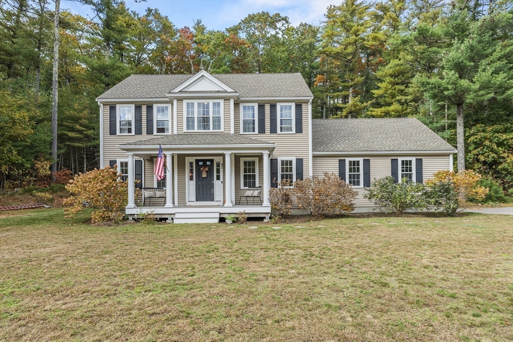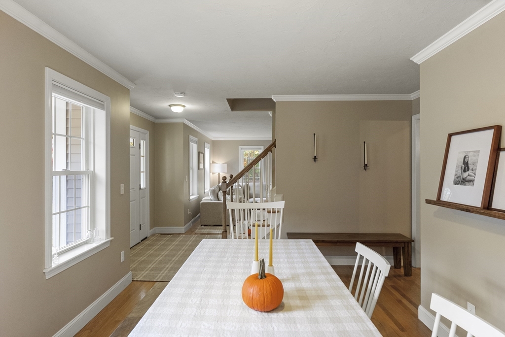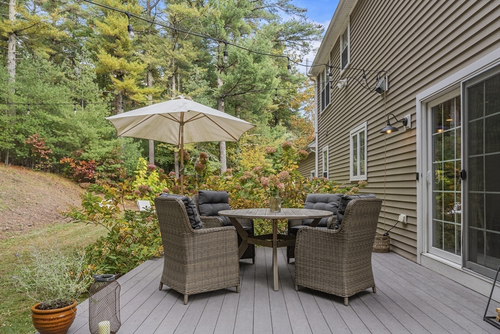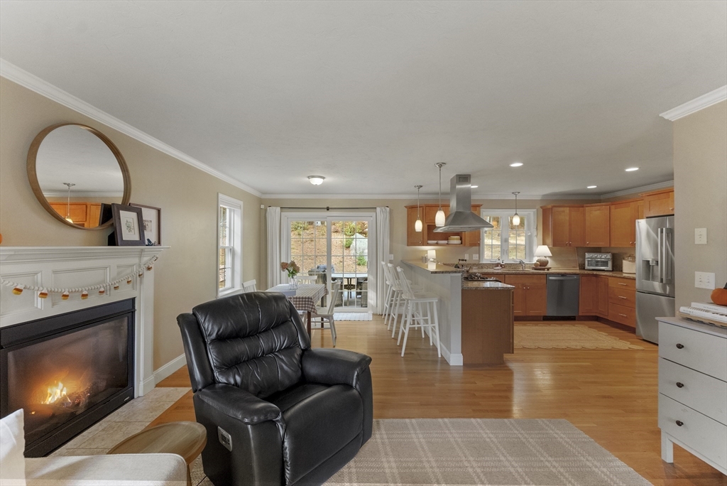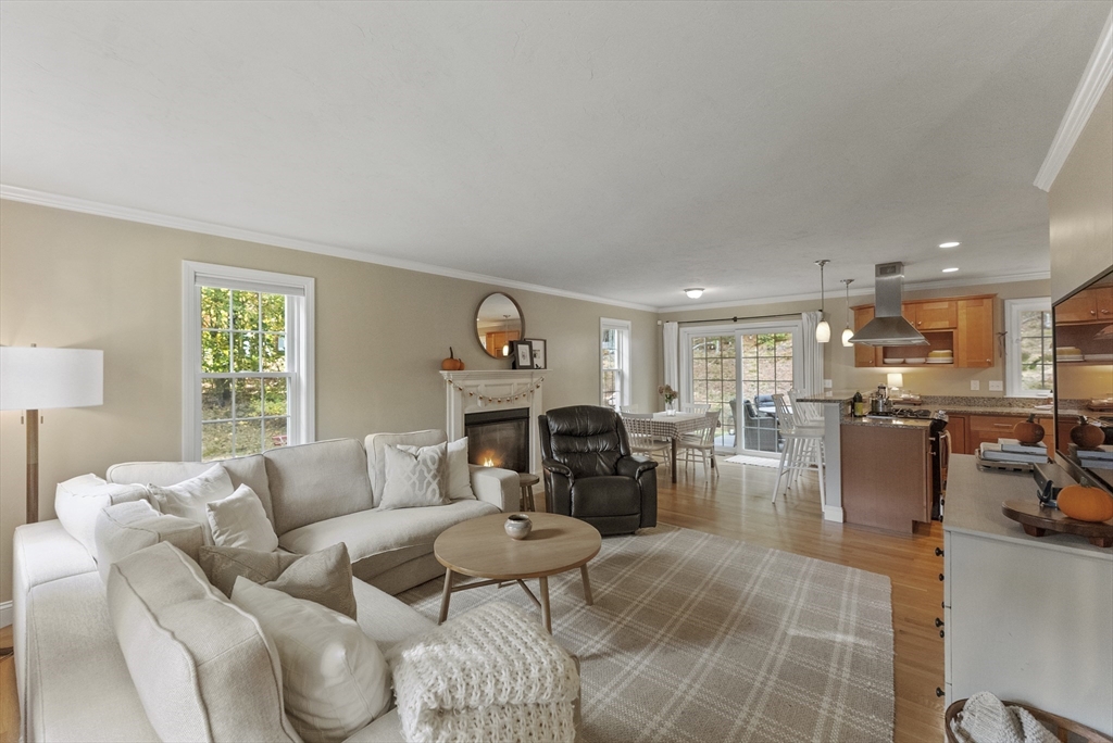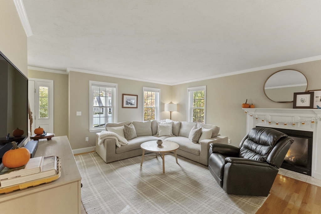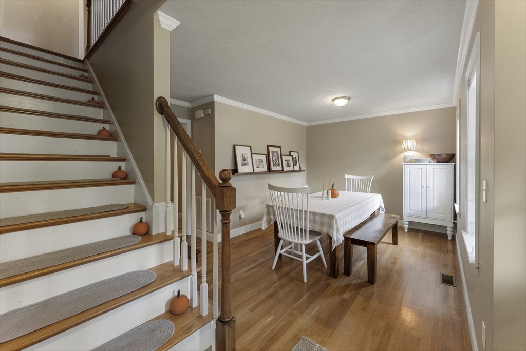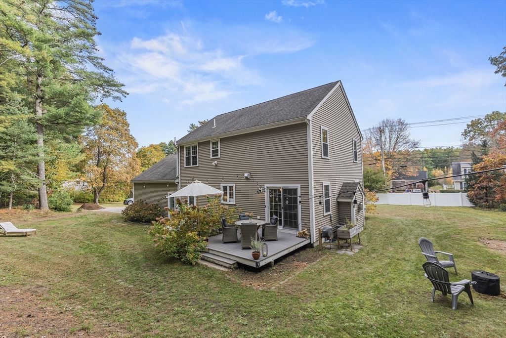 FALL in LOVE for the holidays!! This Pottery Barn Beautiful Colonial home is 12 years young and has been lovingly maintained by one owner! Turn key!! Perfectly situated on a huge, private lot with white privacy fence and surrounded by conservation land. You will love the high ceilings, open floor plan, neutral palette and gleaming hardwood floors! Inviting gas fireplace. Central A/C. Gorgeous chef's kitchen with warm honey cabinetry, SS appliances, pantry and hooded gas stove with peninsula and wonderful dining area. Large formal dining room for your holiday dinners and lovely 1st fl bath with laundry. Slider leads to composite deck for extra outdoor entertaining. Oversized 2 car garage attached w/side entry. Invisible dog fence. Fantastic finished basement provides added flex space plus craft room! 3 generous bedrooms up including huge primary BR w/ walk-in closet. Spacious bath w/ double vanity. 2nd fl. landing provides extra nook for desk/office space. Walk-up attic. A REAL BEAUTY!!