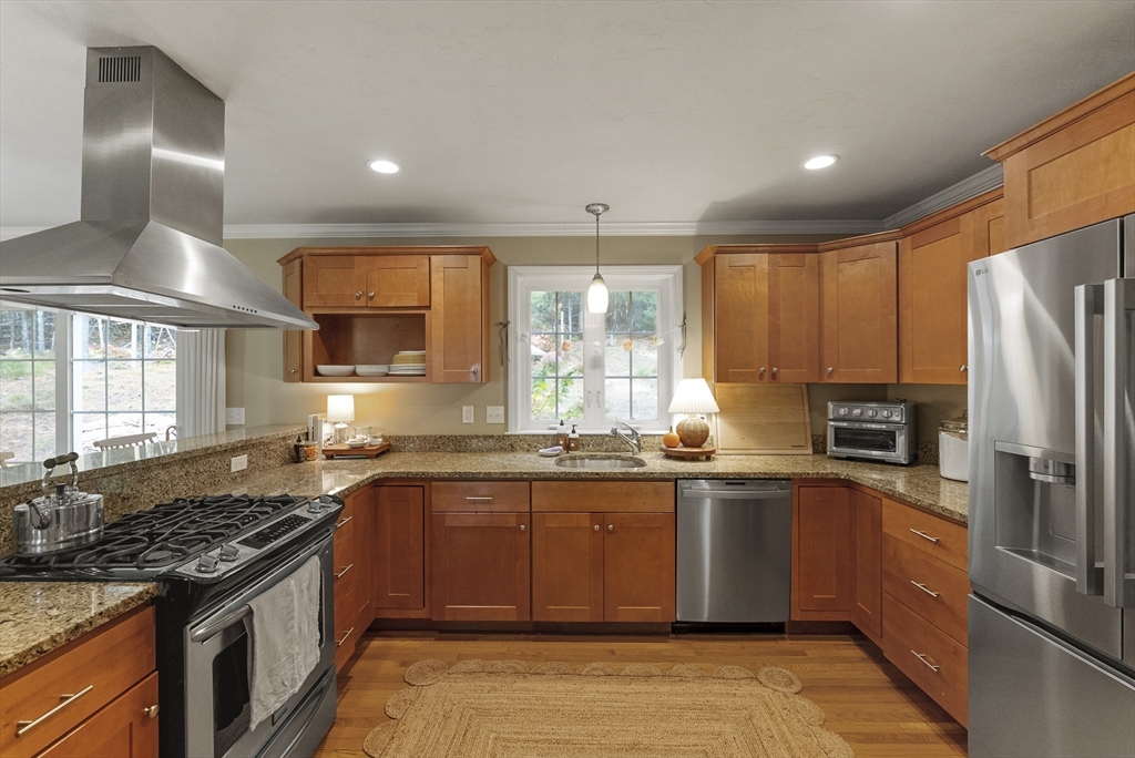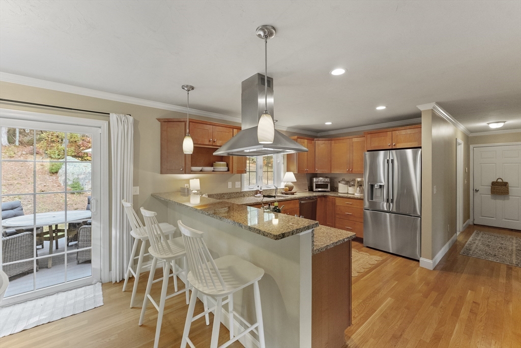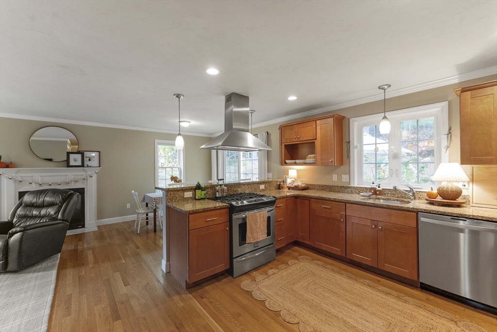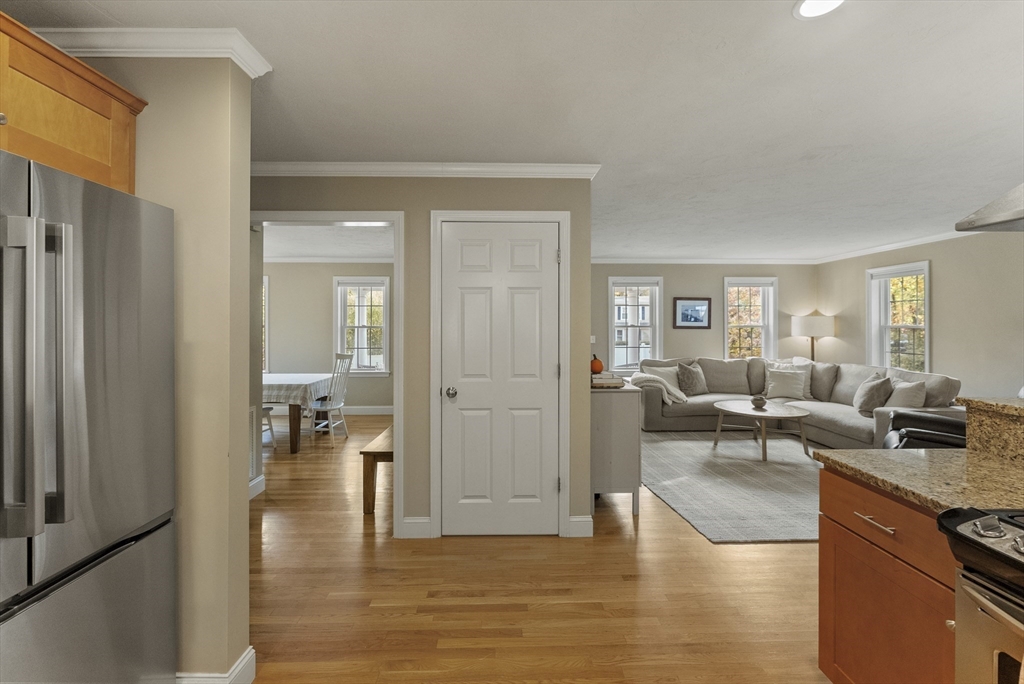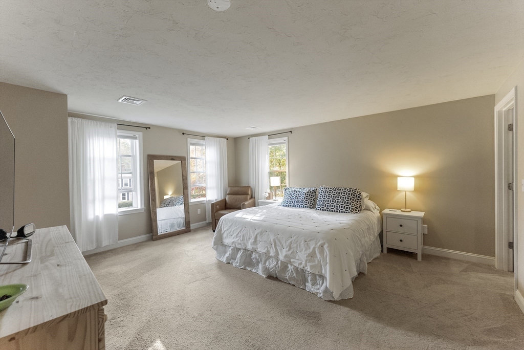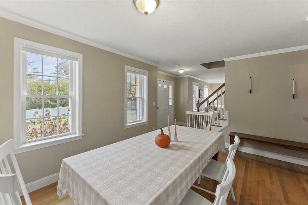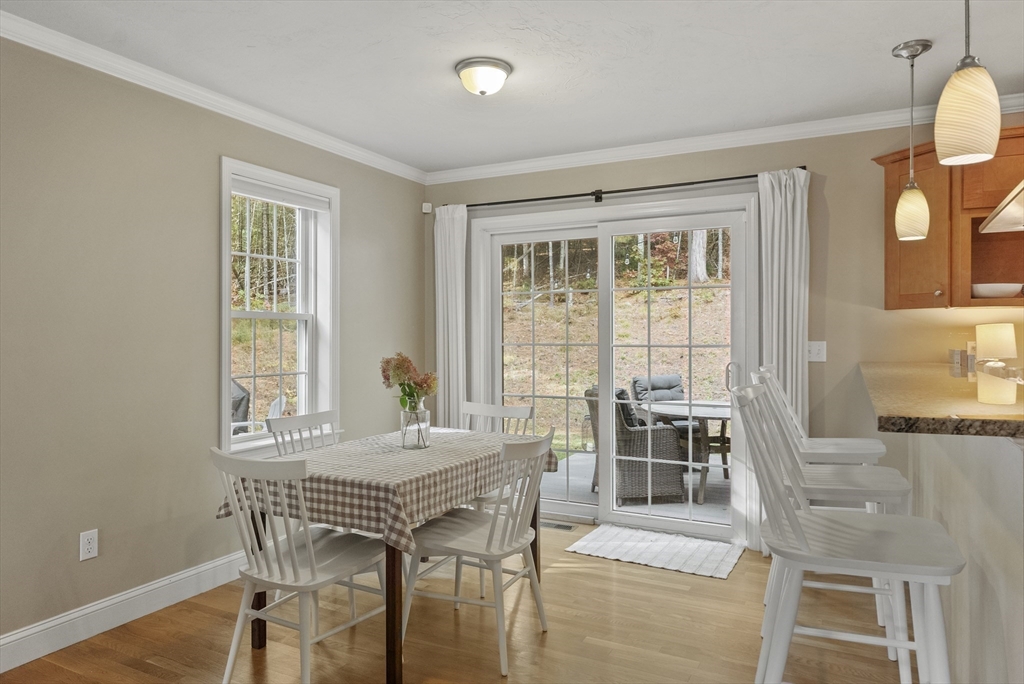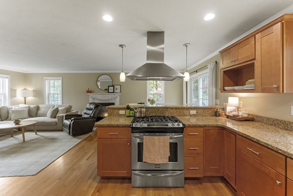 FALL in LOVE for the holidays!! This Pottery Barn Beautiful Colonial home is 12 years young and has been lovingly maintained by one owner! Turn key!! Perfectly situated on a huge, private lot with white privacy fence and surrounded by conservation land. You will love the high ceilings, open floor plan, neutral palette and gleaming hardwood floors! Inviting gas fireplace. Central A/C. Gorgeous chef's kitchen with warm honey cabinetry, SS appliances, pantry and hooded gas stove with peninsula and wonderful dining area. Large formal dining room for your holiday dinners and lovely 1st fl bath with laundry. Slider leads to composite deck for extra outdoor entertaining. Oversized 2 car garage attached w/side entry. Invisible dog fence. Fantastic finished basement provides added flex space plus craft room! 3 generous bedrooms up including huge primary BR w/ walk-in closet. Spacious bath w/ double vanity. 2nd fl. landing provides extra nook for desk/office space. Walk-up attic. A REAL BEAUTY!!