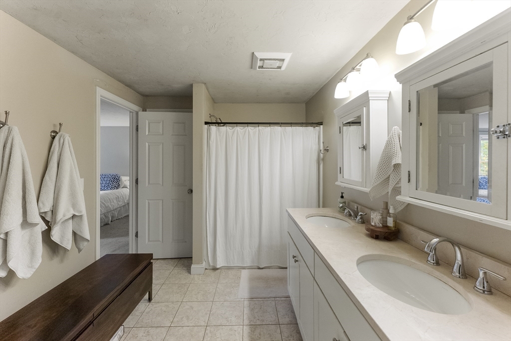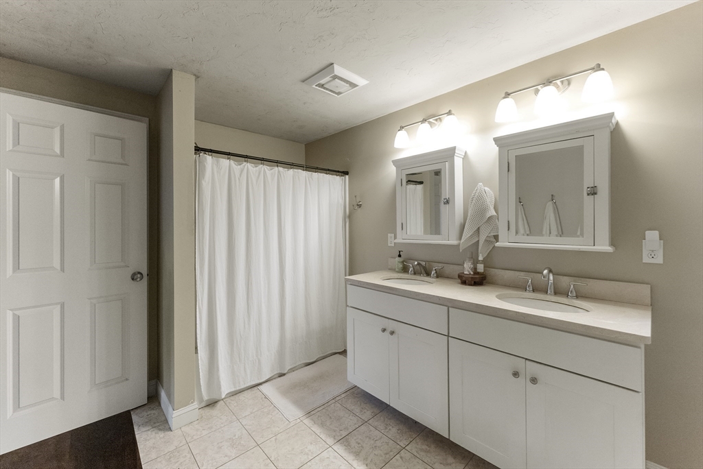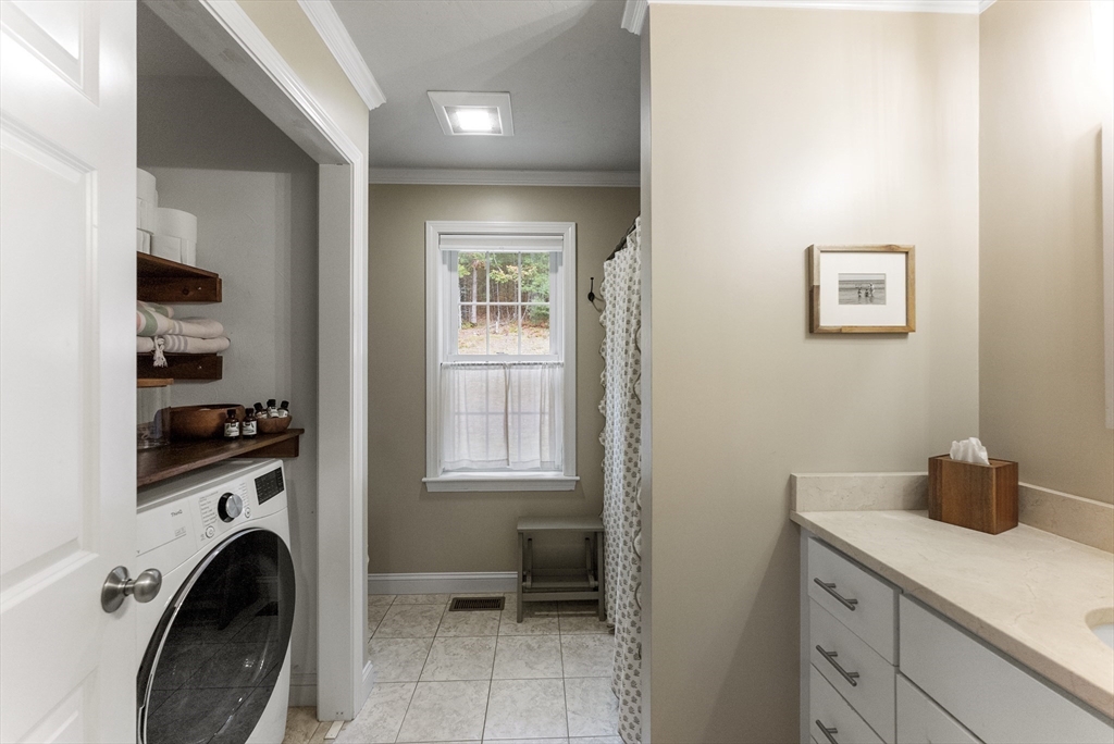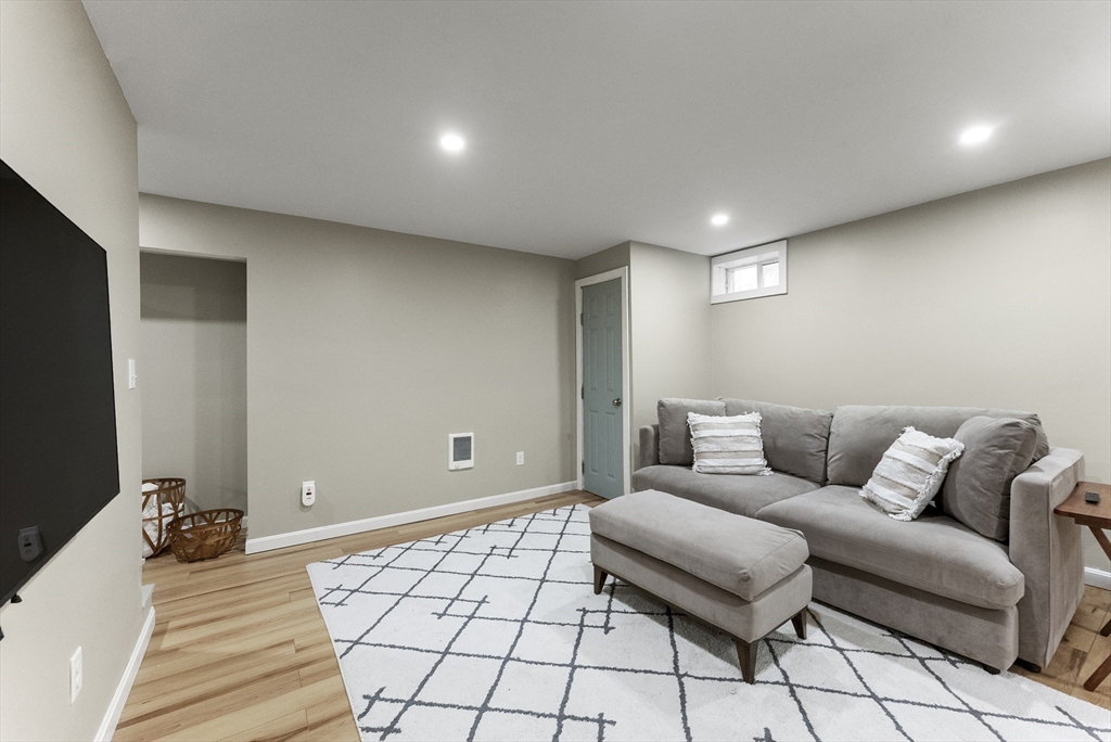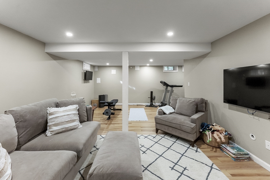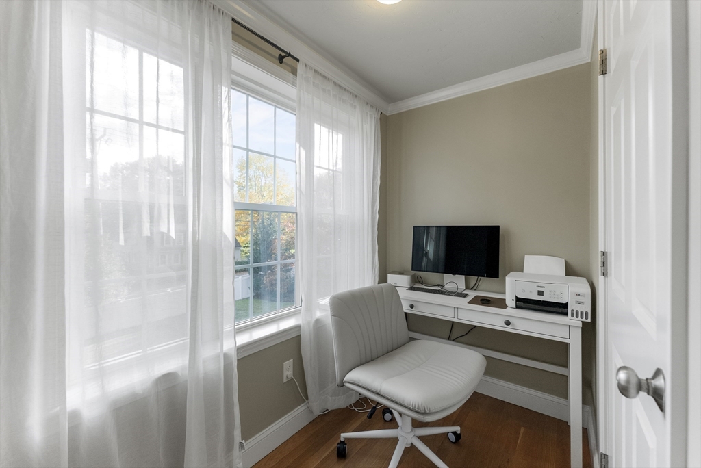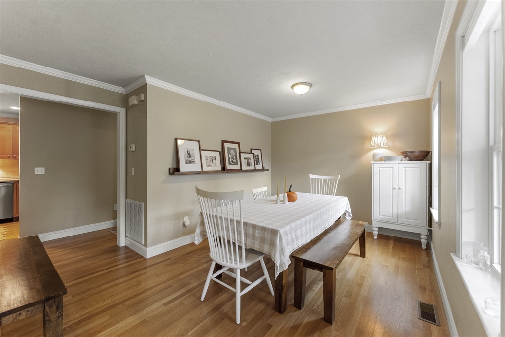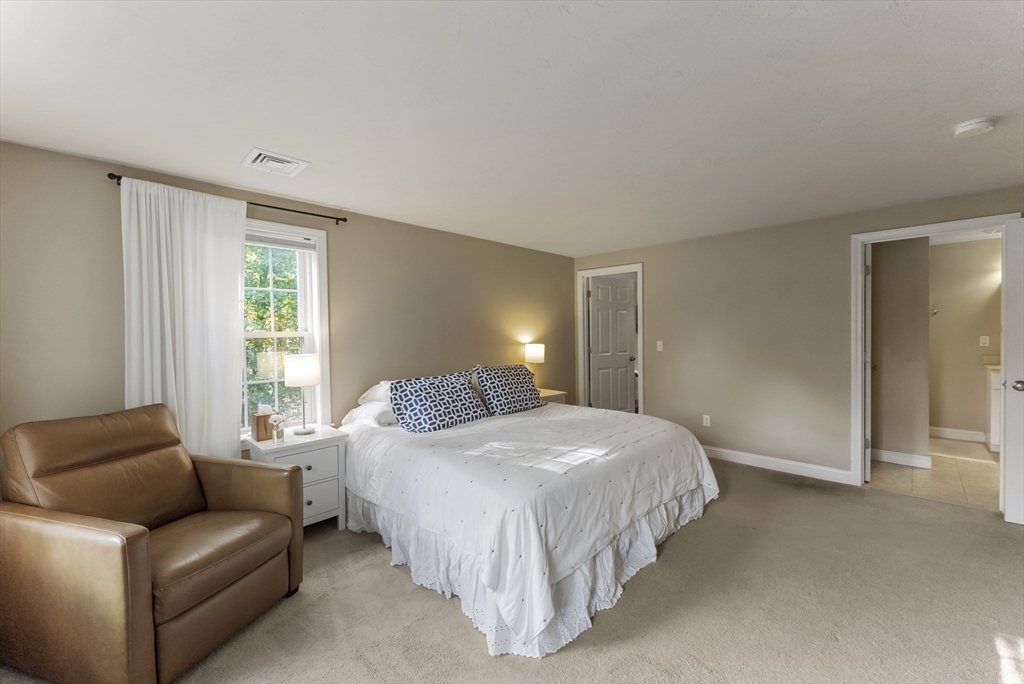 FALL in LOVE for the holidays!! This Pottery Barn Beautiful Colonial home is 12 years young and has been lovingly maintained by one owner! Turn key!! Perfectly situated on a huge, private lot with white privacy fence and surrounded by conservation land. You will love the high ceilings, open floor plan, neutral palette and gleaming hardwood floors! Inviting gas fireplace. Central A/C. Gorgeous chef's kitchen with warm honey cabinetry, SS appliances, pantry and hooded gas stove with peninsula and wonderful dining area. Large formal dining room for your holiday dinners and lovely 1st fl bath with laundry. Slider leads to composite deck for extra outdoor entertaining. Oversized 2 car garage attached w/side entry. Invisible dog fence. Fantastic finished basement provides added flex space plus craft room! 3 generous bedrooms up including huge primary BR w/ walk-in closet. Spacious bath w/ double vanity. 2nd fl. landing provides extra nook for desk/office space. Walk-up attic. A REAL BEAUTY!!