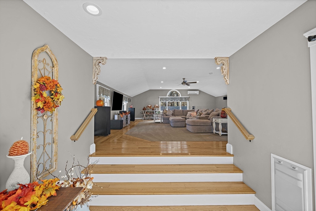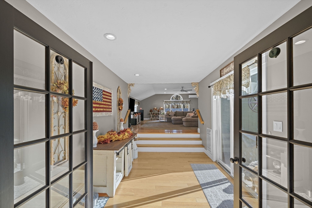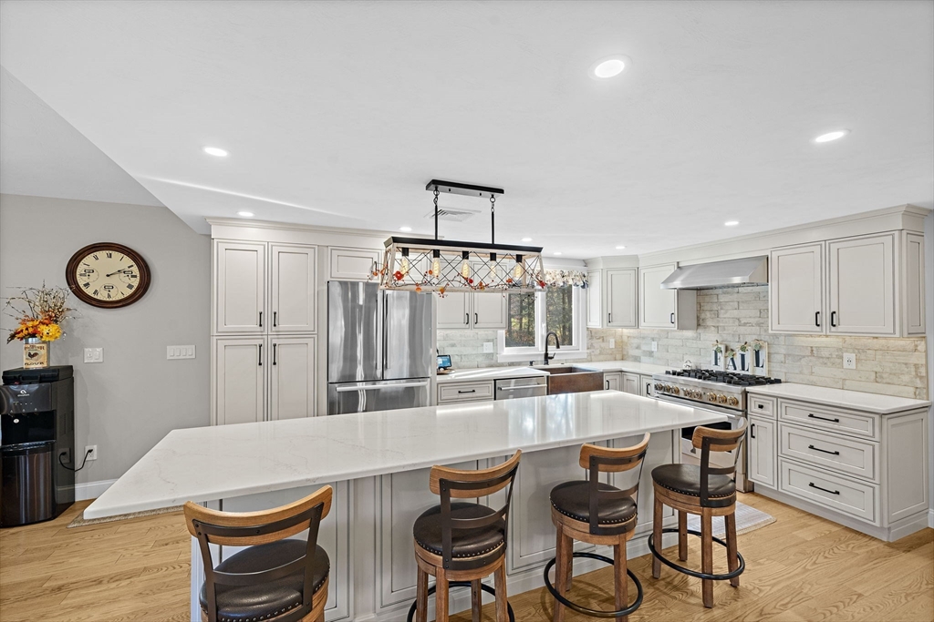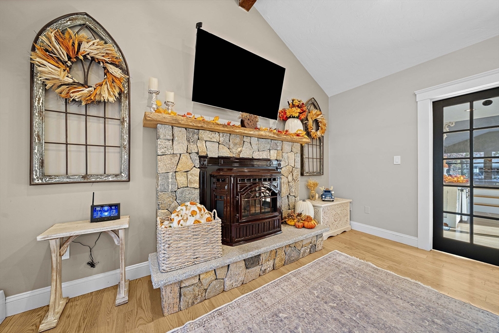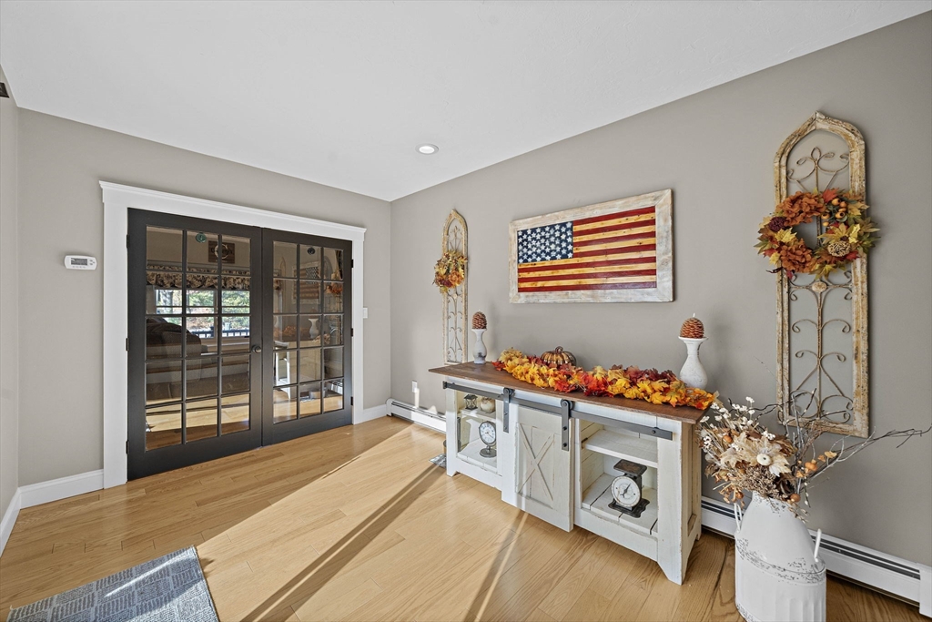 Welcome home to this charming colonial situated on a peaceful cul-de-sac with town sewer! Step inside from the inviting porch into an open-concept kitchen featuring a stunning tile backsplash, quartz countertops, and a spacious island that seamlessly connects to the dining room and a cozy den with a pellet stove. French doors open to a welcoming great room, ideal for family gatherings. Front to back primary suite with walk in closet, and master bath with his and her sinks. The backyard is a private oasis with a deck, patio with a firepit, and a putting green—perfect for entertaining. The heated garage is ideal for a workshop or car enthusiast. Two sheds make the perfect space for an additional car, or extra storage. Enjoy outdoor activities near Patch’s Pond, great for long walks, fishing and skating. Full basement is just waiting to be finished for more living space. Convenient acccess to commuter rail, shopping, and major routes. Open House Sat 11/1 and Sun 11/2 from 11 to 12:30.