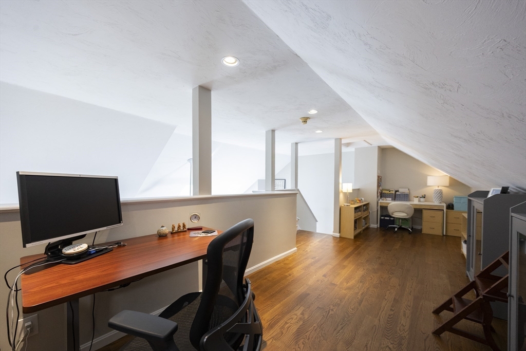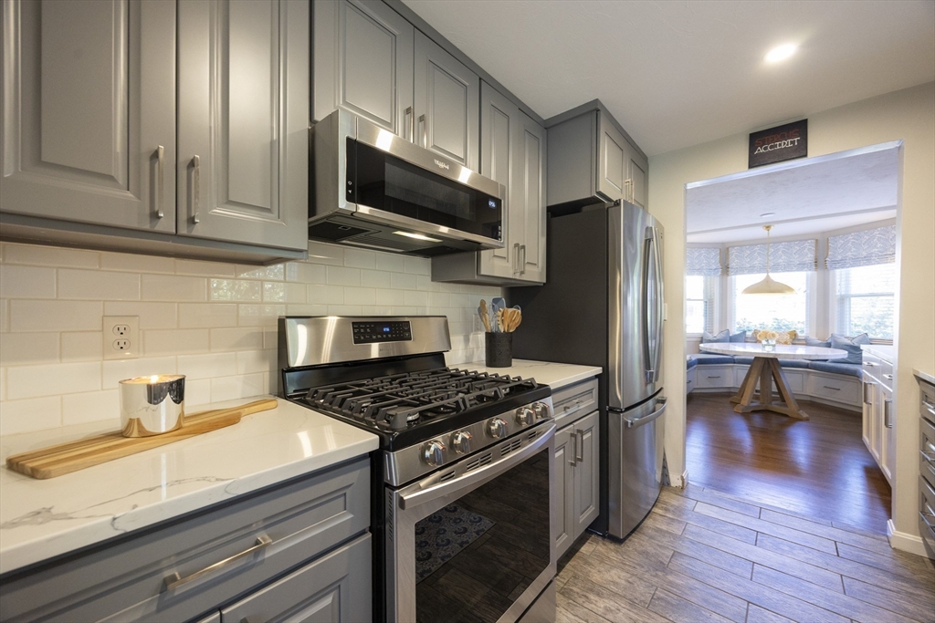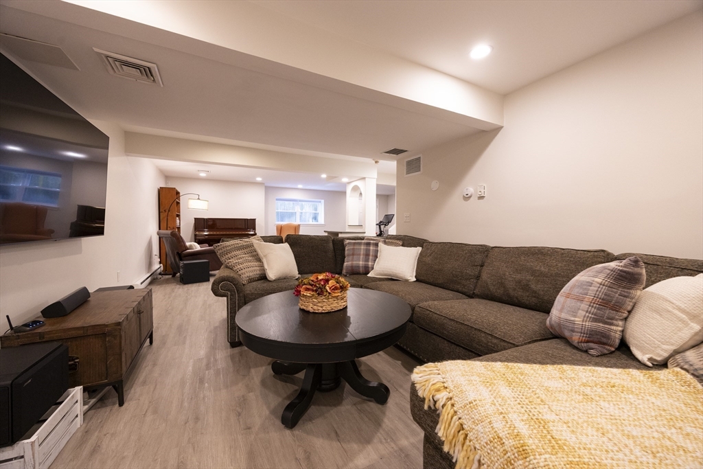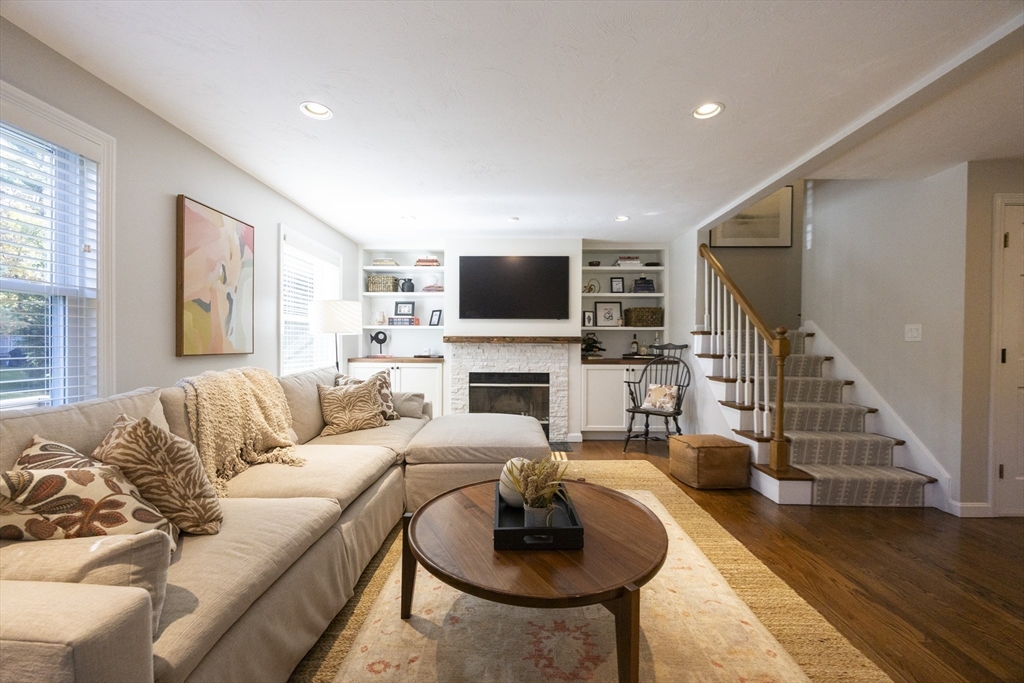 Welcome to this spacious end-unit townhome in charming Dover, offering multi-level living and access to top-rated schools. Step into a bright foyer leading to a well-appointed kitchen with stainless steel appliances. Adjacent is a custom breakfast nook with built-in benches and cabinets, surrounded by windows that fill the space with natural light. The sunlit dining area flows seamlessly into a cozy yet spacious living room—ideal for entertaining—complete with a fireplace and new built-ins. All windows and the sliding door have been recently replaced with high-quality upgrades. Upstairs, the oversized primary suite features an en-suite bath and a versatile loft perfect for a home office or gym. A second bedroom and full bath complete the level. The finished lower level offers flexible space for a media room or gym. Move-in ready and low-maintenance—perfect for families seeking great schools or anyone looking to stay in a beloved community without the upkeep of a large property.