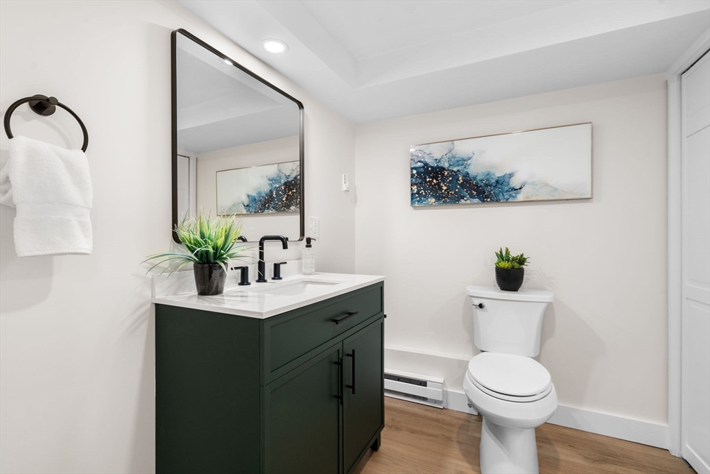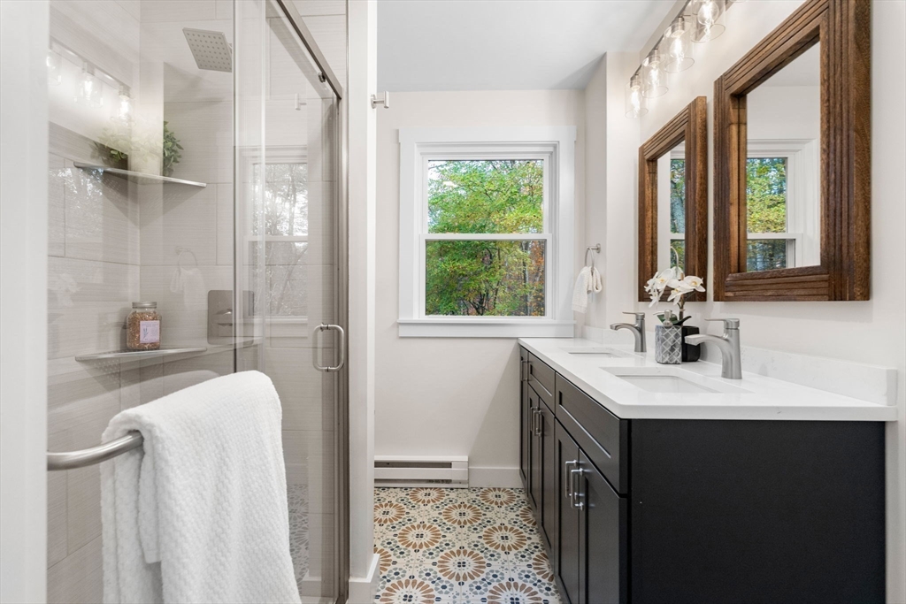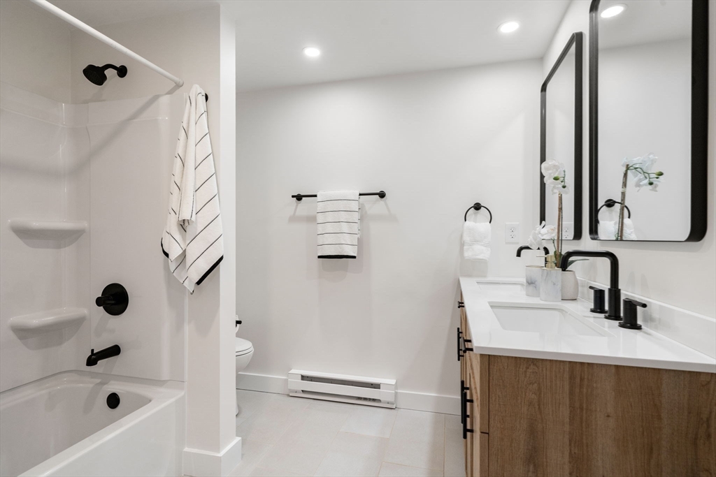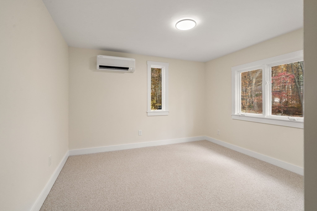 Meticulously renovated ranch in desirable Millis, offering true one-level living with a modern open floor plan. Stunning kitchen with quartzite countertops, abundant cabinetry, stainless steel appliances, breakfast nook, and slider to a spacious deck overlooking a flat backyard. Bright living room with oversized windows. Private primary suite features a beautiful full bath and large walk-in closet. Three additional well-sized bedrooms, another updated full bath, and first-floor laundry complete the main level. The finished walk-out basement provides fantastic bonus space with a third full bath—ideal for guests, home office, or recreation. Major upgrades include brand-new 5-bed septic, new high-efficiency heating and cooling with electric heat pumps, and multiple energy-saving improvements for year-round comfort and lower utility costs. Move-in ready and checks all the boxes—don’t miss this exceptional home!