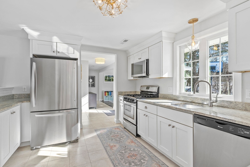 Nestled on a quiet side street in one of North Framingham’s most loved neighborhoods, 27 Sloane Dr feels like home the moment you arrive. Cheerful & bright, sunlight fills every corner of this updated, move-in-ready ranch. The granite kitchen w/ white shaker cabinets & SS appliances opens to an inviting DR & LR, while a sizeable family/playroom offers even more space for everyone to gather. 3 generous bedrooms & 1.5 baths sit on the opposite wing of this 1,400+ sf home. Recreation & relaxation abound when you step out back to a paver patio w/ built-in fire pit, overlooking nearly ½ acre of flat, usable yard, or out front to Woodfield Park & Playground just across the street. With central A/C, gas heat, energy efficient solar panels, 1-car garage, & a prime location close to schools, shops & commuting routes—this home perfectly blends comfort, convenience & community—all on one easy level. Don’t miss it!