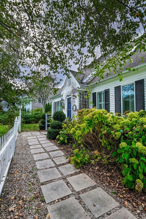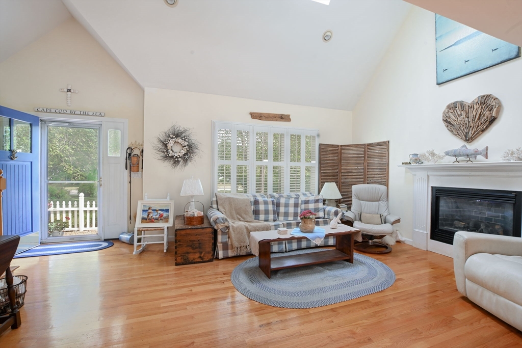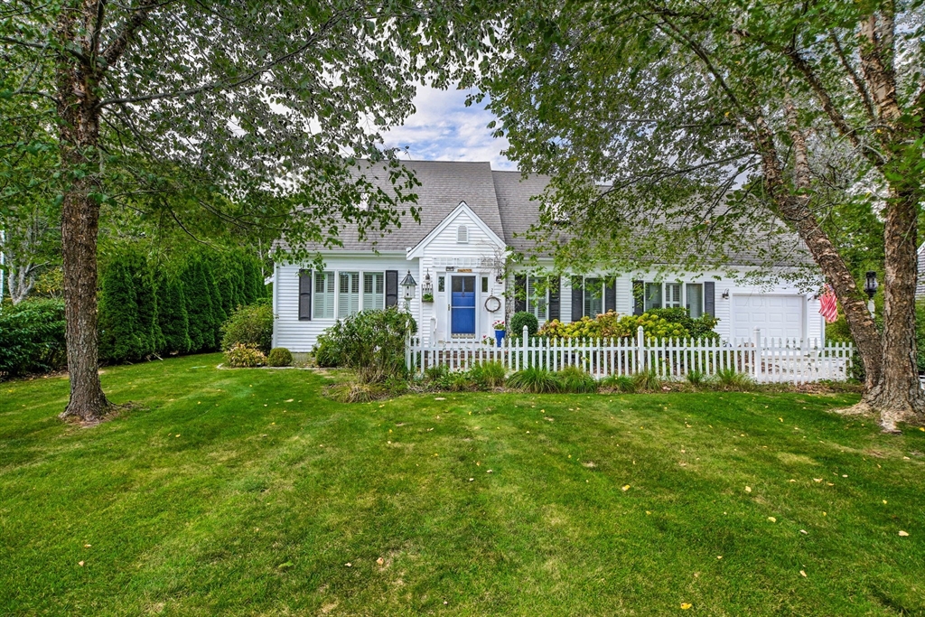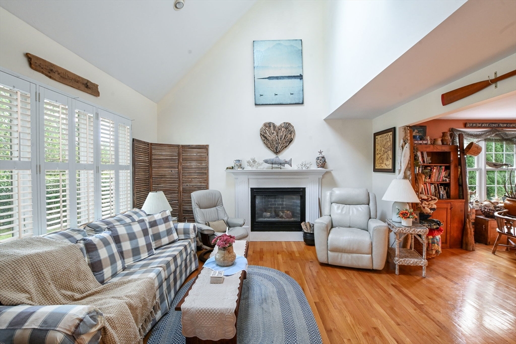 Charming entry gardens greet you as you approach this beautiful contemporary cape that features cathedral ceilings, first floor master suite, and an inground pool. Inside the home has an open floor plan perfect for entertaining and comfortable living. The family room is sunny with cathedral ceilings and cozy fireplace. The kitchen has been updated with painted cabinets and is spacious enough for a large dining table. There is a covered porch that leads out to a private backyard and pool. The first floor bedroom suite, laundry and attached garage make this a perfect house for those who appreciate first floor living. Storage is ample with a huge walk in attic, full basement and 2 detached sheds. New solar panels provide low cost electricity. Located in a desirable subdivision of newer homes this property is near to shops and restaurants and within an easy stroll to the paths along the Coonamesset River Greenway with its striking scenery and abundant wildlife.