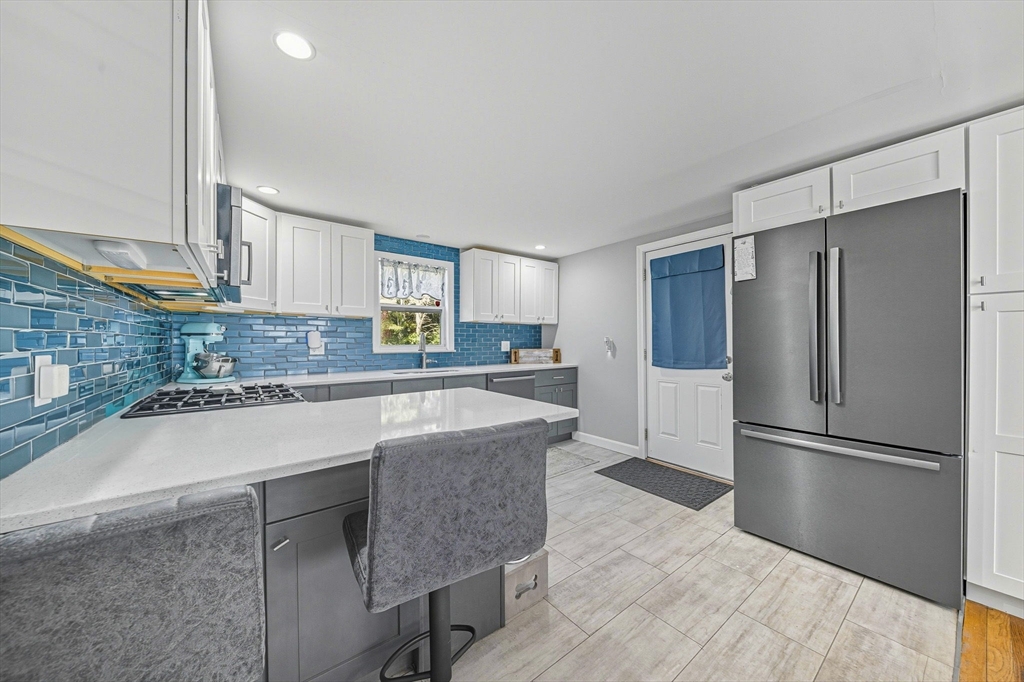 Welcome to 75 Barrow Street, a beautifully updated Cape in the heart of Norton. This charming 3-bedroom, 1.5-bath home blends classic character with modern updates throughout. The stunning kitchen features white upper cabinets, gray lowers, quartz countertops, Newer Bosch appliances, and a striking blue glass tile backsplash. The bright, open living area offers hardwood floors and plenty of natural light. Two spacious bedrooms are located on the second floor, with a first-floor bedroom ideal for guests or a home office. Enjoy a fenced-in backyard perfect for pets or play, and a large deck for outdoor entertaining. Additional highlights include a newer roof, updated systems, and a full basement with expansion potential. Conveniently located near schools, Wheaton College, and major routes, this move-in-ready home offers the perfect blend of comfort, style, and convenience.