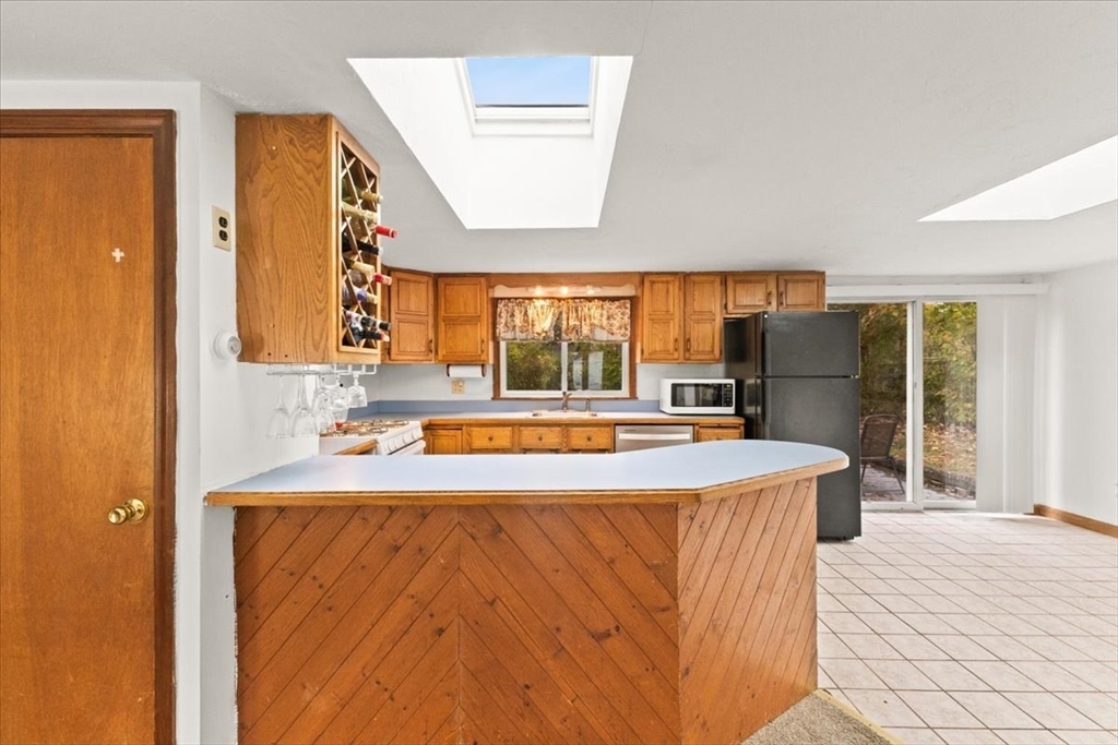 Looking for an affordable escape by the water? This charming 2-bedroom ranch in Wareham offers easy, one-level living just a block from scenic Glen Charlie Pond! Step inside to find a bright, comfortable layout with an eat-in kitchen and Skylights, a cozy living room with a bay window designed to bring the outdoors inside, a full bath, and a convenient laundry area, which could be used as a guest room. Thoughtful updates include a newer roof and skylights (2023) and newer windows and doors (2024), giving you peace of mind for years to come. Enjoy morning coffee or evening cookouts in the private backyard, complete with patio and a good-sized shed for extra storage. Nestled in a quiet, friendly neighborhood yet close to beaches, shopping, and major routes, this home is the perfect blend of value, simplicity, and coastal charm—all for just $300,000. Your next chapter by the pond starts here!