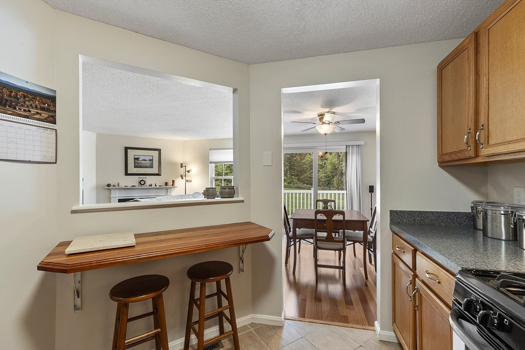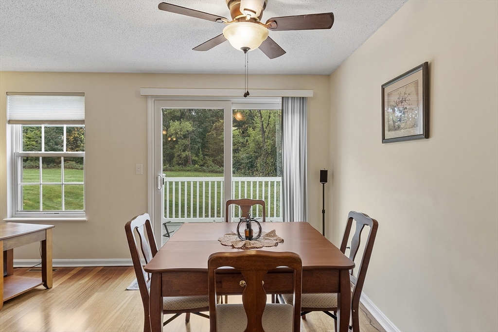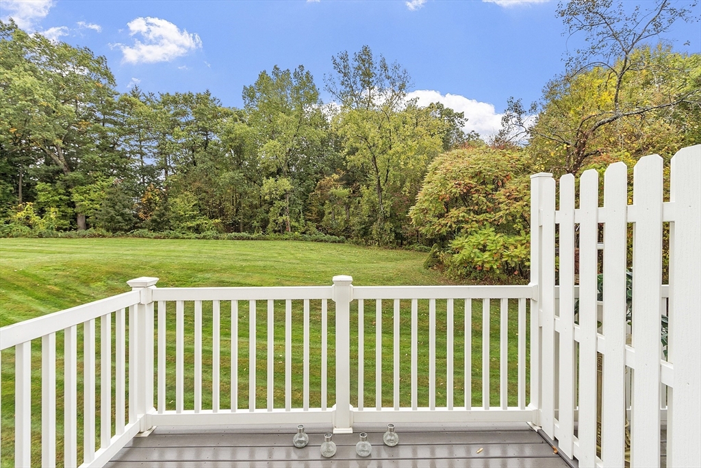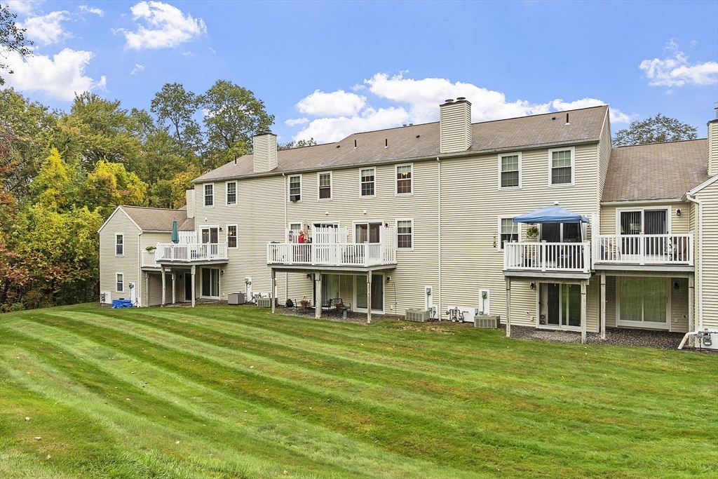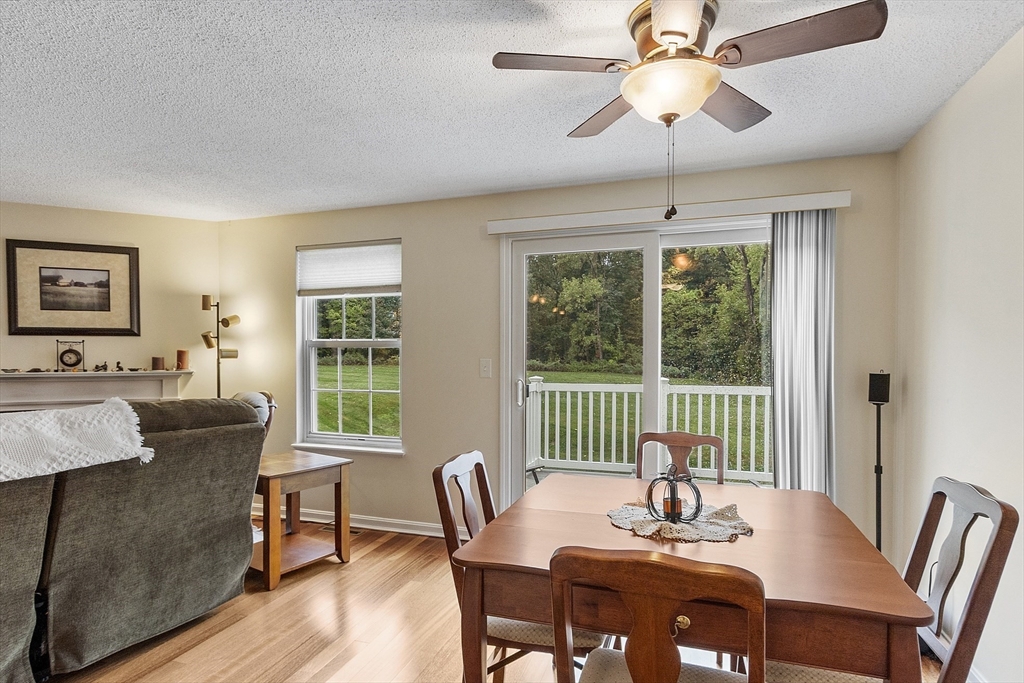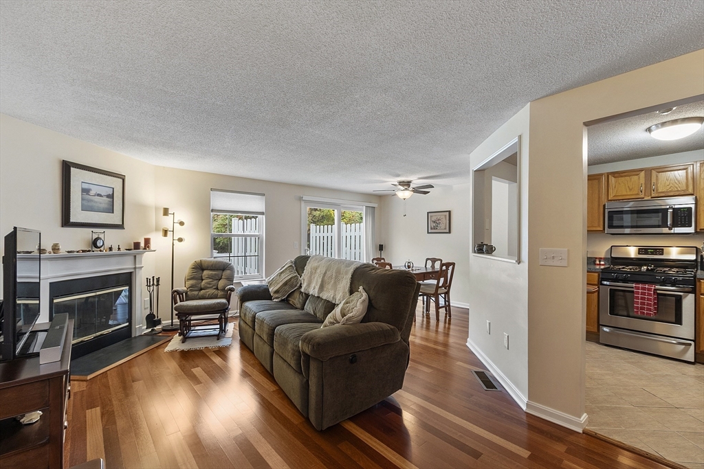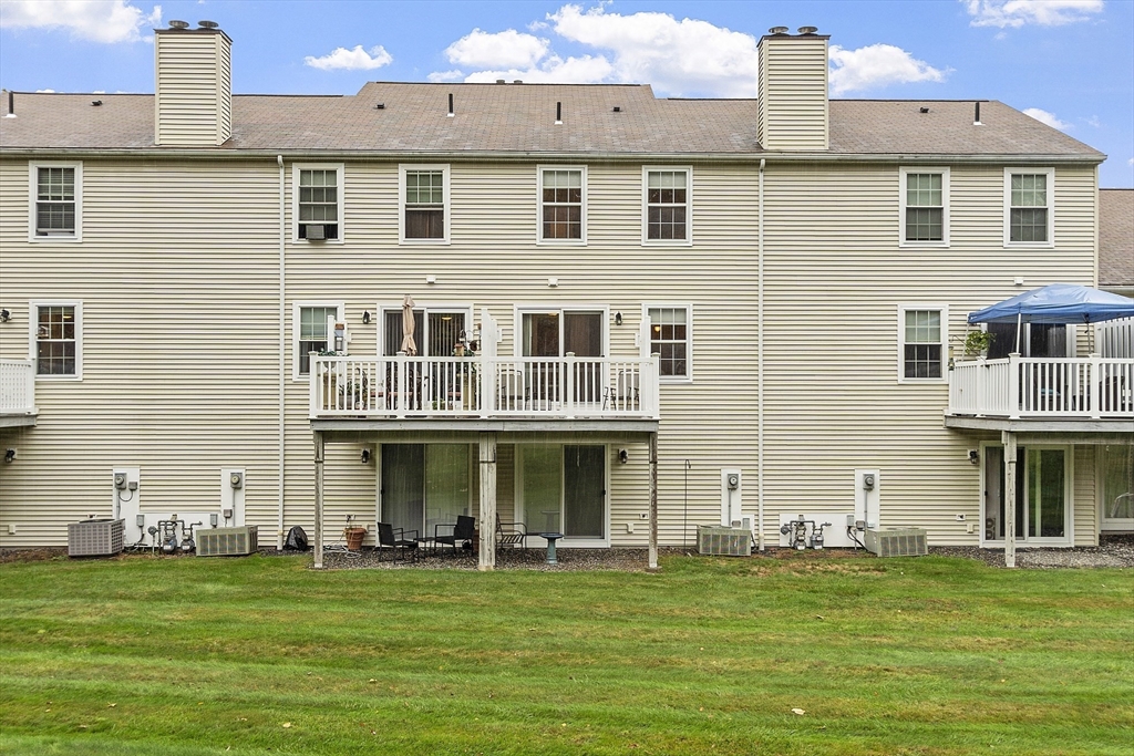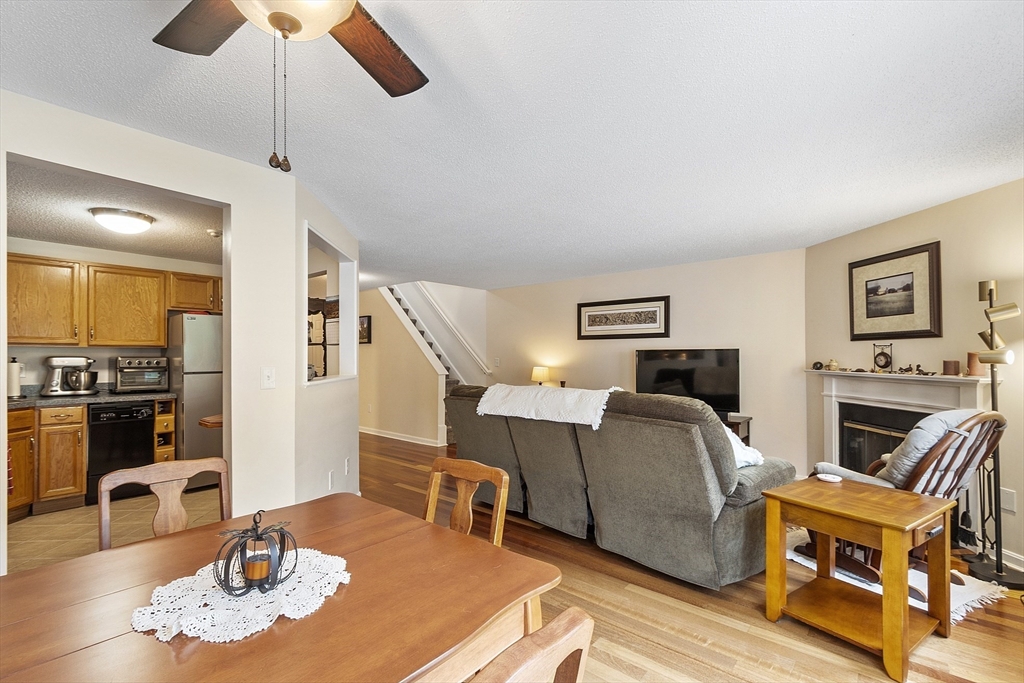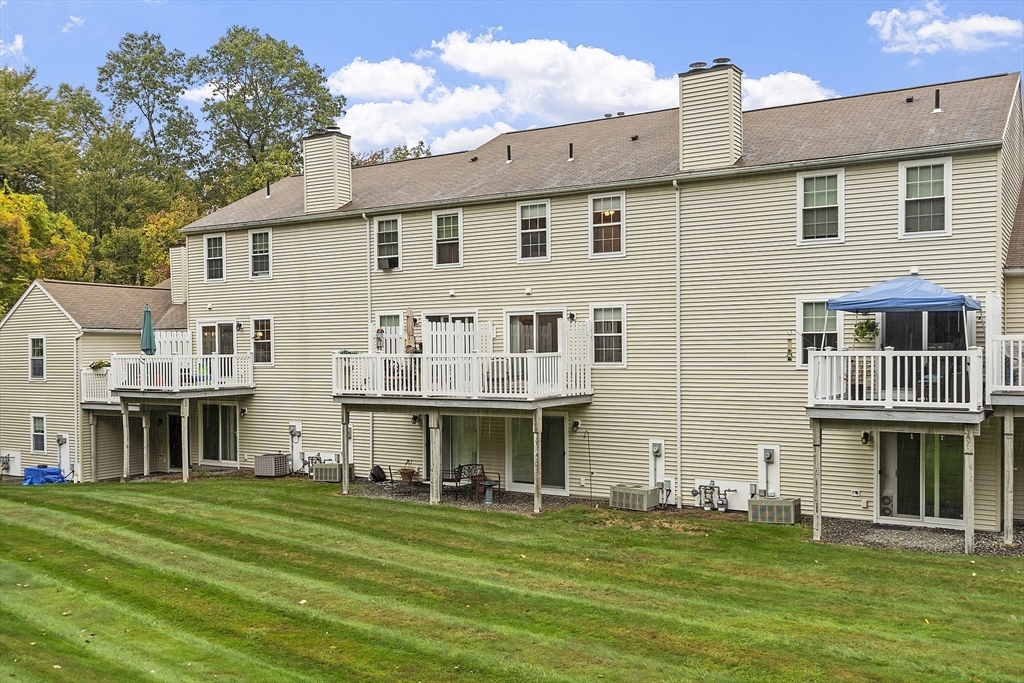 Welcome home to this beautifully maintained townhouse in the desirable Chapman Place community! The main level of this 2 bed 1.5 bath home features an inviting open concept living and dining area with gleaming hardwood floors and a cozy fireplace- perfect for relaxing or entertaining. Enjoy your private deck with beautiful views of the manicured landscaping and forest with continuous wildlife. The kitchen has tile flooring, modern appliances, and ample cabinet space. Upstairs offers two generous bedrooms, including primary with walk in closet and adjoining bath with double vanity and soaking tub. The partially finished lower level provides a versatile bonus space for a family room, office, or gym with walk out. Basement also includes ample storage space and in-unit laundry. An attached one-car garage adds year round comfort. Located just minutes from shopping, restaurants and main commuter routes (Rts 2 & 190) this is the perfect blend of comfort and convenience.