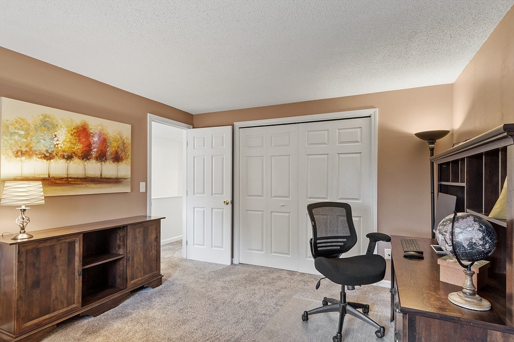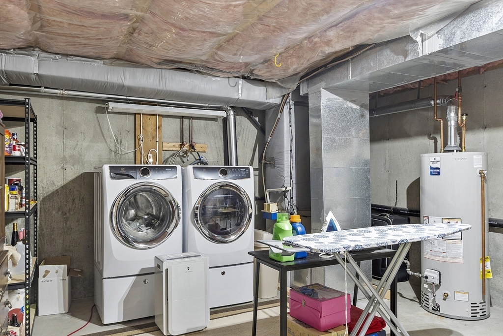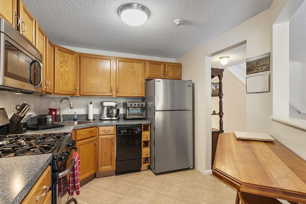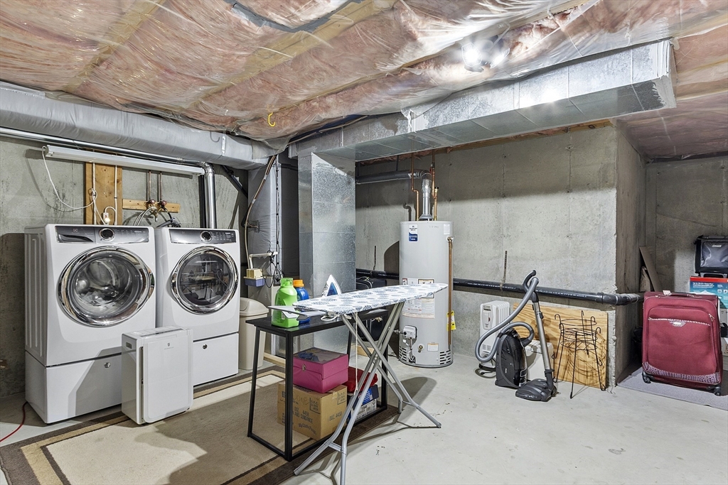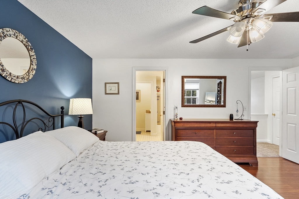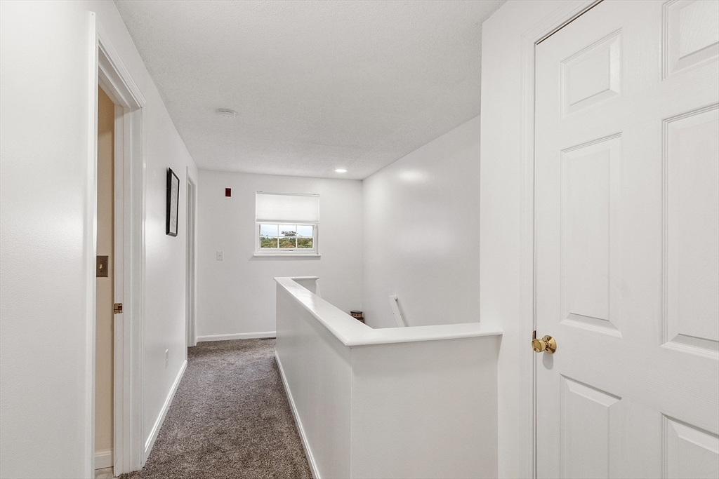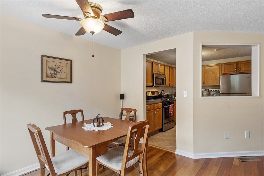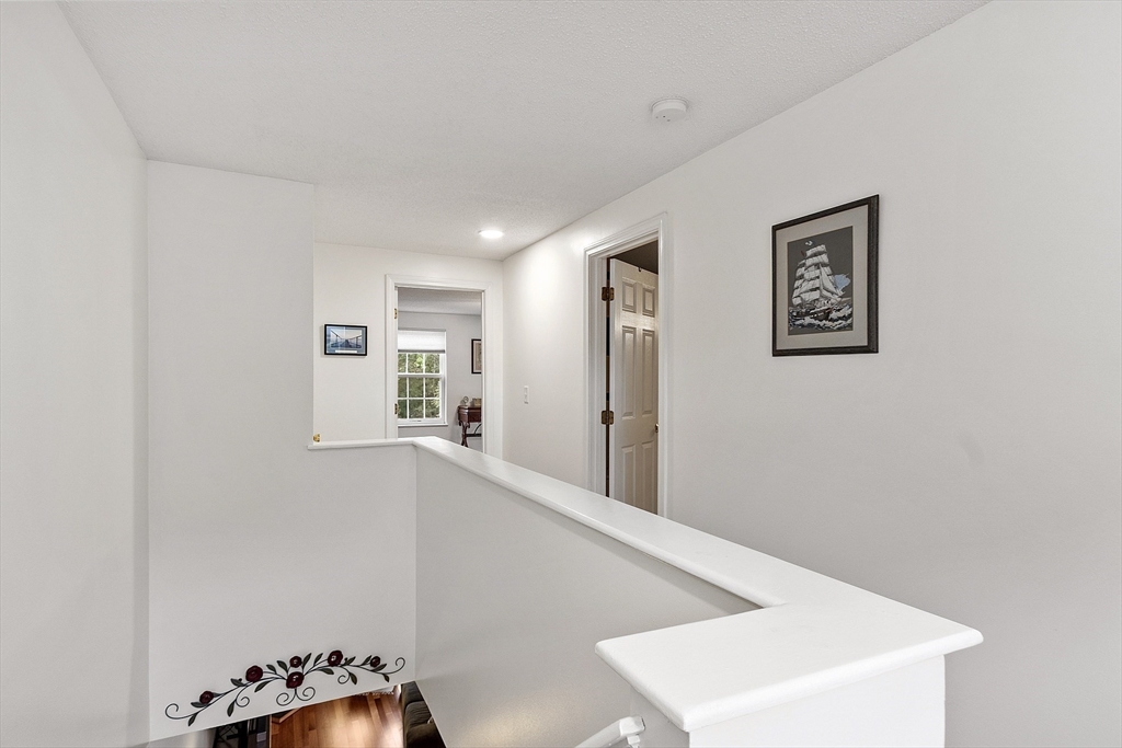 Welcome home to this beautifully maintained townhouse in the desirable Chapman Place community! The main level of this 2 bed 1.5 bath home features an inviting open concept living and dining area with gleaming hardwood floors and a cozy fireplace- perfect for relaxing or entertaining. Enjoy your private deck with beautiful views of the manicured landscaping and forest with continuous wildlife. The kitchen has tile flooring, modern appliances, and ample cabinet space. Upstairs offers two generous bedrooms, including primary with walk in closet and adjoining bath with double vanity and soaking tub. The partially finished lower level provides a versatile bonus space for a family room, office, or gym with walk out. Basement also includes ample storage space and in-unit laundry. An attached one-car garage adds year round comfort. Located just minutes from shopping, restaurants and main commuter routes (Rts 2 & 190) this is the perfect blend of comfort and convenience.