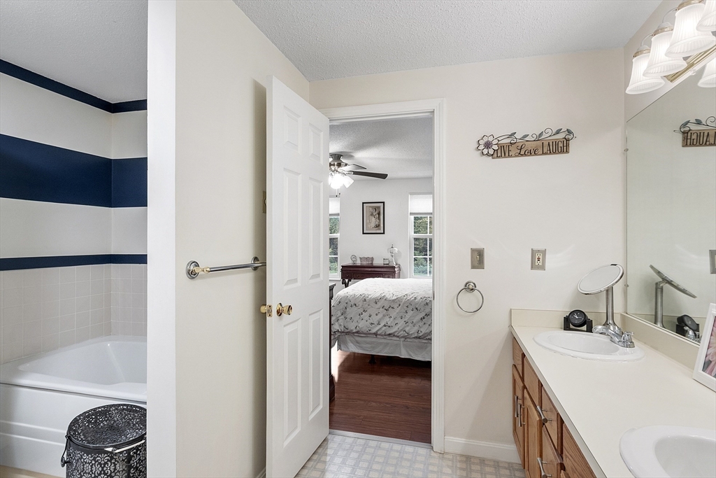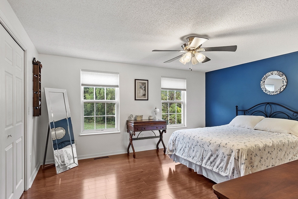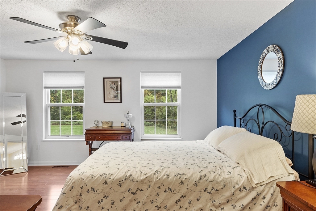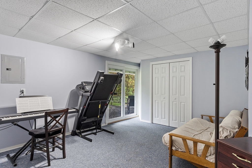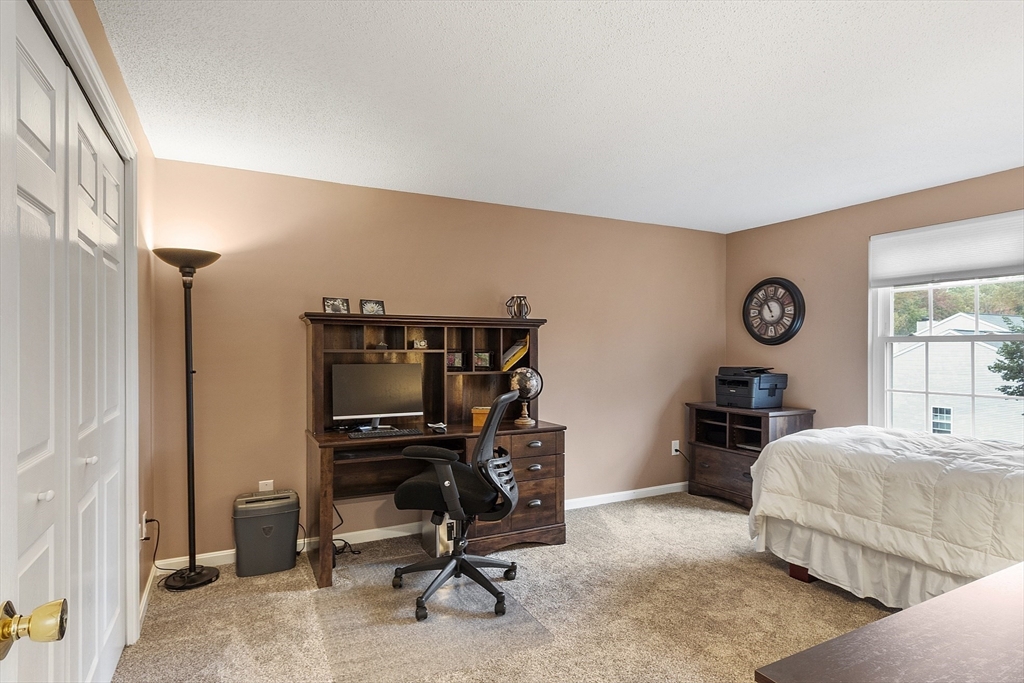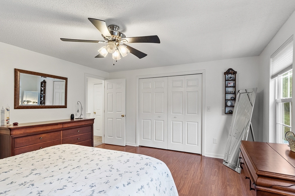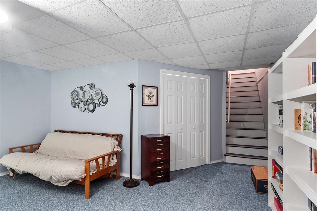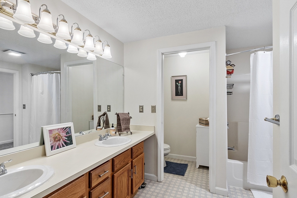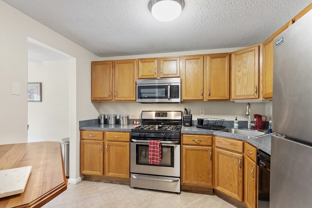 Welcome home to this beautifully maintained townhouse in the desirable Chapman Place community! The main level of this 2 bed 1.5 bath home features an inviting open concept living and dining area with gleaming hardwood floors and a cozy fireplace- perfect for relaxing or entertaining. Enjoy your private deck with beautiful views of the manicured landscaping and forest with continuous wildlife. The kitchen has tile flooring, modern appliances, and ample cabinet space. Upstairs offers two generous bedrooms, including primary with walk in closet and adjoining bath with double vanity and soaking tub. The partially finished lower level provides a versatile bonus space for a family room, office, or gym with walk out. Basement also includes ample storage space and in-unit laundry. An attached one-car garage adds year round comfort. Located just minutes from shopping, restaurants and main commuter routes (Rts 2 & 190) this is the perfect blend of comfort and convenience.