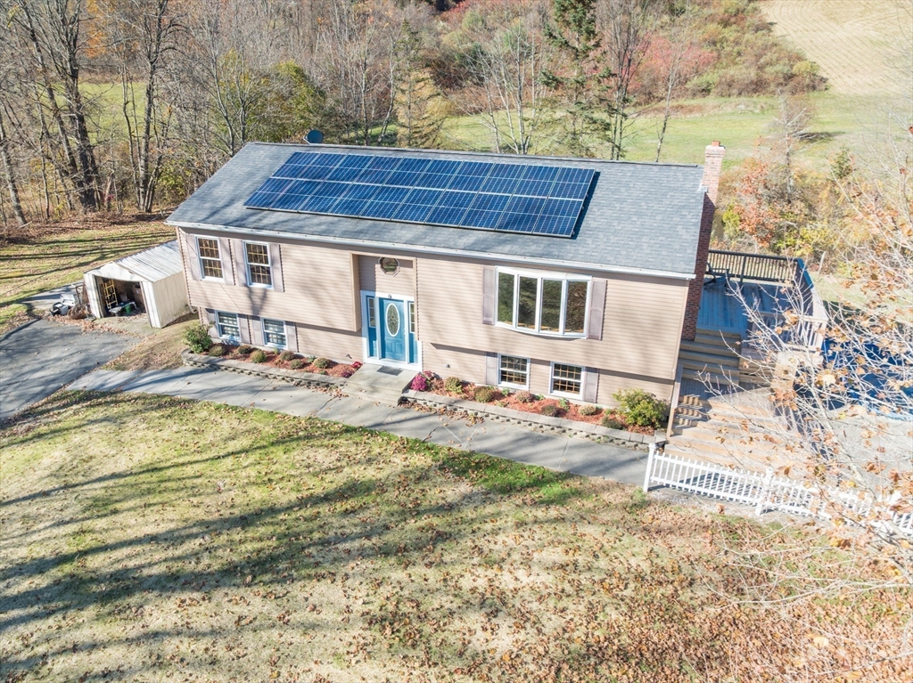 Tucked on nearly an acre, this split-entry home feels both inviting and practical. Hardwood floors flow across the main level, where the living room’s wood stove makes a natural gathering spot right off the kitchen and dining area. The primary bedroom has its own en suite bath, joined by a second bedroom and another full bath. Downstairs, the finished walkout basement adds even more flexibility with a family room warmed by a second woodstove, plus a half bath, third bedroom, and utility room for extra storage. Step outside to a back deck overlooking the yard, or dive into summer with the in-ground pool featuring a brand-new liner. Leased solar panels help keep utility bills in check, and the location puts you close to Greenfield, Brattleboro, and I-91. It’s the kind of home that’s ready to fit your lifestyle, come see it for yourself!