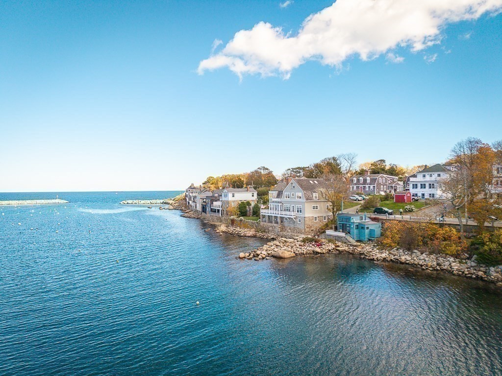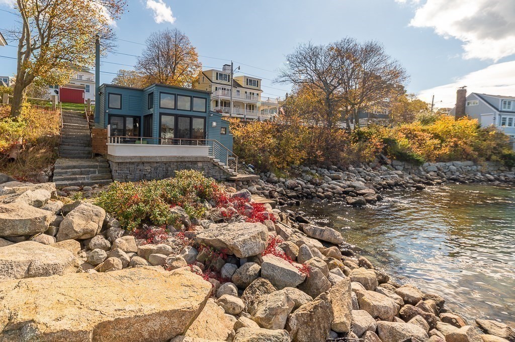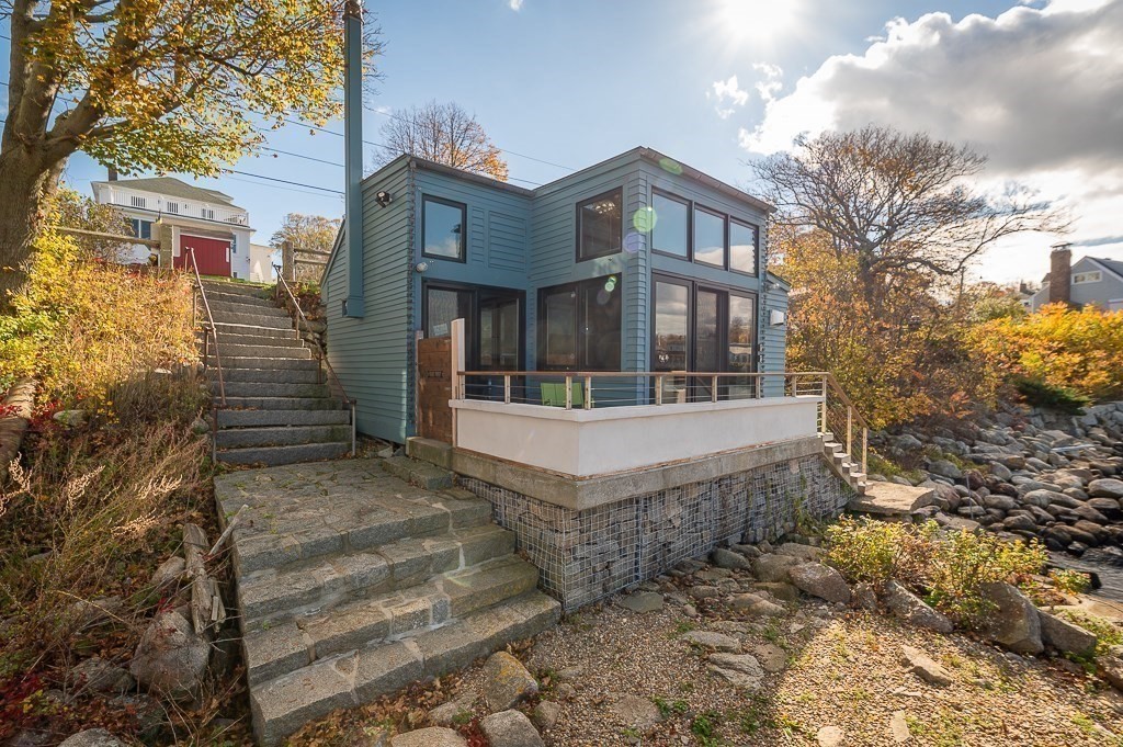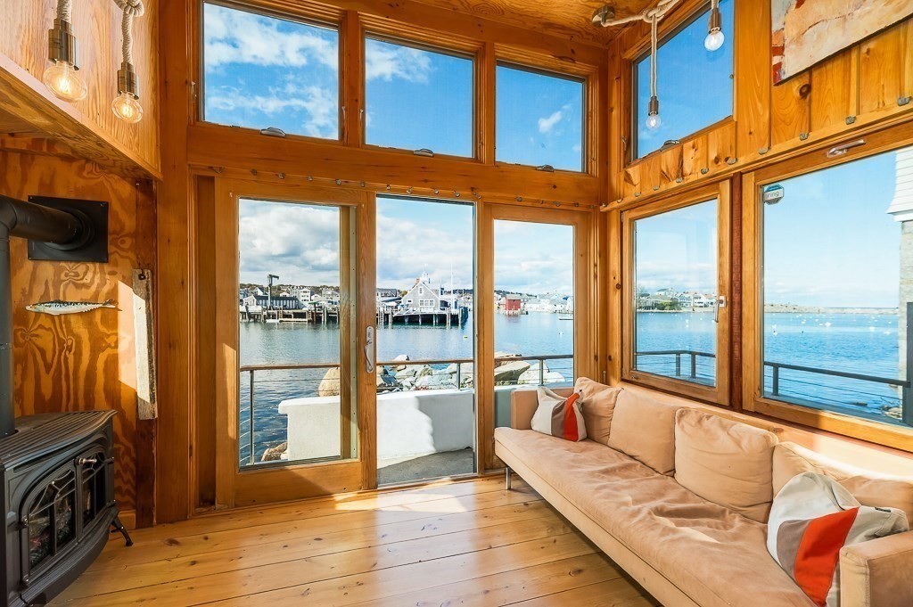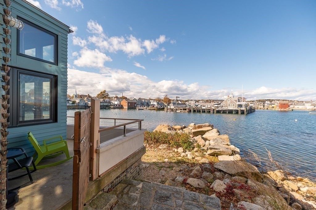 This stunning contemporary home offers direct harbor frontage and breathtaking views of Rockport Harbor, the iconic Motif No.1, and the expansive open ocean beyond. The charming and compact design features an open floor plan that is bathed in natural light from large windows and sliding doors facing the sea. These doors lead to a spacious deck with stairs that descend to the rocks below, creating a seamless connection between indoor and outdoor living. The open sitting and living areas provide a flexible layout that can be tailored to your specific needs. Whether you prefer to have your living and sleeping spaces on the main level or take advantage of the lofted sleeping area above, this home offers versatility and comfort. This is your chance to own the getaway home you've always dreamed of, situated in a highly sought-after neighborhood that is conveniently close to shopping, restaurants, parks, beaches, paths, and more, making it easy to enjoy all that the area has to offer.