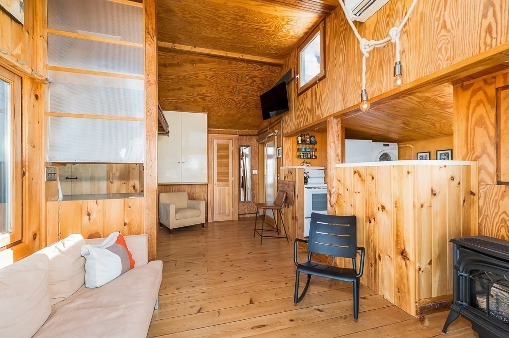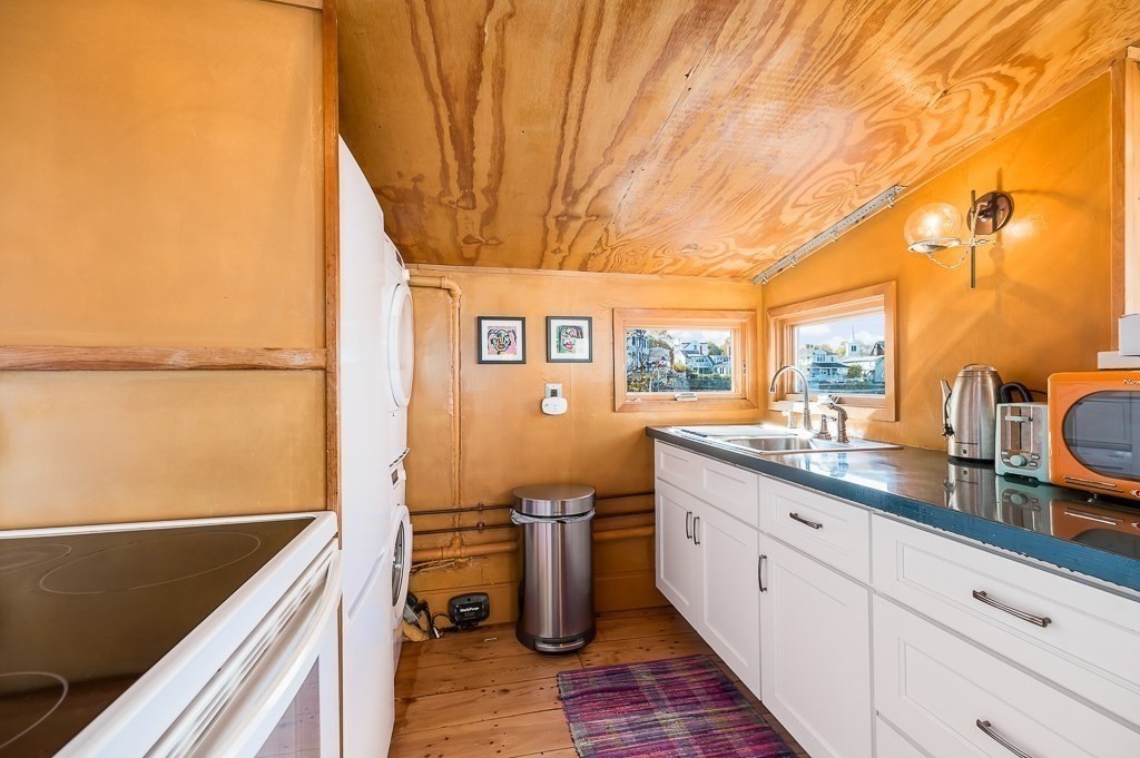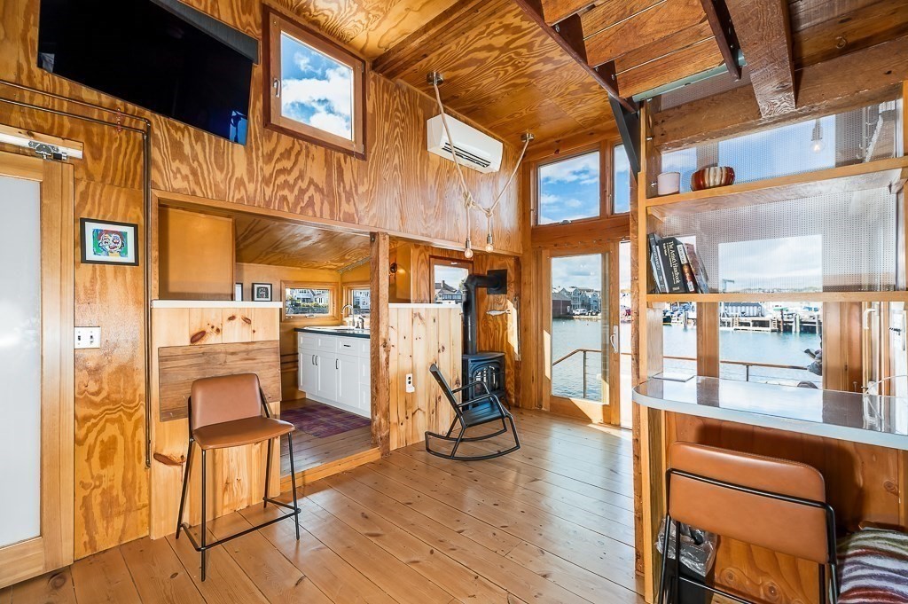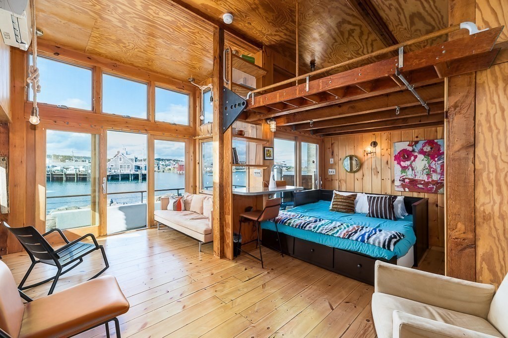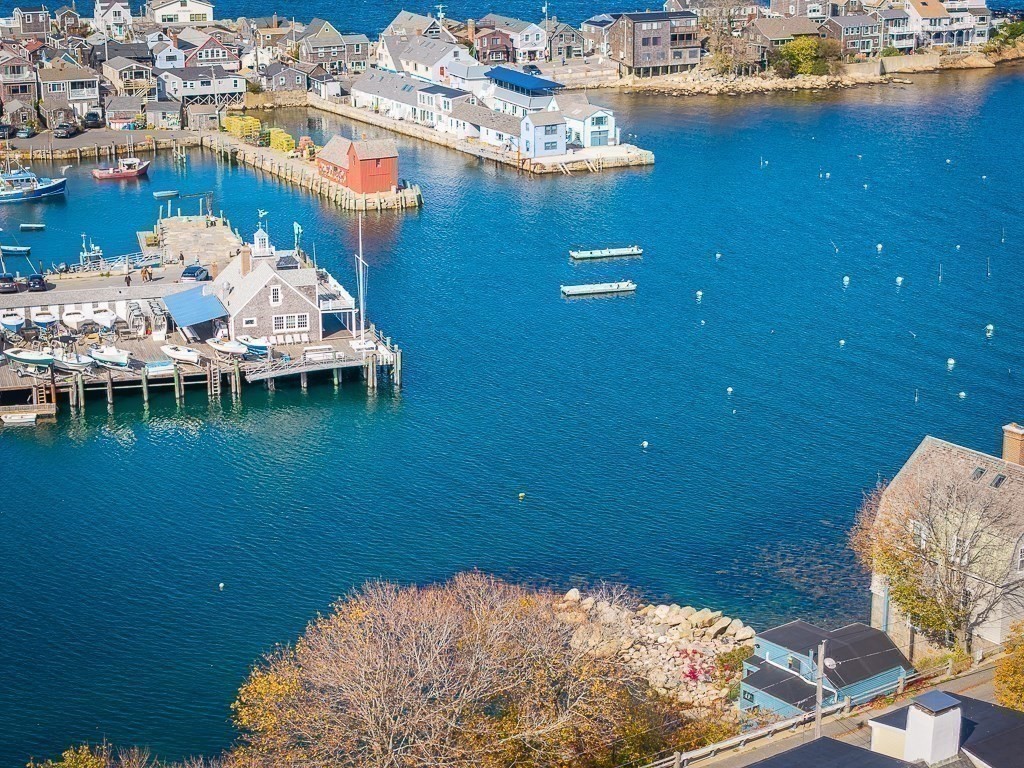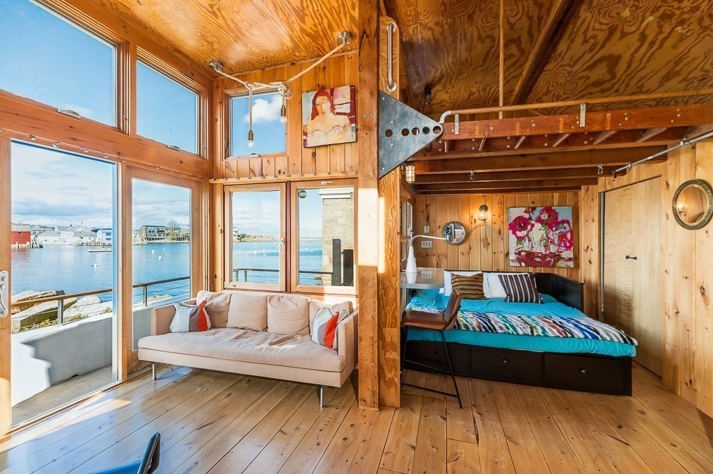 This stunning contemporary home offers direct harbor frontage and breathtaking views of Rockport Harbor, the iconic Motif No.1, and the expansive open ocean beyond. The charming and compact design features an open floor plan that is bathed in natural light from large windows and sliding doors facing the sea. These doors lead to a spacious deck with stairs that descend to the rocks below, creating a seamless connection between indoor and outdoor living. The open sitting and living areas provide a flexible layout that can be tailored to your specific needs. Whether you prefer to have your living and sleeping spaces on the main level or take advantage of the lofted sleeping area above, this home offers versatility and comfort. This is your chance to own the getaway home you've always dreamed of, situated in a highly sought-after neighborhood that is conveniently close to shopping, restaurants, parks, beaches, paths, and more, making it easy to enjoy all that the area has to offer.