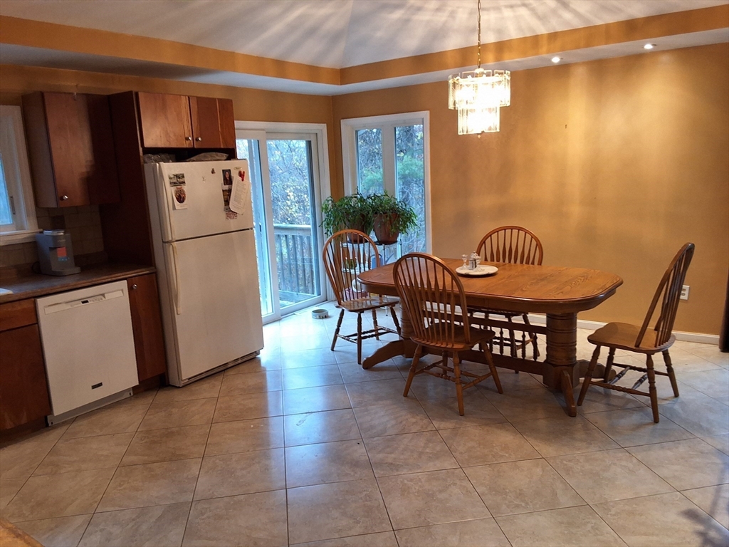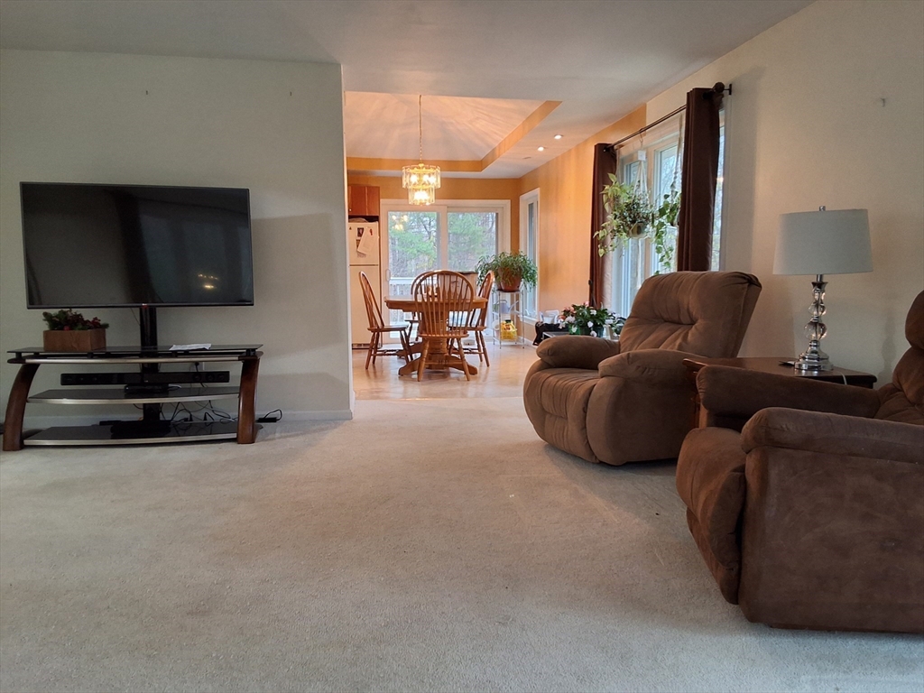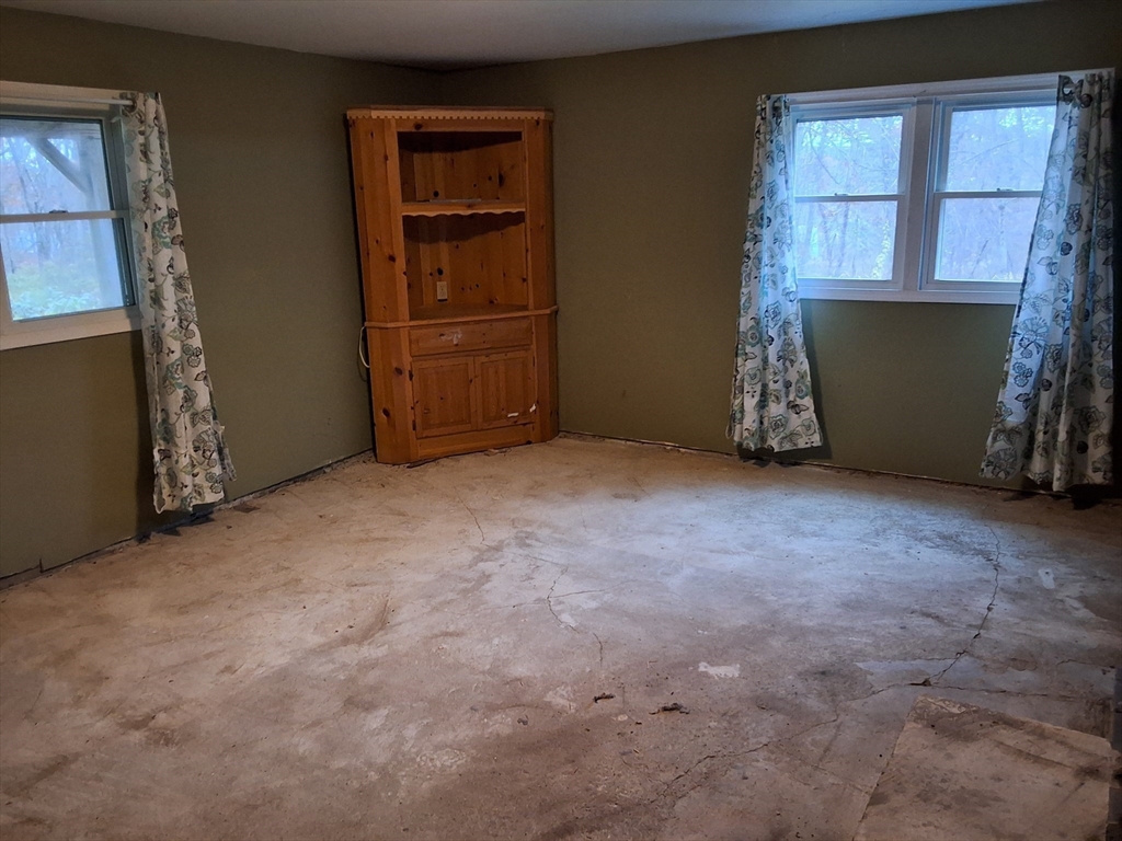 West Brookfield. This contemporary ranch-style home features three bedrooms and one bathroom, set on approximately 1.5 acres on a scenic country road. The lot is partially cleared with woods in the back, offering both privacy and natural beauty. Recent upgrades include a newly paved driveway and a newly installed granite and stone walkway, enhancing the home's curb appeal. Inside, you'll find an open-concept living room and kitchen area, illuminated by large, floor-to-ceiling bay/box windows that fill the space with natural light. The living room and foyer are carpeted, the kitchen has tile flooring, and the three bedrooms feature hardwood floors. Sliders in the kitchen open to a back deck, providing peaceful country views. The walk-out basement offers significant potential, either as an in-law suite (subject to town permits) or as a finished space for a family room with a fireplace and a second bathroom. This peaceful country location is also incredibly convenient, just minutes from t