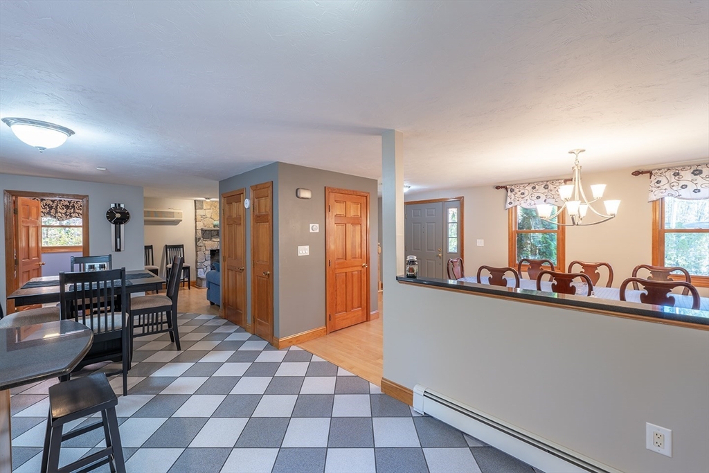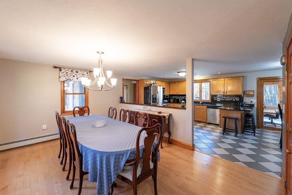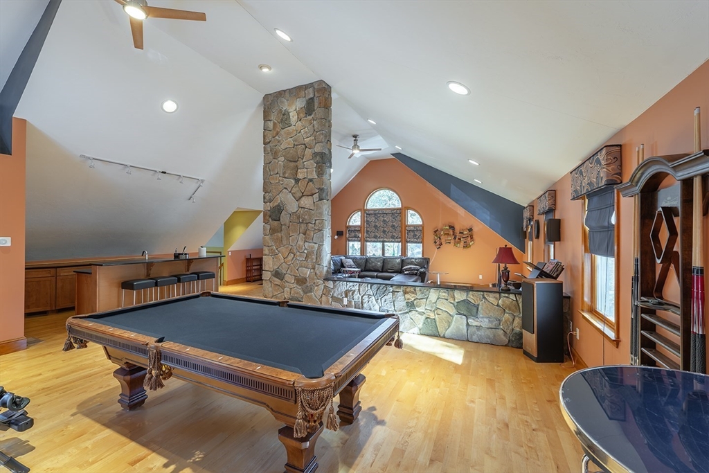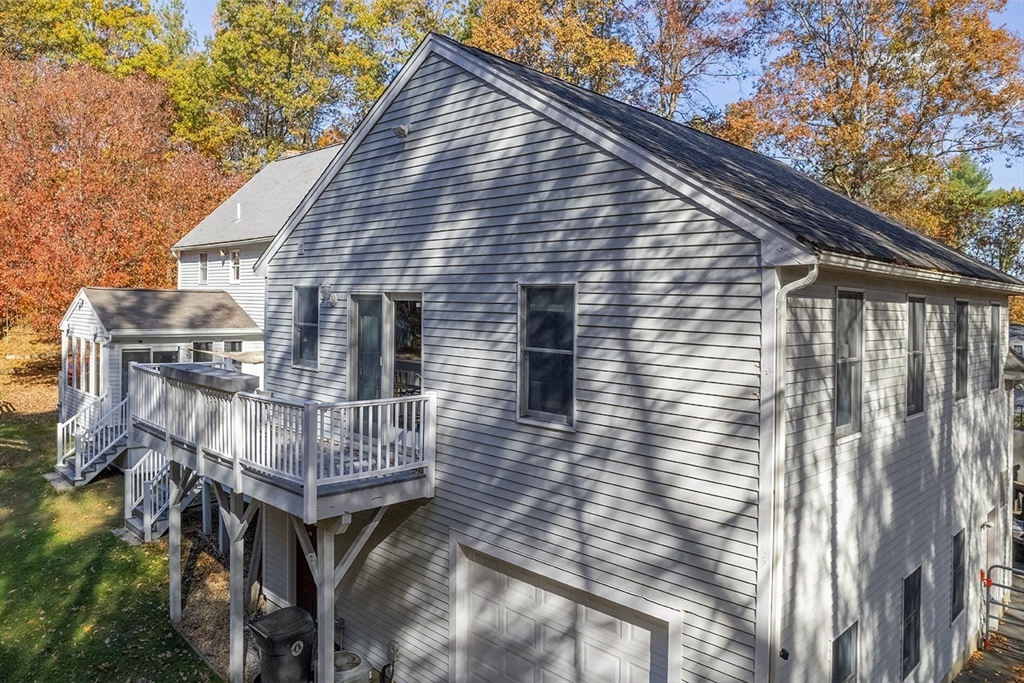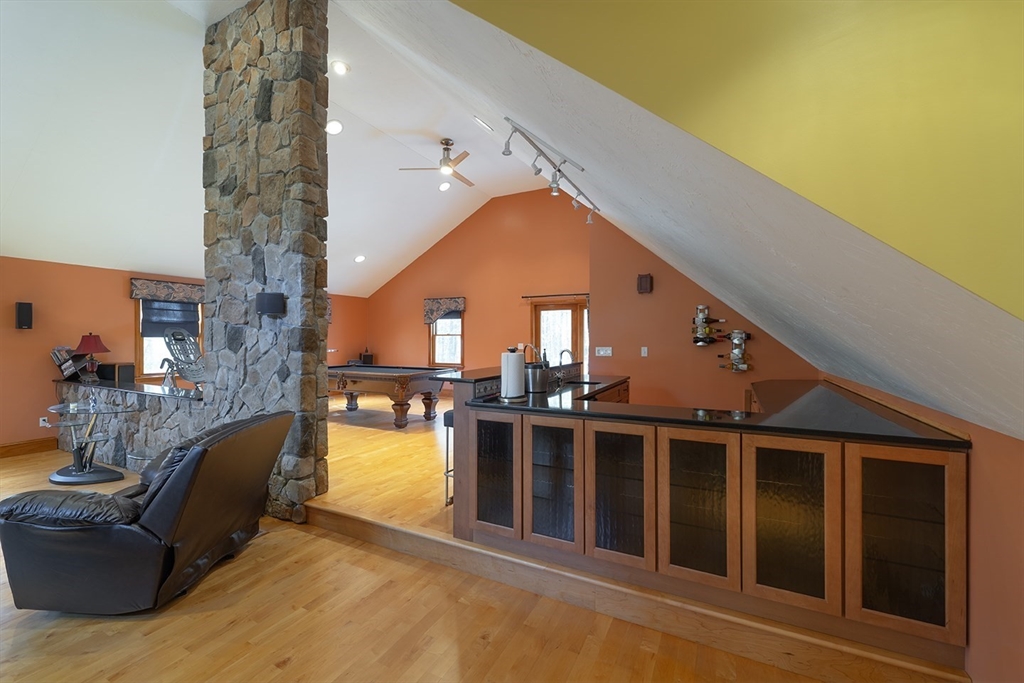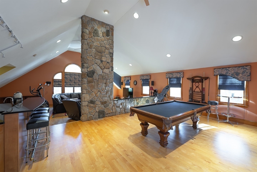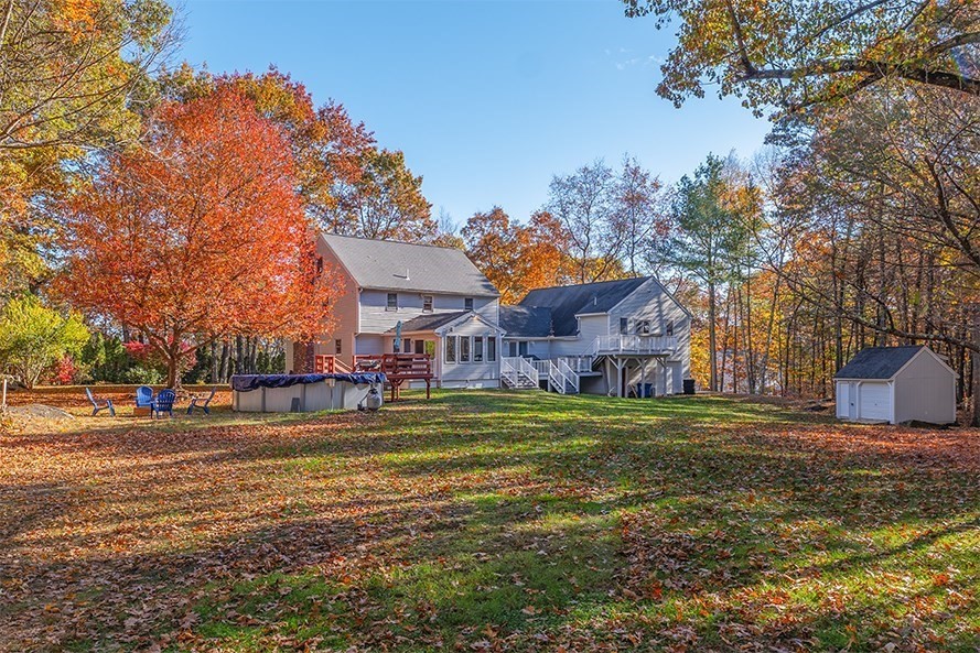 Don't miss this sprawling Colonial with oversized garage and bonus room above! The lower level includes a living room with a fireplace, half bath with laundry an open dining room and eat in kitchen plus a four season sun porch that leads to a large two tier deck, providing convenience and comfort throughout the home. The second level offers 3 bedrooms and 2 bathrooms, plus a full walk-up attic. From the breezeway/mudroom you access the sprawling 30 x 36 foot addition is a living and entertainment entertainment oasis, includes a sitting area, pool table, large wet bar, 3/4 bathroom and exterior access to your backyard. Below, is the heated three-plus car garage that offers substantial space for vehicles, workshop and storage with radiant heat flooring, built in workbench and cabinets plus a utility sink. The pass through garage door leads to your private back yard with two storage sheds and a pool? This 1.5 acres lot offers abundant outdoor space for recreation and privacy.