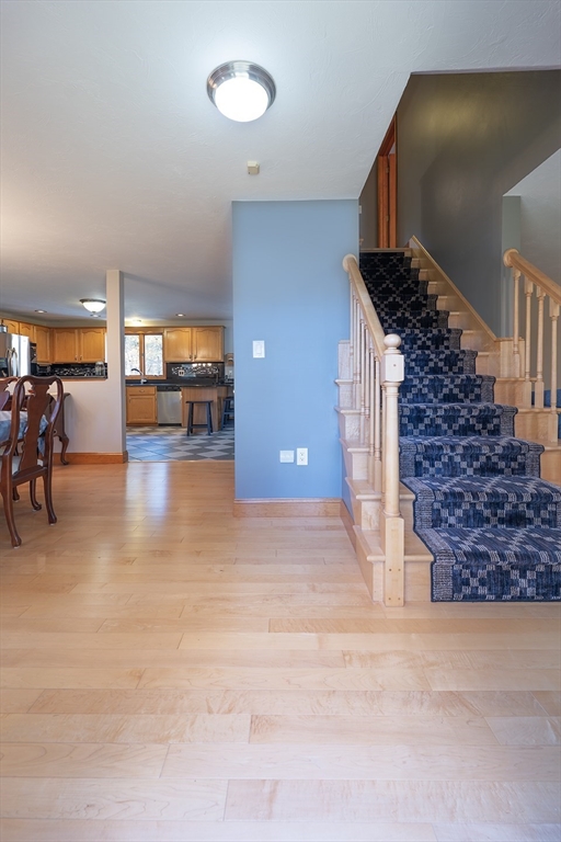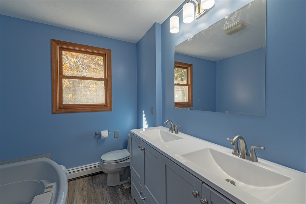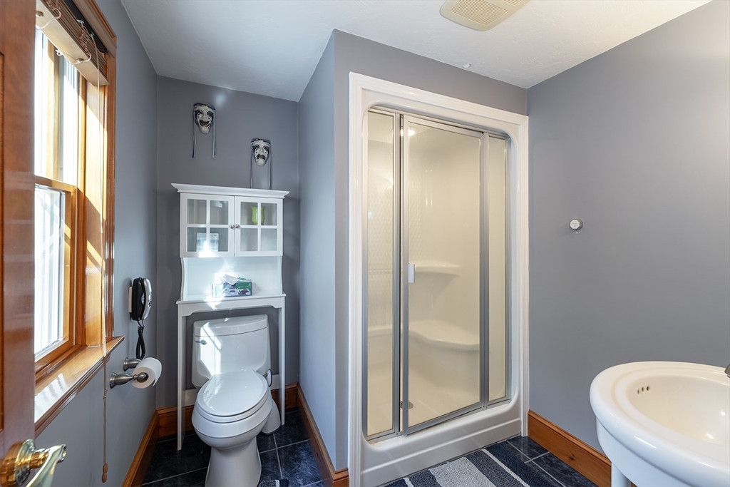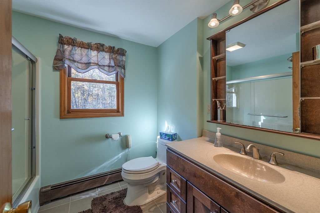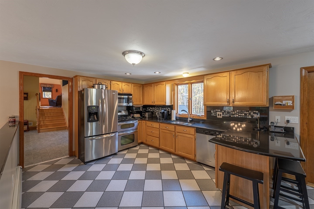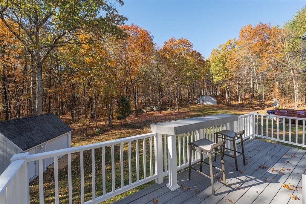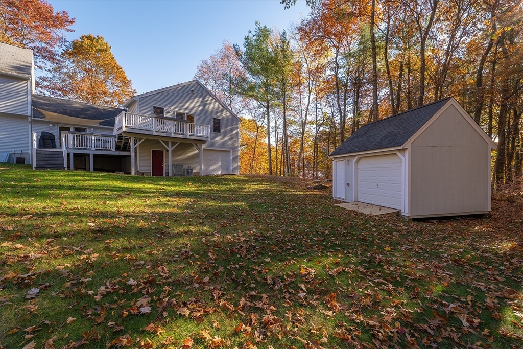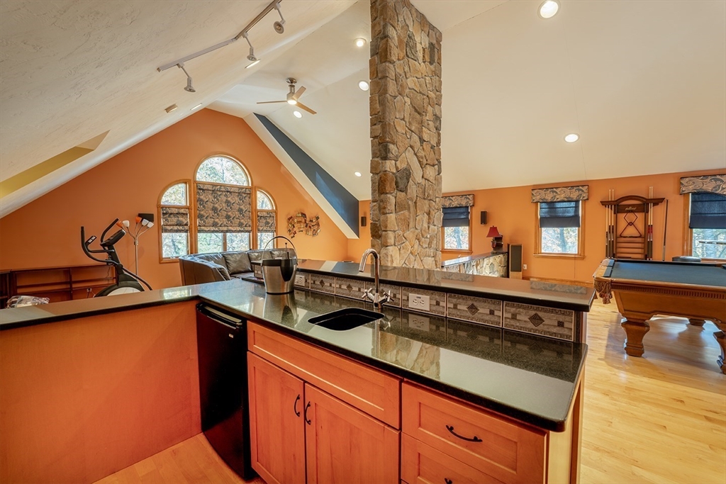 Don't miss this sprawling Colonial with oversized garage and bonus room above! The lower level includes a living room with a fireplace, half bath with laundry an open dining room and eat in kitchen plus a four season sun porch that leads to a large two tier deck, providing convenience and comfort throughout the home. The second level offers 3 bedrooms and 2 bathrooms, plus a full walk-up attic. From the breezeway/mudroom you access the sprawling 30 x 36 foot addition is a living and entertainment entertainment oasis, includes a sitting area, pool table, large wet bar, 3/4 bathroom and exterior access to your backyard. Below, is the heated three-plus car garage that offers substantial space for vehicles, workshop and storage with radiant heat flooring, built in workbench and cabinets plus a utility sink. The pass through garage door leads to your private back yard with two storage sheds and a pool? This 1.5 acres lot offers abundant outdoor space for recreation and privacy.
