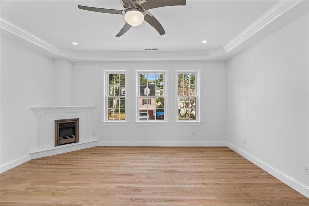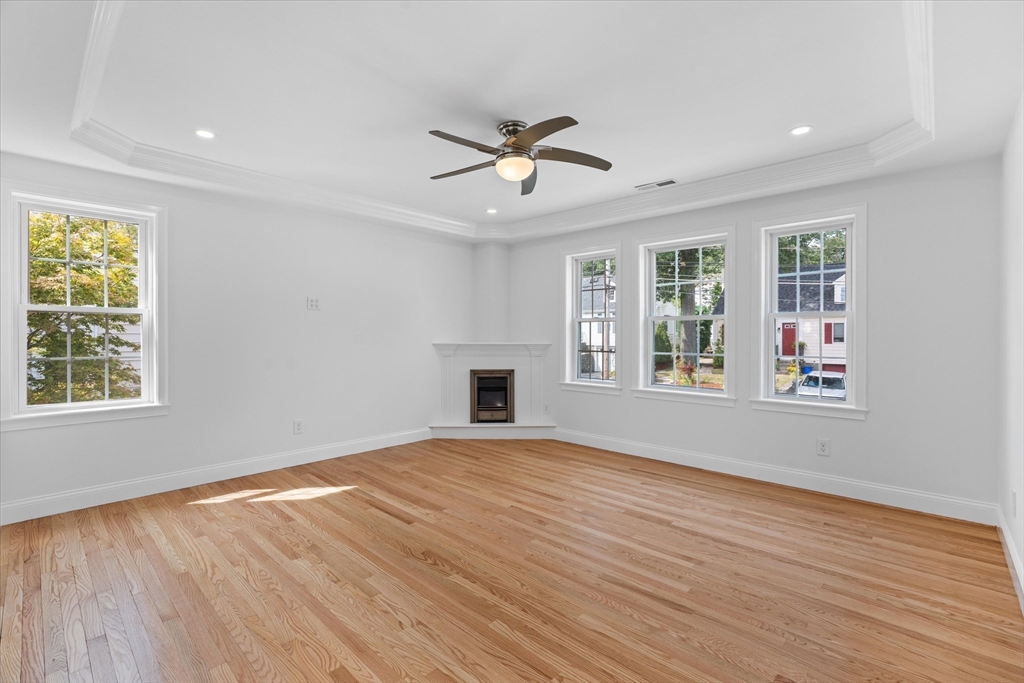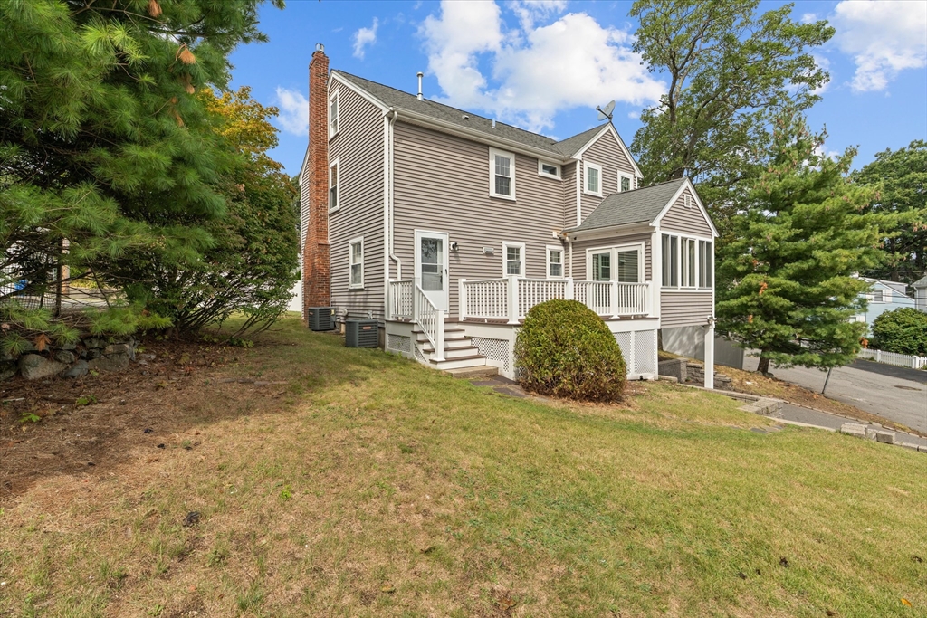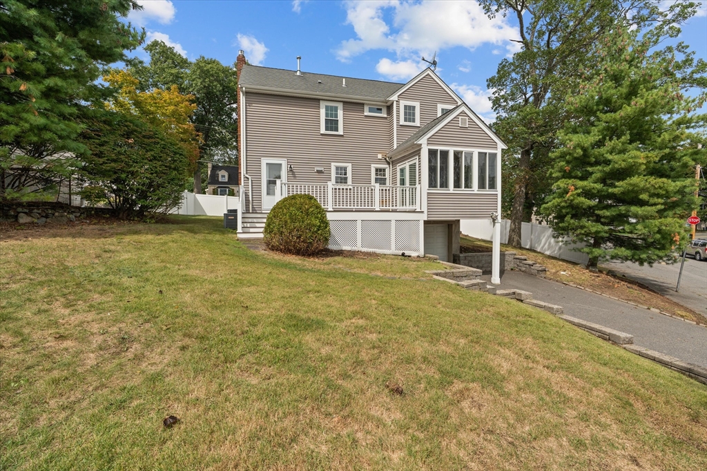 Move-in ready Highlands gem! Expanded Colonial on a Prime Corner Lot in the Highlands. Completely renovated, this home offers 5 BR/3BA, with fresh paint throughout. The kitchen showcases refaced cabinets, granite countertops, and stainless-steel appliances, opening directly to the formal dining room with its elegant built-in hutch. An oversized living room with a Gas fireplace flows seamlessly through charming archways. Gleaming, refinished hardwood floors and crown moldings extend throughout the main level, which also features a first-floor bedroom, a versatile den, and a relaxing cathedral-ceiling three-season porch. Upstairs, the luxurious master suite boasts a tray ceiling, an electric fireplace, and a custom-built walk-in closet. Luxurious master suite with custom walk-in closet, tray ceiling, fireplace, spa-like bath, jetted tub, dual vanity, and a separate glass-enclosed shower. fenced yard, double-width driveway with rear street access & attached garage.