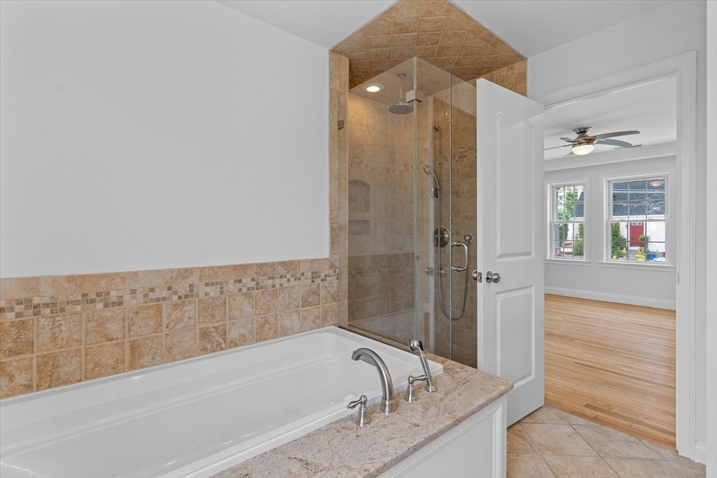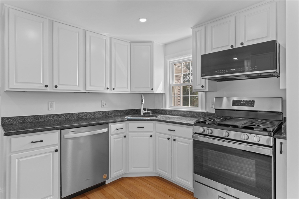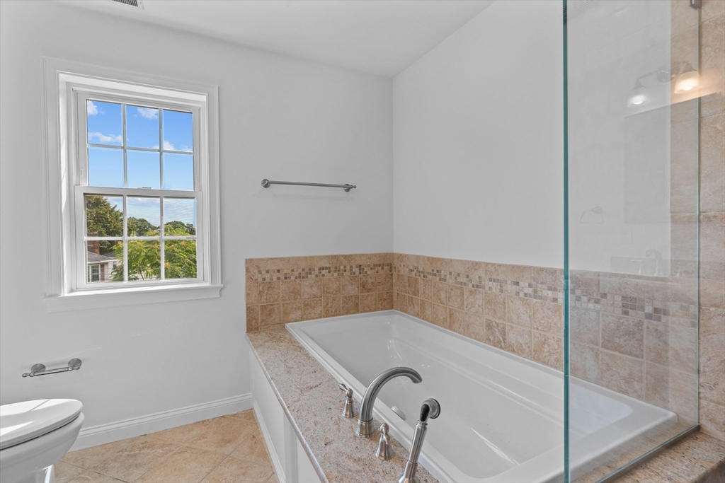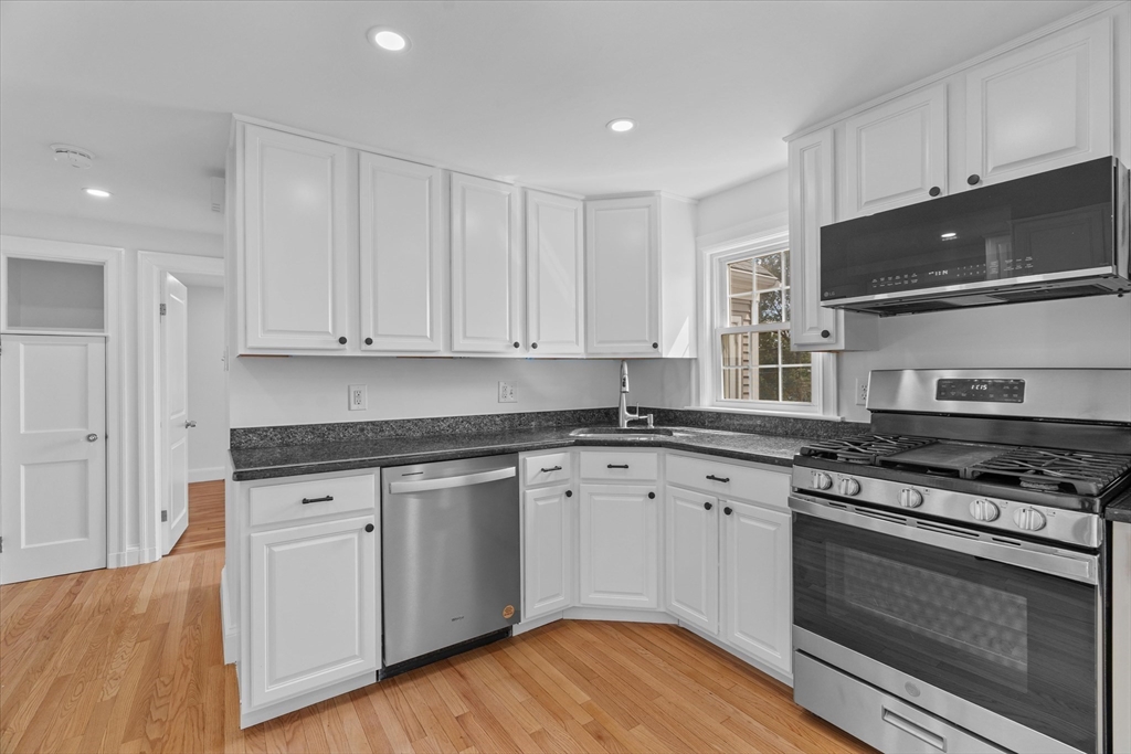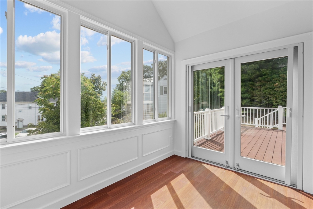 Move-in ready Highlands gem! Expanded Colonial on a Prime Corner Lot in the Highlands. Completely renovated, this home offers 5 BR/3BA, with fresh paint throughout. The kitchen showcases refaced cabinets, granite countertops, and stainless-steel appliances, opening directly to the formal dining room with its elegant built-in hutch. An oversized living room with a Gas fireplace flows seamlessly through charming archways. Gleaming, refinished hardwood floors and crown moldings extend throughout the main level, which also features a first-floor bedroom, a versatile den, and a relaxing cathedral-ceiling three-season porch. Upstairs, the luxurious master suite boasts a tray ceiling, an electric fireplace, and a custom-built walk-in closet. Luxurious master suite with custom walk-in closet, tray ceiling, fireplace, spa-like bath, jetted tub, dual vanity, and a separate glass-enclosed shower. fenced yard, double-width driveway with rear street access & attached garage.
