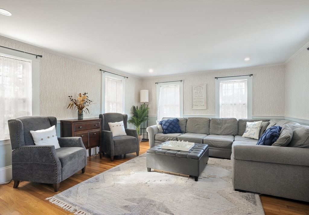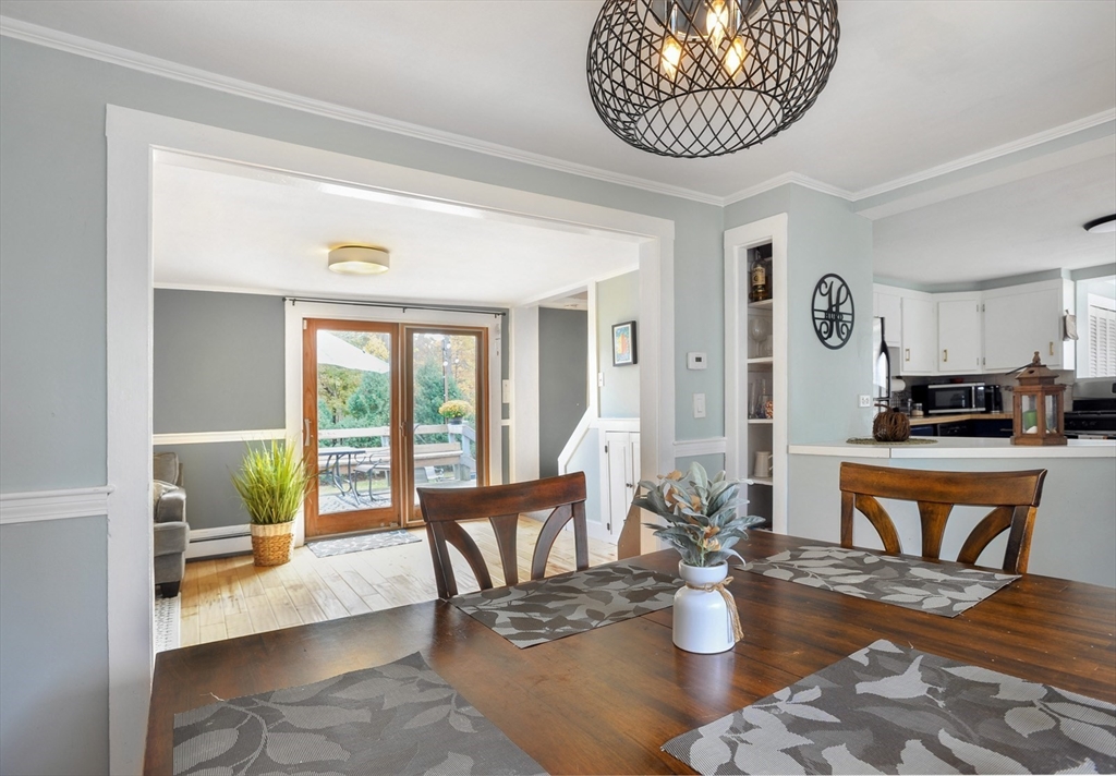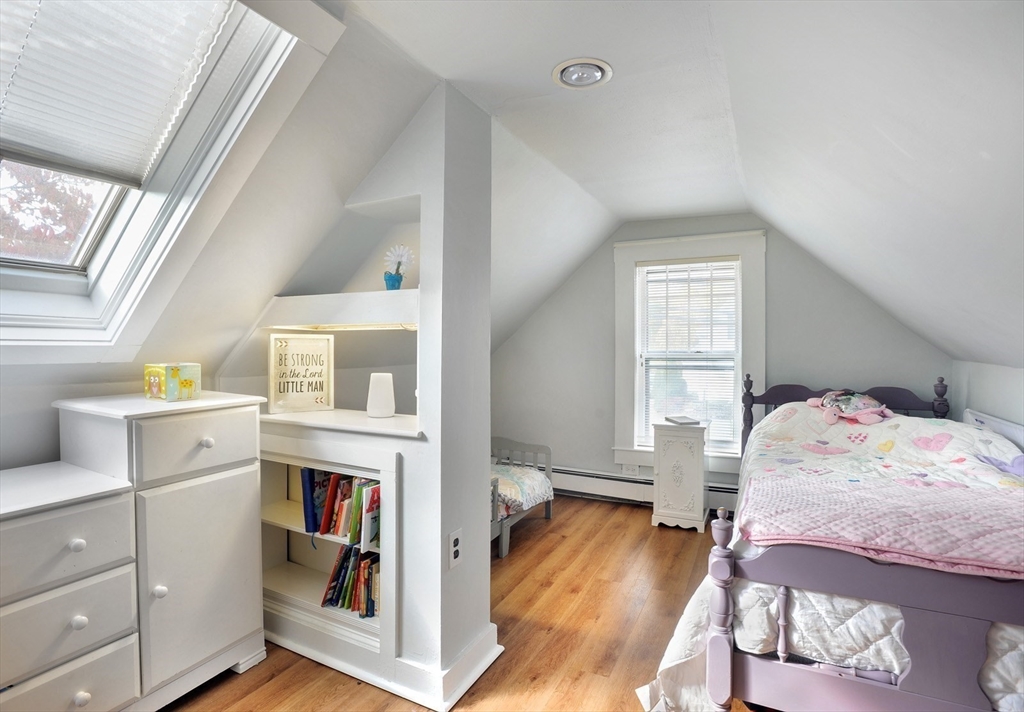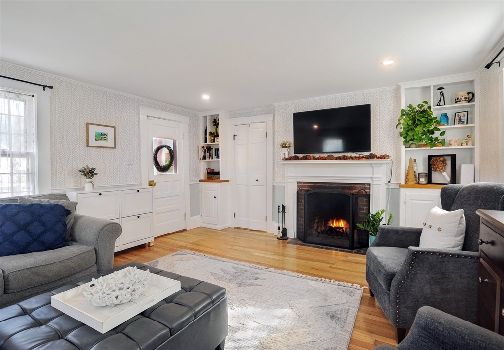 NEW TO MARKET! Discover the heart of New England in this charming Antique Farmhouse situated on a quiet, tree lined cul-de-sac, conveniently located near highway, hospital and many area amenities. Step inside and be greeted by the sun filled, formal living room featuring built-ins and a beautiful fireplace. The country kitchen offers built-in cabinets, stainless-steel appliances and opens to the inviting dining area with sunny bay window. Open floor concept leads to spacious family room, with built-in tv stand and closets. Off family room is access to the 2-car attached garage, sunny spacious deck and large, fenced back yard. Additional unfinished space above garage offers possibilities for home office, additional bedroom etc. From family room find full bath and convenient laundry room. Second floor features 3 bedrooms, vaulted ceilings, closets, skylights and many windows for natural light. Property is set on a flat quarter acre, with fenced yard offering wonderful privacy.