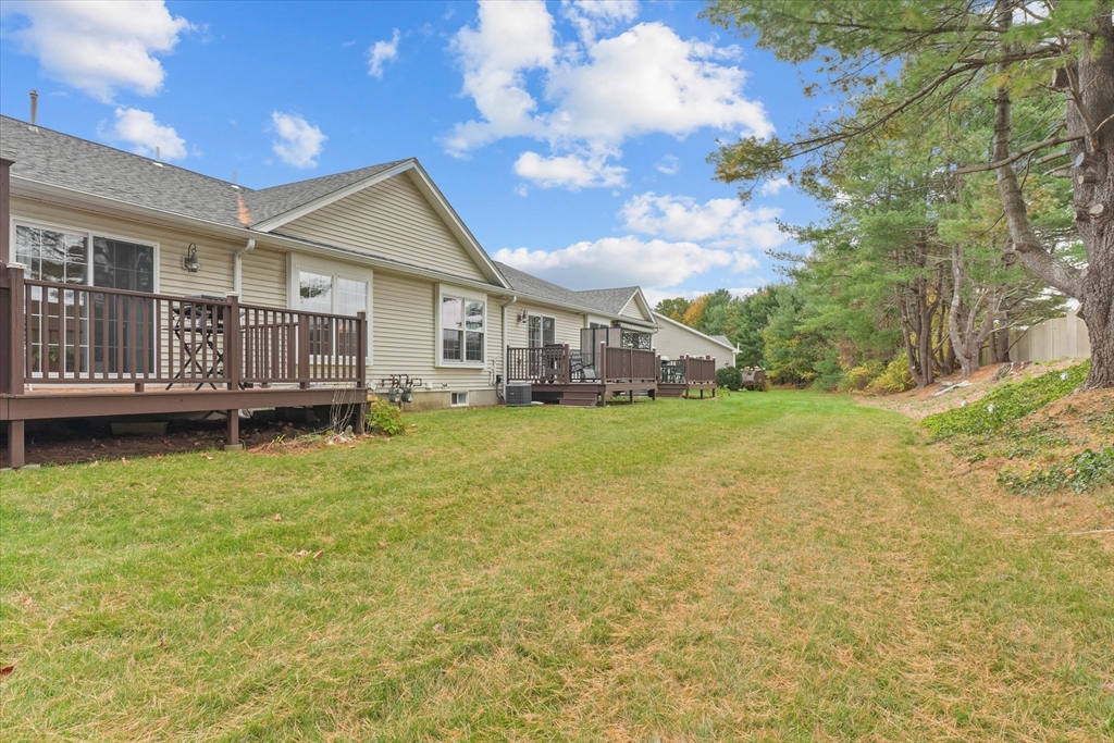 Welcome to The Village at Newburyport! Enjoy the ease of single-level living in this well maintained home featuring a bright, open floor plan with cathedral ceilings. The kitchen flows seamlessly into the spacious dining and living areas, offering an inviting atmosphere and direct access to the deck. This home includes two bedrooms, highlighted by a primary suite with en suite bath, a walk-in closet, plus a second laundry closet for added convenience. Two updated full baths with new walk-in showers. The expansive, unfinished basement provides excellent storage or potential for future living space. Additional features include a freshly painted interior, newer HVAC system and hot water tank, newer laundry units, 5 year old roof and an attached one-car garage. Ideally located across from the clubhouse and close to all that Newburyport has to offer! Showings begin at the Open Houses Sat 11/1 & Sun 11/2, 12-1:30pm.