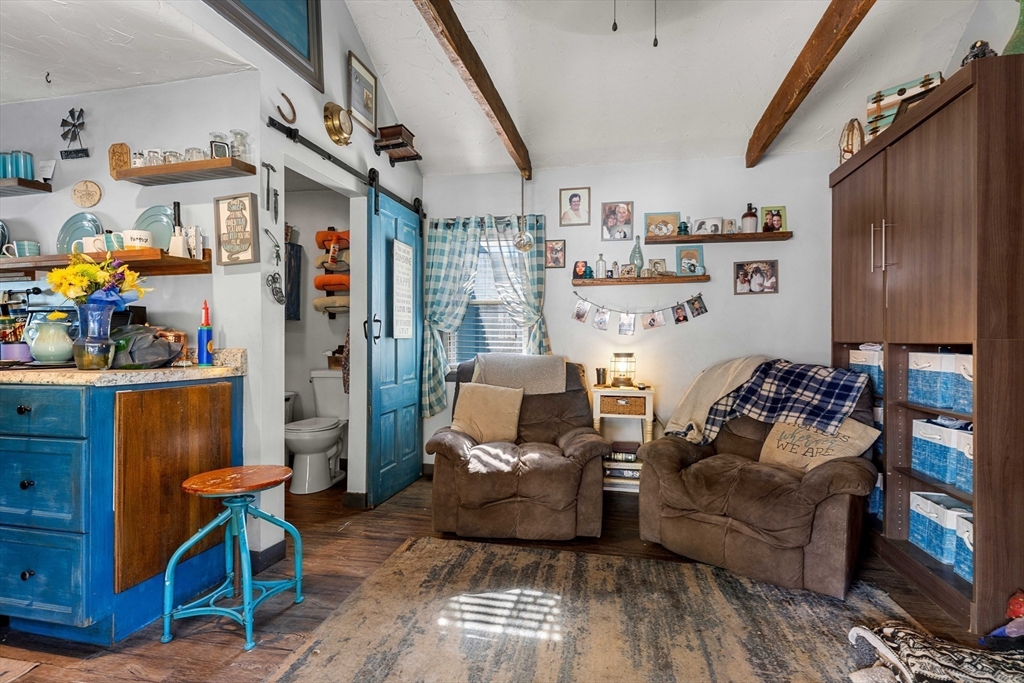 Cute as a button bungalow house tucked away on a private street in a well-sorted neighborhood, minutes from Coes Pond in West Side Worcester. It features a loft overlooking the living room that allows a rustic open ceiling and flows through the beautiful renovated kitchen, 2 good size bedrooms with a possibility of a 3rd bedroom if may. The property is filled with so many unique amenities. Oversized deck with patio that sits on a fully curbed back yard with a pool, perfect for relaxing or hosting . EV charging station. The detached garage is being used for a retreat room and gives a perception of a separate in-law suite. Bring your ideas.