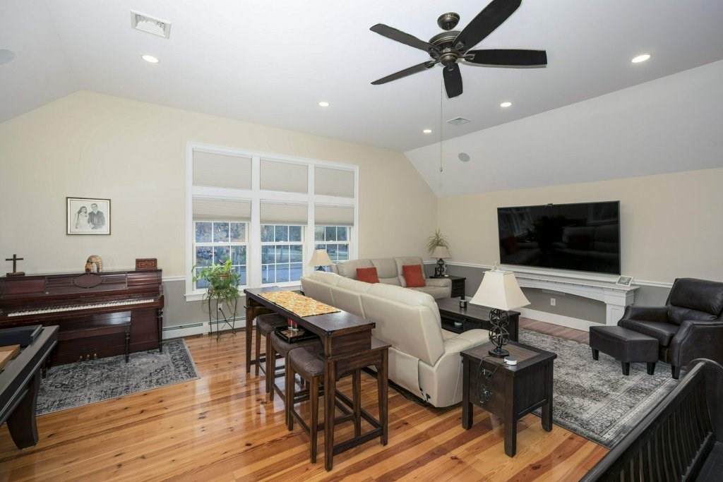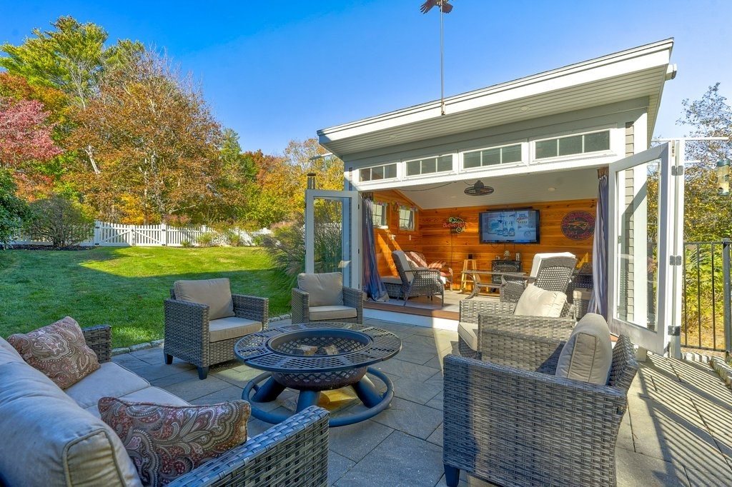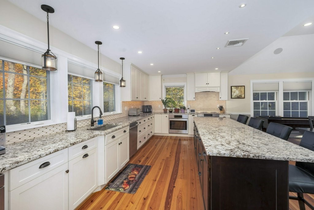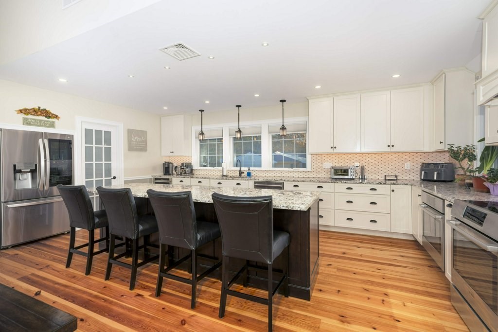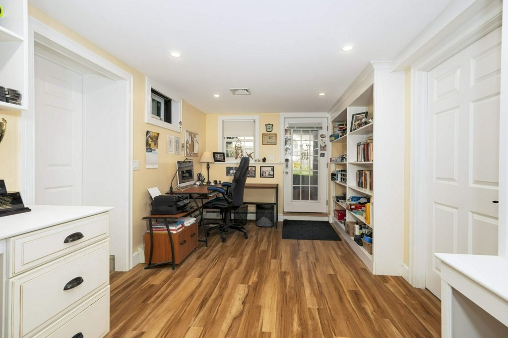Fabulous custom ranch. Builder bought this home for himself and expanded / renovated it in 2018. When they say entertainment home, this is what they mean! The custom kitchen features 2 convection and induction ovens; a 10 foot center island; granite counters and stainless appliances. The kitchen opens to a huge living / family room with a vaulted ceiling. Gorgeous wide plank "heart pine" floors in Dining room, Kitchen and Familty / Living rm. The main bedroom features a fireplace and full bath with custom shower and soaking tub. The dining room has french doors opening to a mahogoney balcony with a staircase leading to a 500 sq ft faux blue stone patio. The lower level has a custom built office and large gym. The “she shed” is like no other and must be seen. Additional features inlcude heated garage, 5 heating zones, 2 zone central air and much more. Corner lot with driveway off beautiful Jay St. Convenient to everything! 1st Open Sunday November 2, 11-1 pm. Here’s your chance!