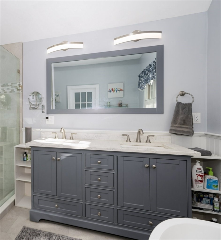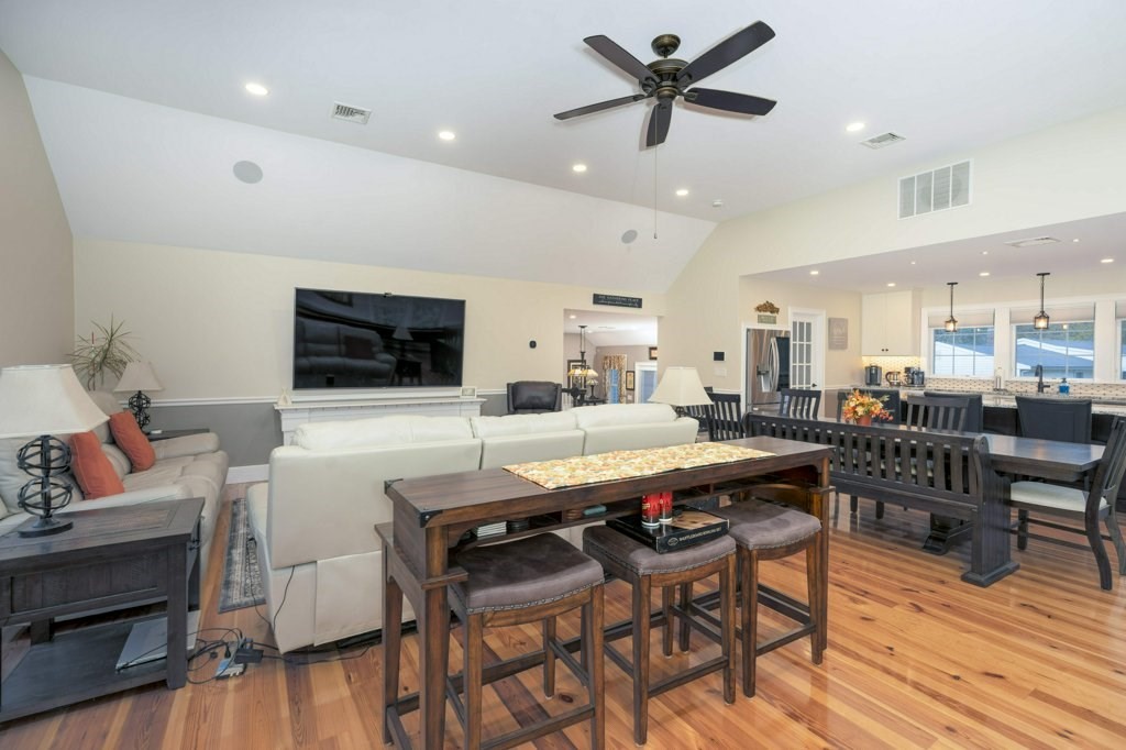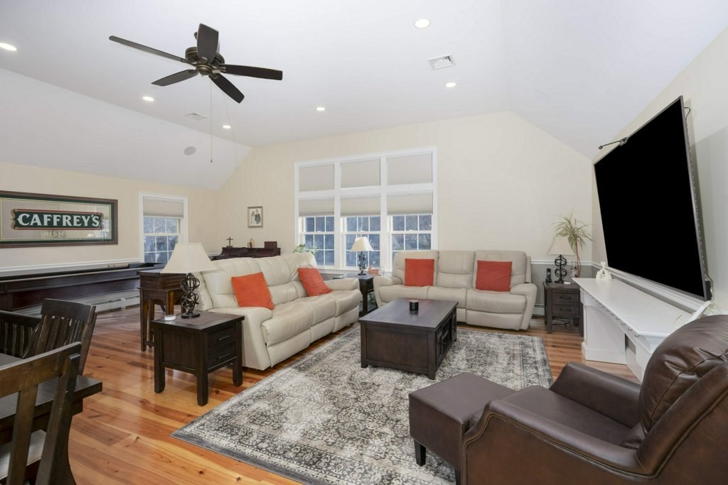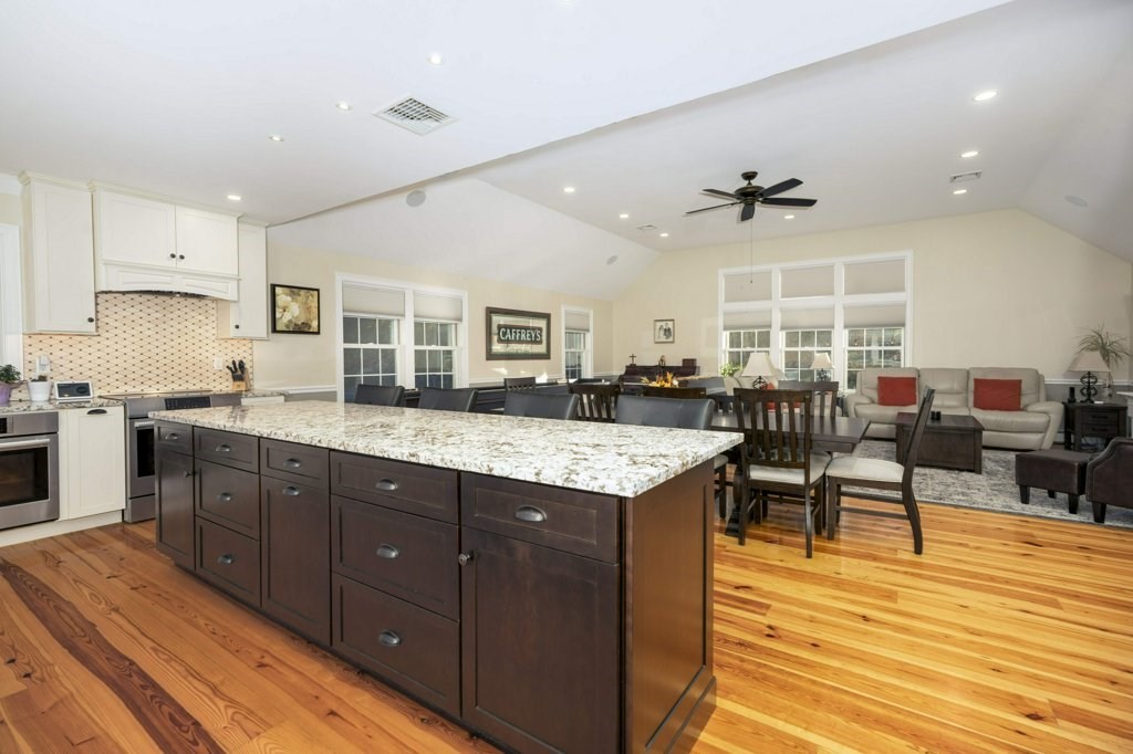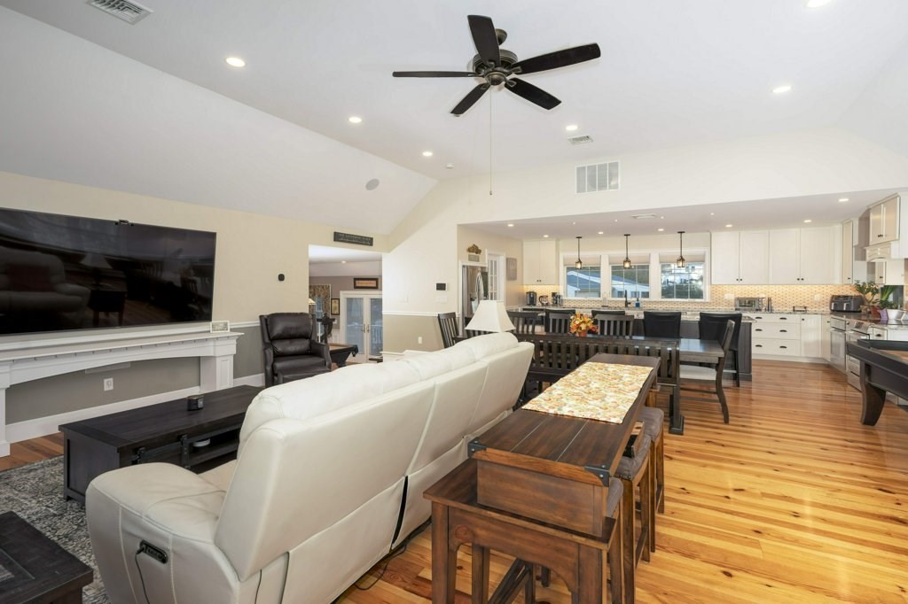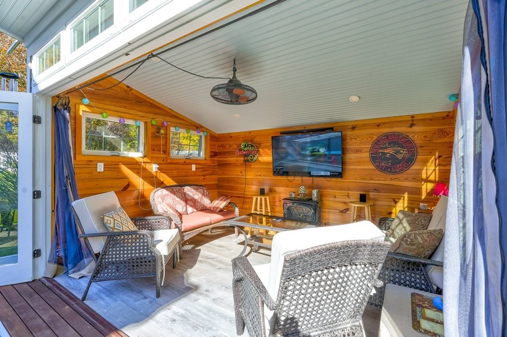 Fabulous custom ranch. Builder bought this home for himself and expanded / renovated it in 2018. When they say entertainment home, this is what they mean! The custom kitchen features 2 convection and induction ovens; a 10 foot center island; granite counters and stainless appliances. The kitchen opens to a huge living / family room with a vaulted ceiling. Gorgeous wide plank "heart pine" floors in Dining room, Kitchen and Familty / Living rm. The main bedroom features a fireplace and full bath with custom shower and soaking tub. The dining room has french doors opening to a mahogoney balcony with a staircase leading to a 500 sq ft faux blue stone patio. The lower level has a custom built office and large gym. The “she shed” is like no other and must be seen. Additional features inlcude heated garage, 5 heating zones, 2 zone central air and much more. Corner lot with driveway off beautiful Jay St. Convenient to everything! 1st Open Sunday November 2, 11-1 pm. Here’s your chance!