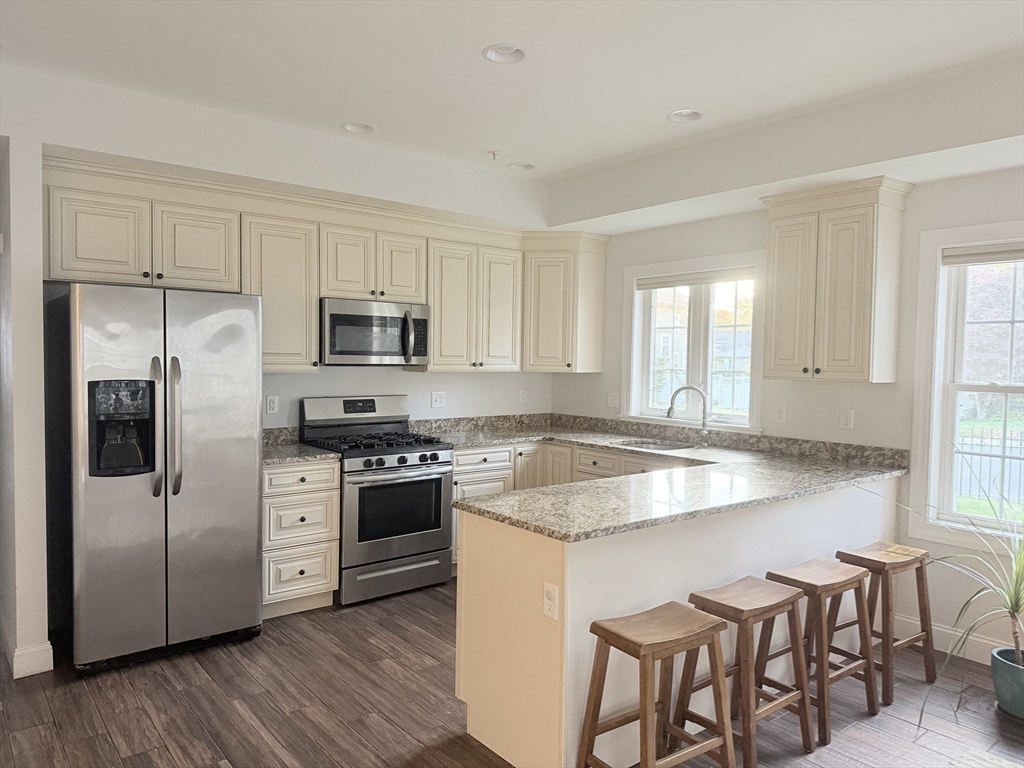 Enjoy the best of Haverhill living in the Bradford community, near the city, the river and commuter rail. This sunny (like NEW) corner townhouse features a welcoming open floorplan, central air, intelligent locks, eat in-kitchen granite counters, new microwave and plenty of space 1,575sft. The living / dining room includes a charming bay window, coat closet and guest 1/2 bath. Upstairs enjoy 3 relaxing bedrooms with a layout that provides a sense of separation and privacy for each. Extra roomy Master has en-suite bathroom, 2 closets, and a balcony. The second full bathroom adjoins the other 2 rooms with jack and jill access. A convenient attached garage means you have dedicated, secure parking and additional storage. This condominium presents a wonderful opportunity to own a modern home in a desirable location that is move in ready, just waiting for your personal touch. Superb opportunity - Not to be missed!! 1st Open House Weekend Nov 1 Sat & Sun 12-2pm