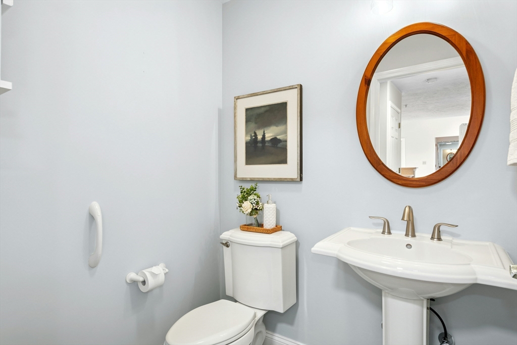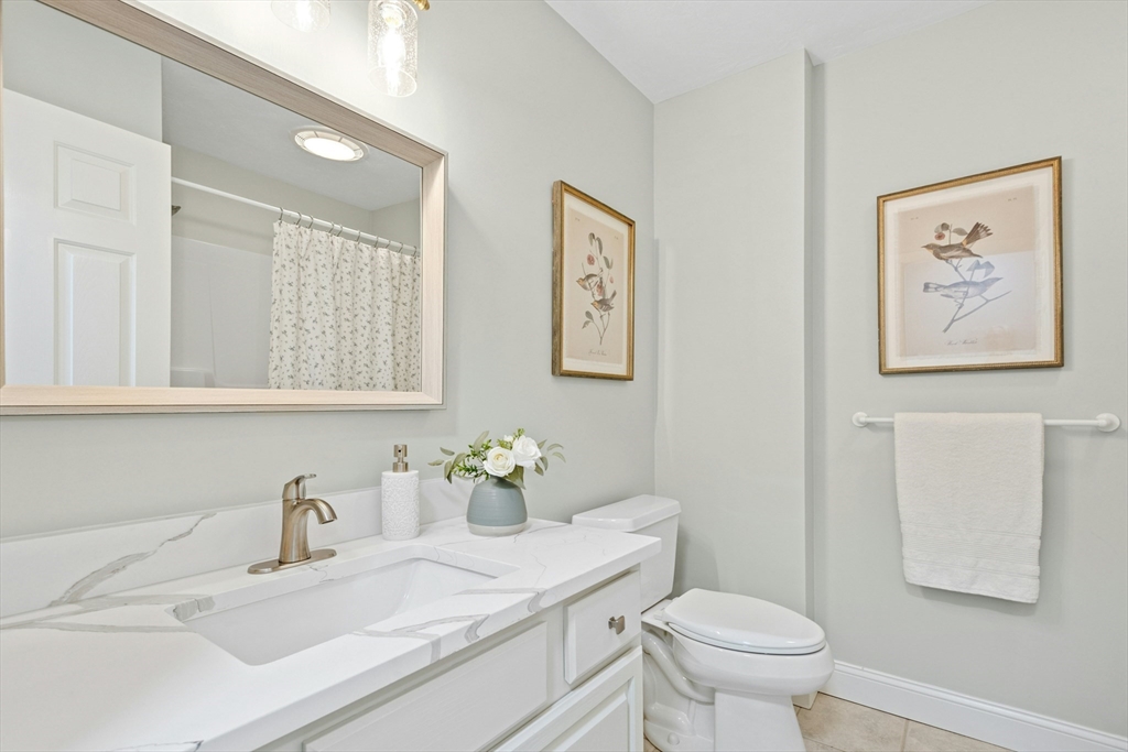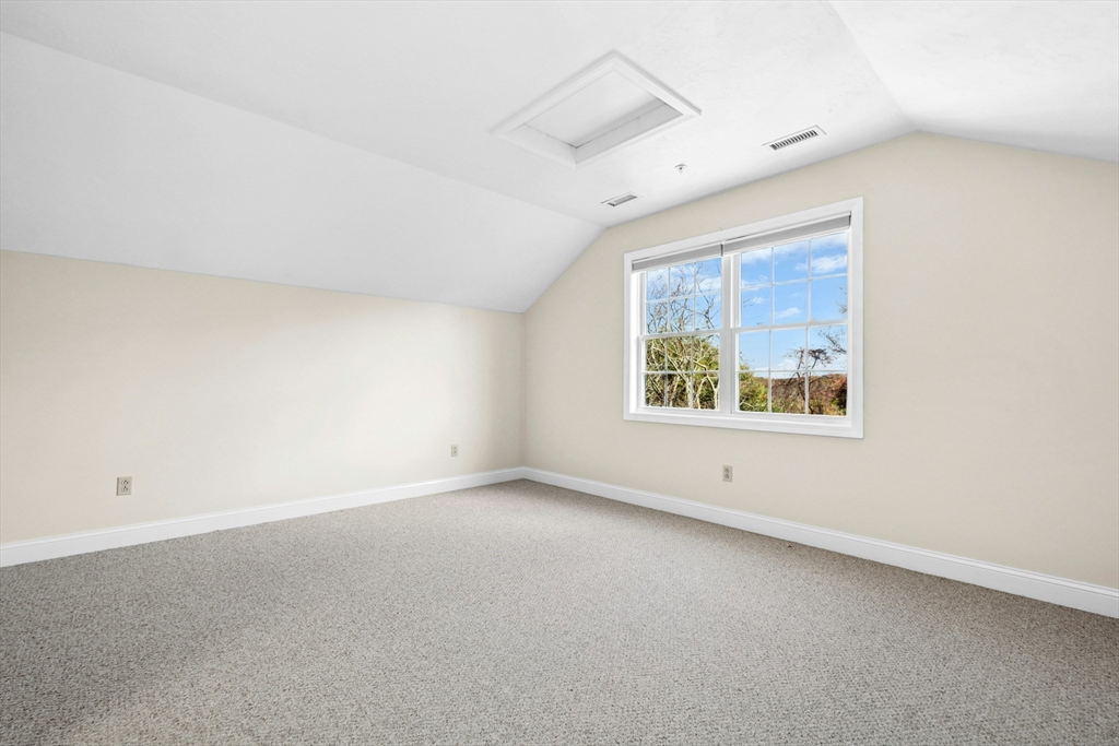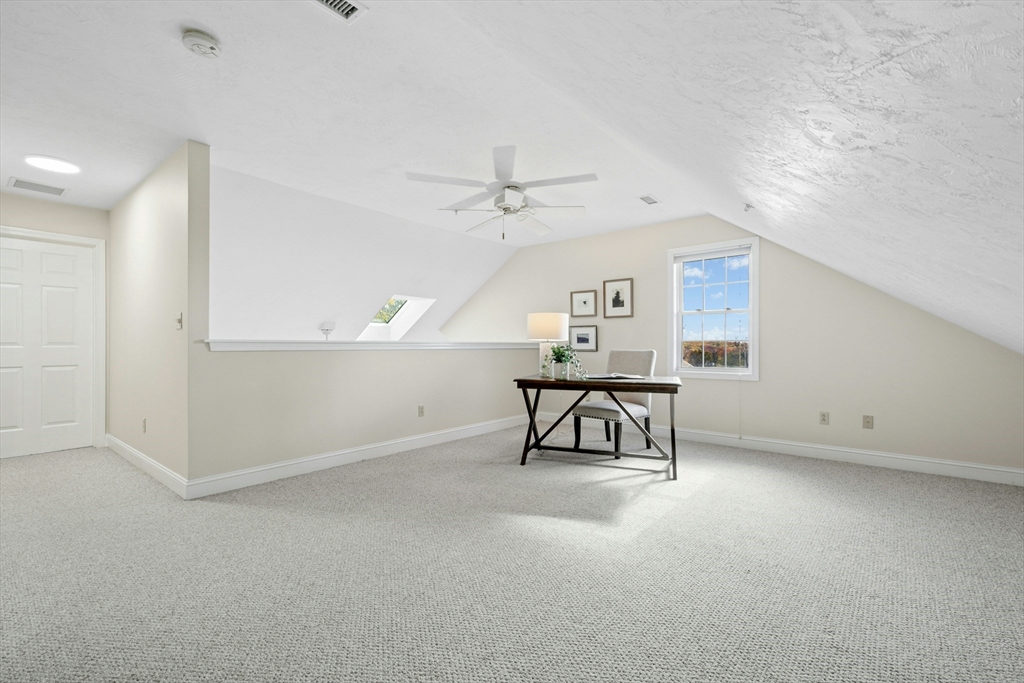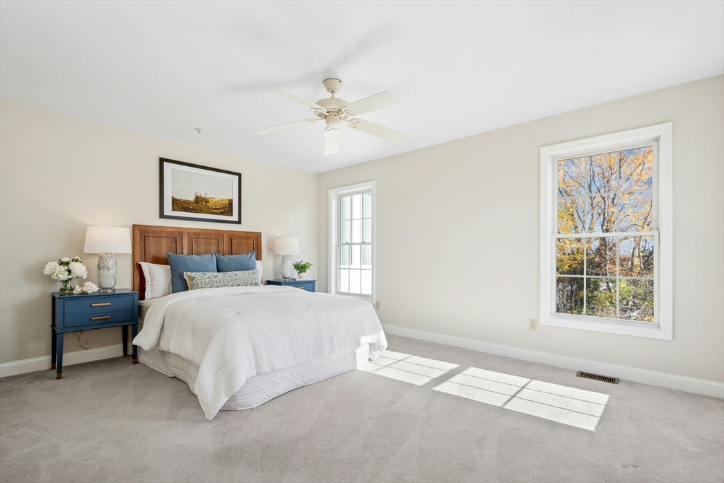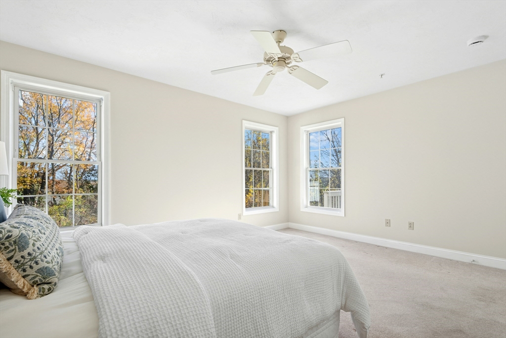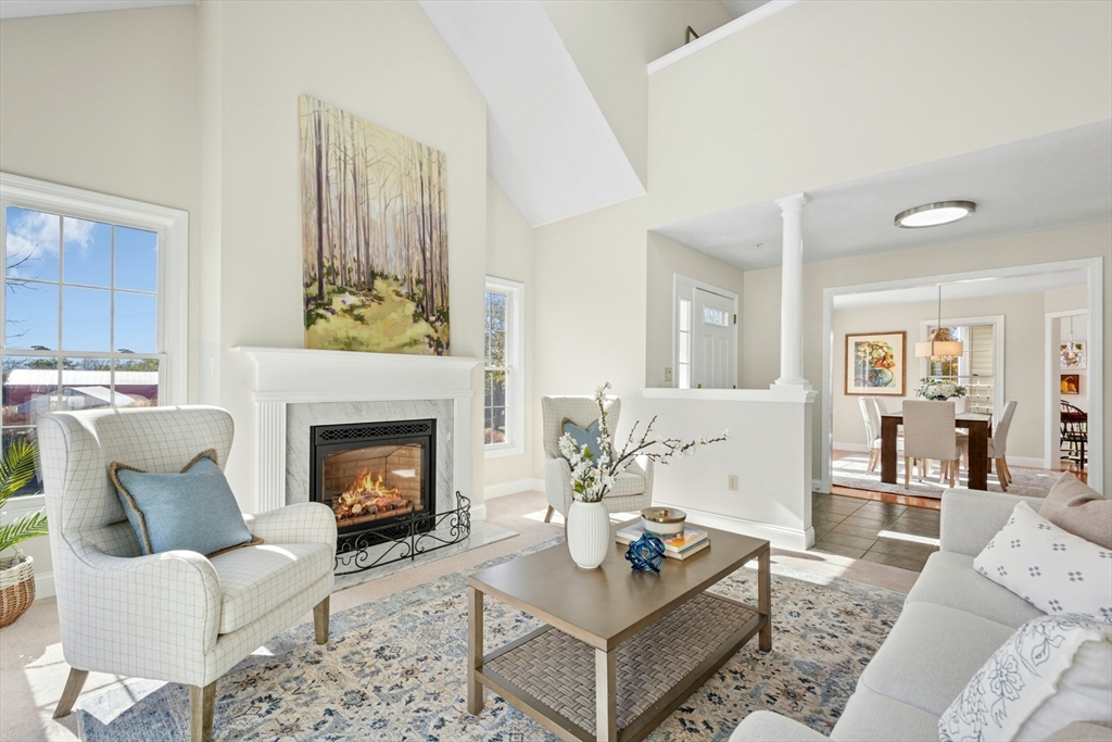 This sun-filled end unit stands apart for its exceptional privacy & expansive yard-like outdoor space within this 55+ community. Freshly repainted interior, updated bathrooms & refreshed dining room. Main level offers a cathedral-ceiling living room, gas fireplace, & eat in kitchen with skylight & laundry. First-floor primary suite features a walk-in closet and updated bath. Upstairs, a generous loft & guest suite provide flexible space for visitors, an office, or hobbies. Bonus room in the walk-out lower level is perfect for a home gym, studio, or den — there’s abundant storage throughout. Step outside to enjoy your private composite deck overlooking manicured grounds and mature landscaping. Recent updates include full interior paint (2025), refreshed bathrooms and dining area, newer roof, skylights, gutters, heating system, composite deck. Located minutes from Route 9, shopping, dining, medical facilities, this home combines the ease of condo with the feeling of a private residence.