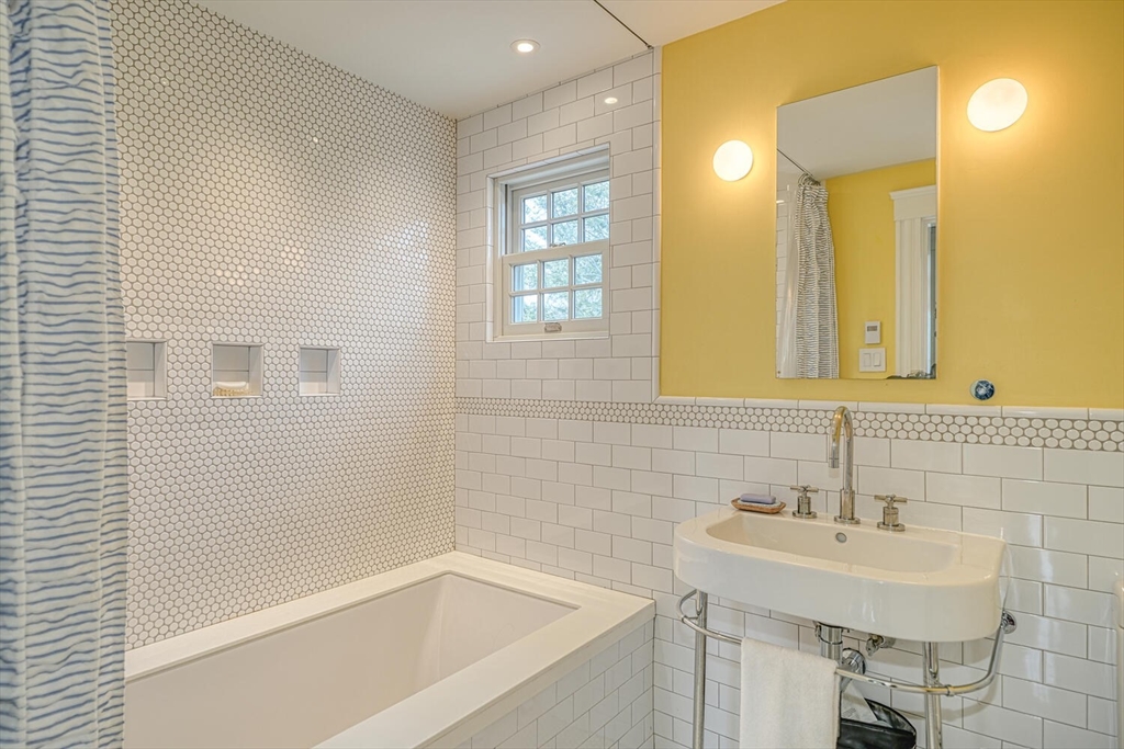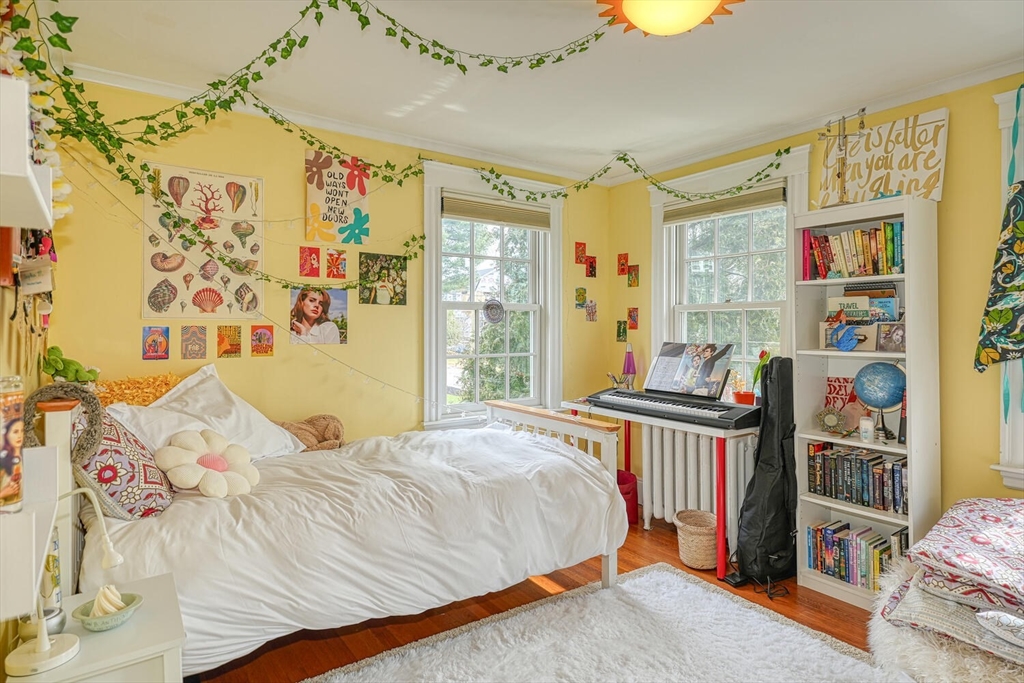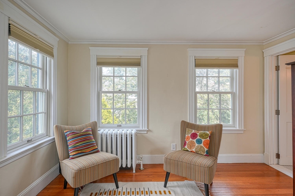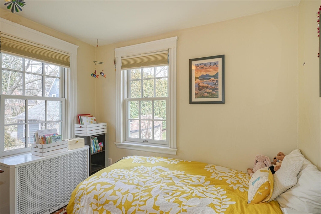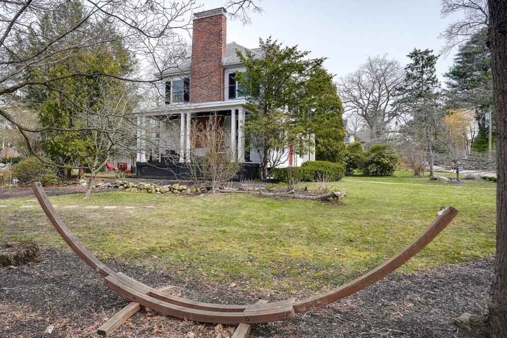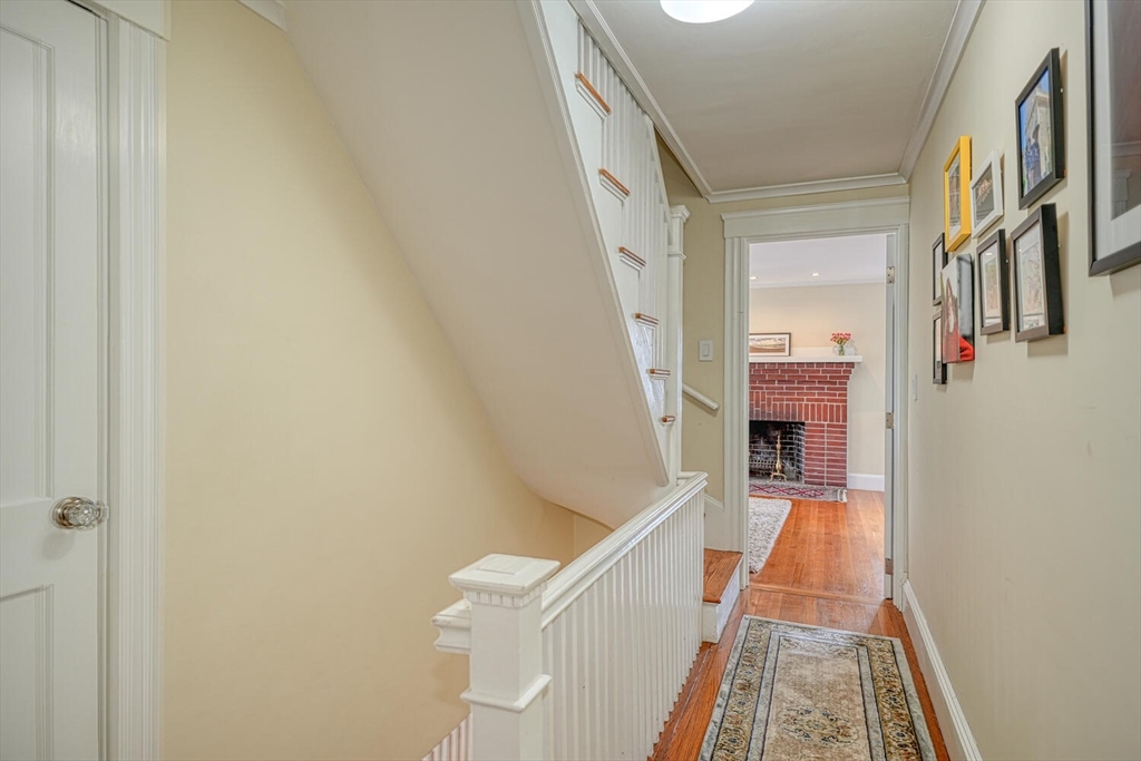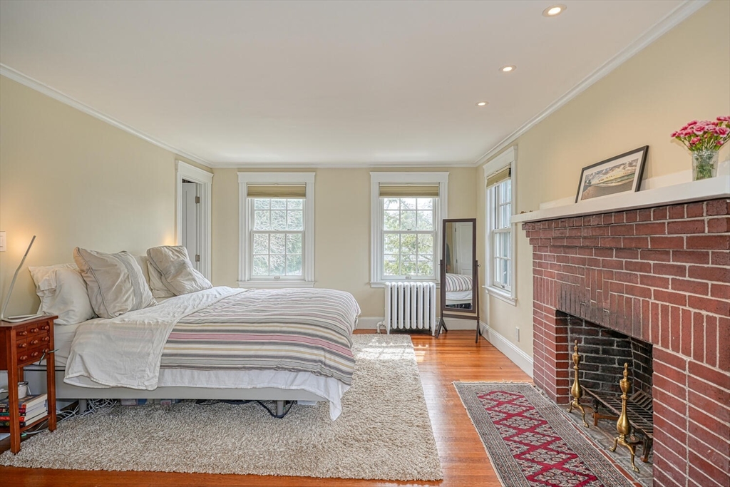 Charming Colonial home in the desirable Clark Hill neighborhood, minutes from Belmont Center, commuter rail, MBTA buses, top-rated schools, and preserved green spaces. Situated on a corner lot with landscaped gardens, this residence offers bright and inviting spaces throughout. The first floor features spacious living and dining rooms with fireplaces, direct access to the patio and covered side porch, a renovated kitchen, and a half bath. The second floor includes a primary bedroom with a private fireplace, two closets (including one walk-in), and a stylish ensuite bath, plus two additional bedrooms and a renovated full bath. The third floor offers two flexible rooms, ideal for a guest suite, home office, or creative space. Highlights: Updated heating system, classic details, abundant natural light, and beautifully maintained interior. A true gem perfect for those seeking peaceful living with proximity to urban conveniences in one of Belmont's finest neighborhoods!