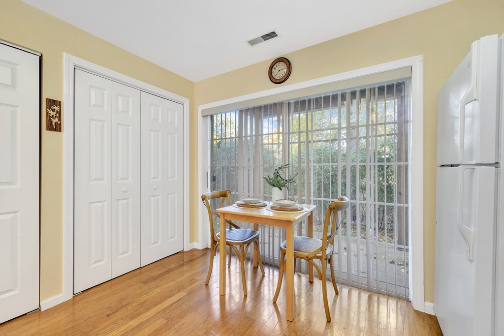 Great opportunity for one-floor living in this oversized 2-bedroom, 1-bathroom condominium in prestigious Danforth Village, an Over-55 community. The living/dining area offers an open floor plan and faces south. The fully applianced, eat-in kitchen features a slider that opens to your private covered patio, overlooking greenery. Off the kitchen is your laundry area with a washer and dryer and utility closet. Both bedrooms are good sized with ample closet space. This home boasts hardwood floors, gas heat, central air conditioning, extra storage and parking for 2 cars. This condominium is in the heart of it all, moments to public transportation, restaurants, and the shops of O'Connor's Plaza and Billerica Center. Pets under 30 pounds are welcome.