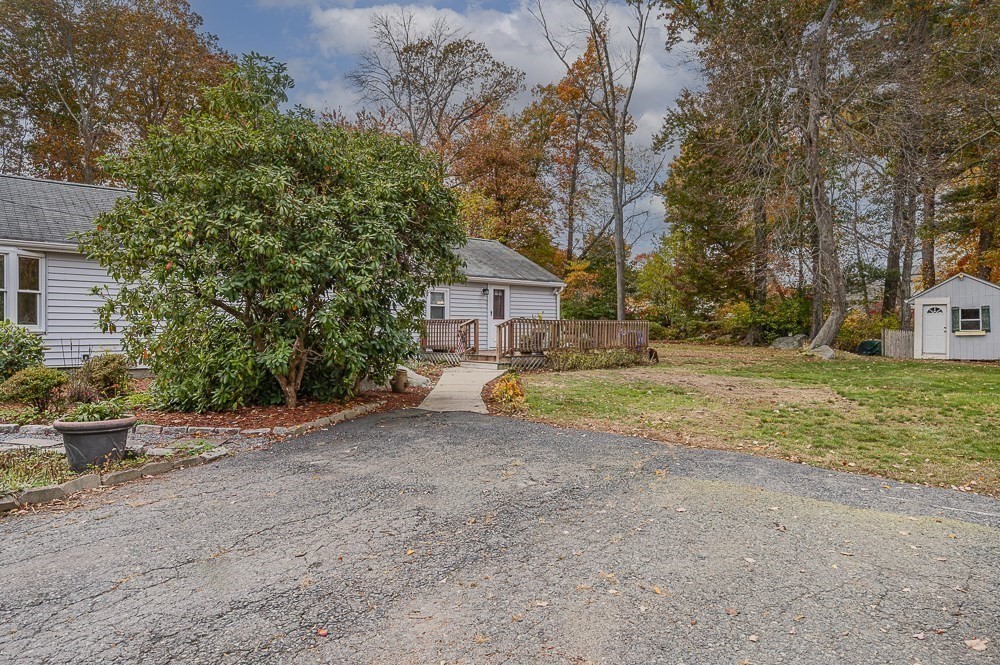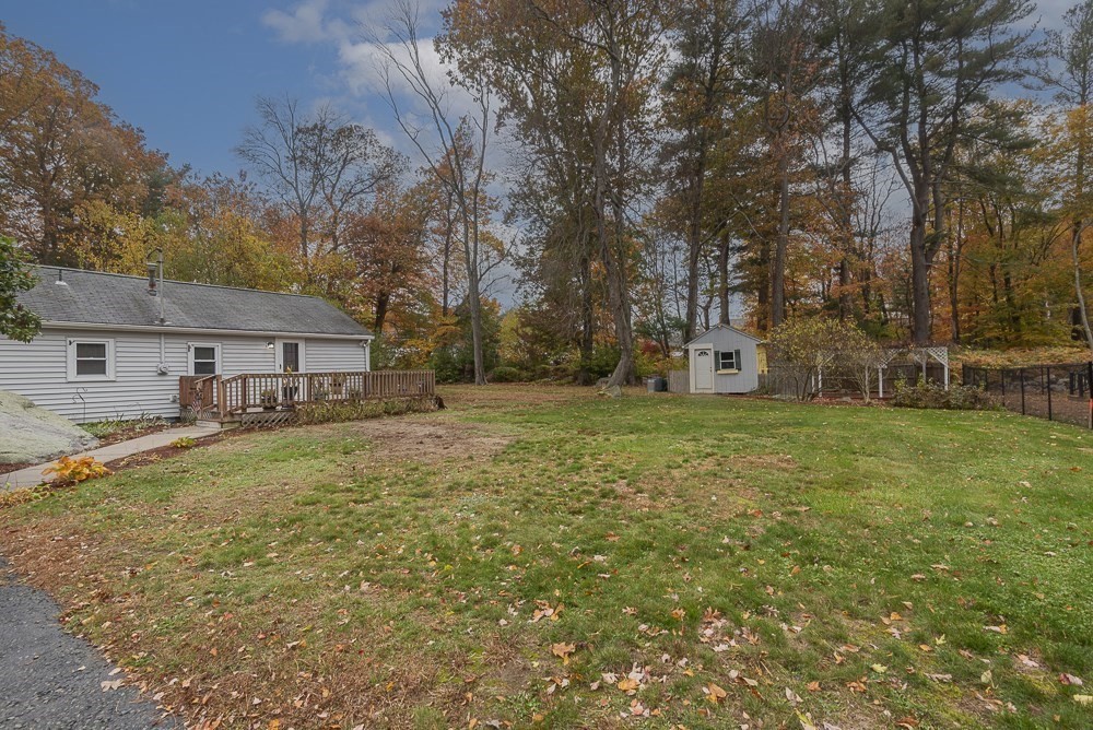 Owned by the same family for sixty years, now it's your chance to buy! Spacious Ranch on a side street & a double lot of land awaits! Features include a Living Room w/ bow window, dining room off the Kitchen w/ large pantry closet, 3 BRs with good closet space, convenient first floor laundry, 1st-Floor fireplaced Family Room with 19x12 Trex deck off, and 1.5 modern bathroms, gas heat/hot water(new in '23)/cooking/dryer. Pull-down access to the attic. Good-sized yard, with a paved driveway for about 6 vehicles, deck w/ pergola next to the storage shed, generator & hookup, and a flower garden loaded with perennials. The house has been deleaded, and the certificate is attached. Side street location, yet just a short drive to the commuter rail, local highways, and shopping/restaurants. Don't let your first chance in six decades pass you by!