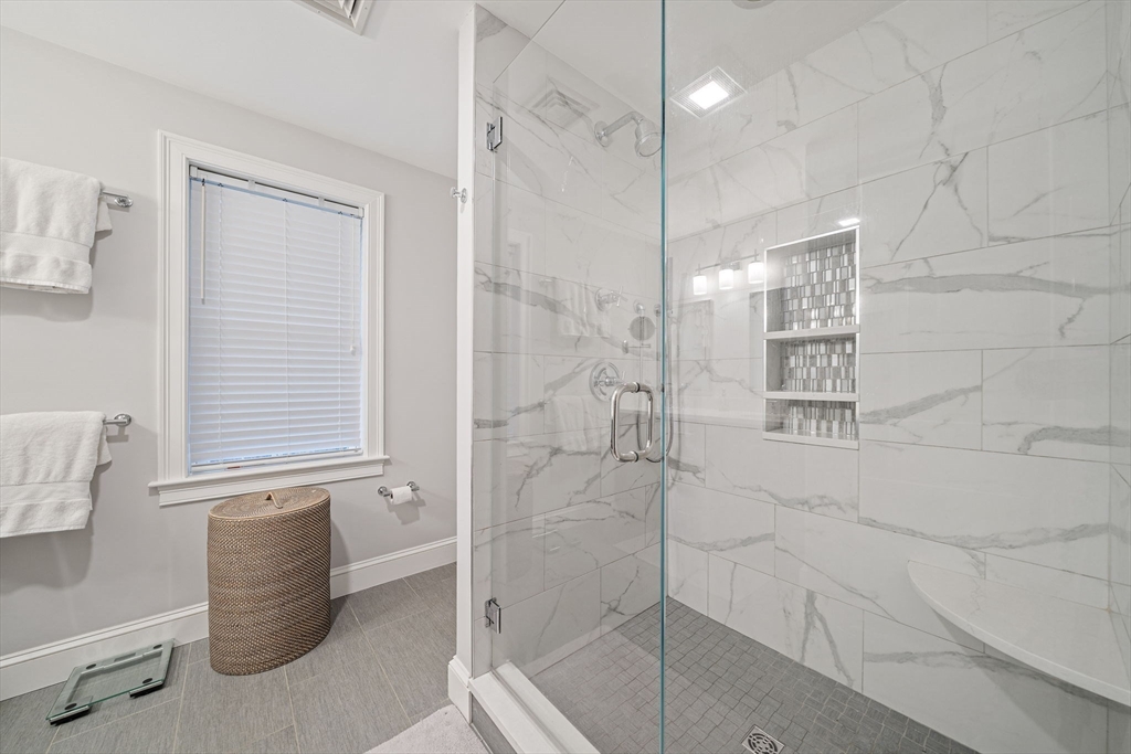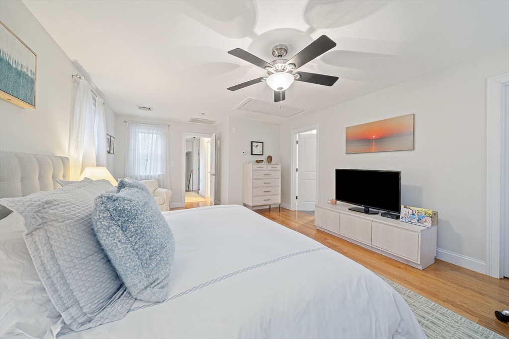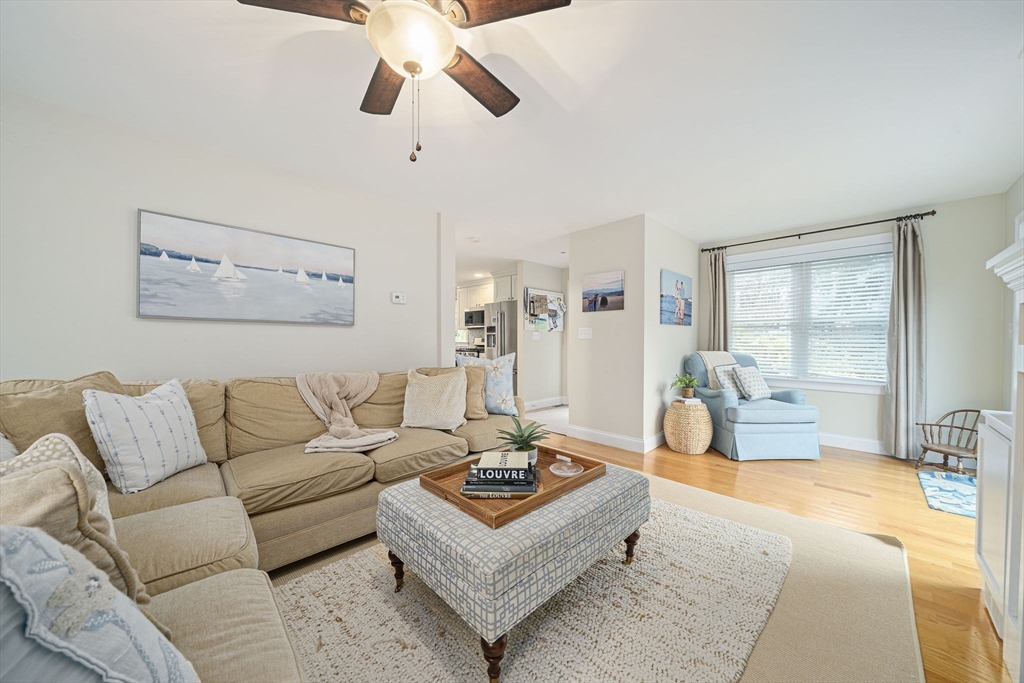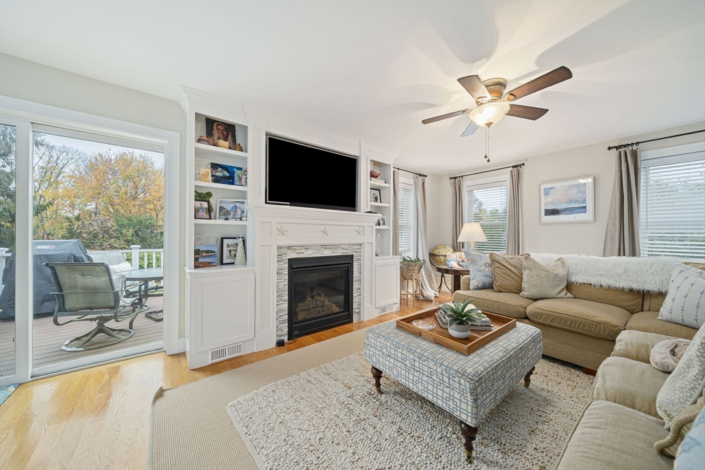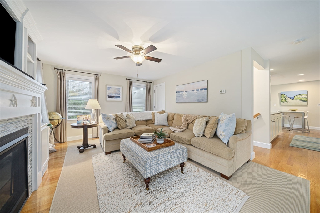 Welcome to this picturesque NE farmhouse-style home conveniently situated in the heart of Cohasset. The front sunroom entrance leads to this turnkey home whitch offers an open floor plan, high ceilings and gleaming hardwood floors. The chefs’ kitchen features gas cooking, a custom backsplash, stainless steel appliances and an eat-in area. Adjacent to the kitchen is a formal dining room, ideal for hosting future holiday meals and entertaining. The living room is off the kitchen with its custom-built-in bookshelves and mantle and a cozy gas fireplace. A large slider offers an abundance of natural light and leads to a private deck overlooking a private yard. The second floor features the guest bathroom and three bedrooms, one of which is ann oversized primary suite with a spacious bedroom, bath with a large shower, double vanity, and walk-in closet. The finished lower level includes a gymnasium or playroom, storage and a slider to the backyard, hot tub, and patio. See attached video!!!