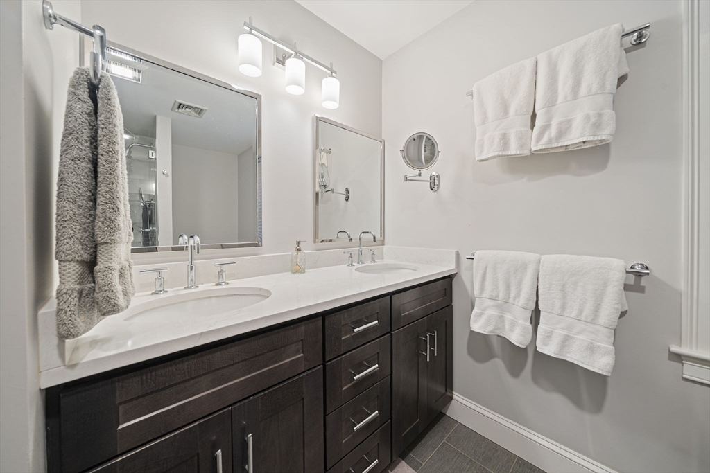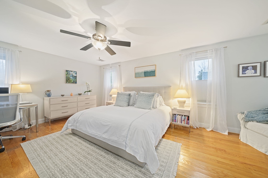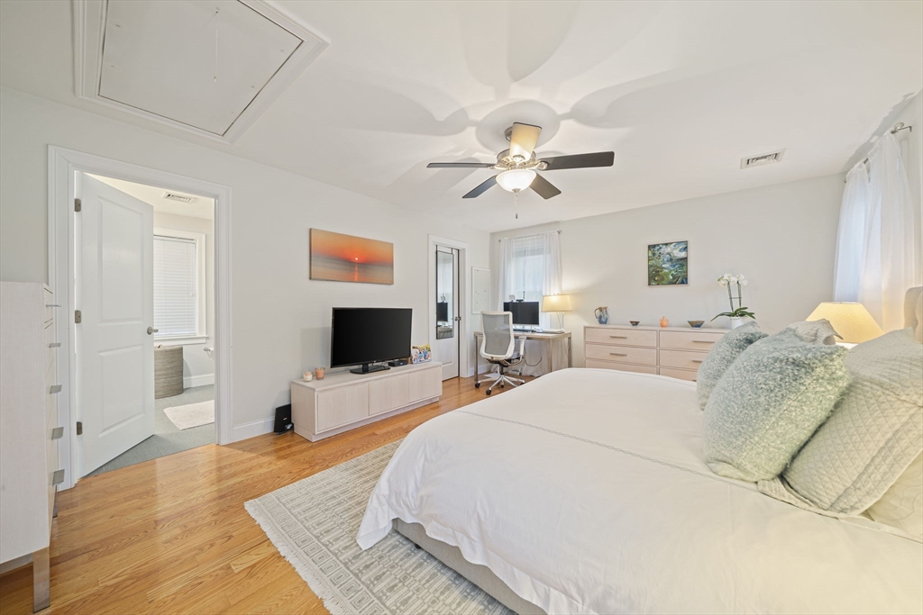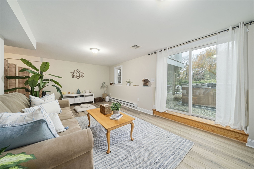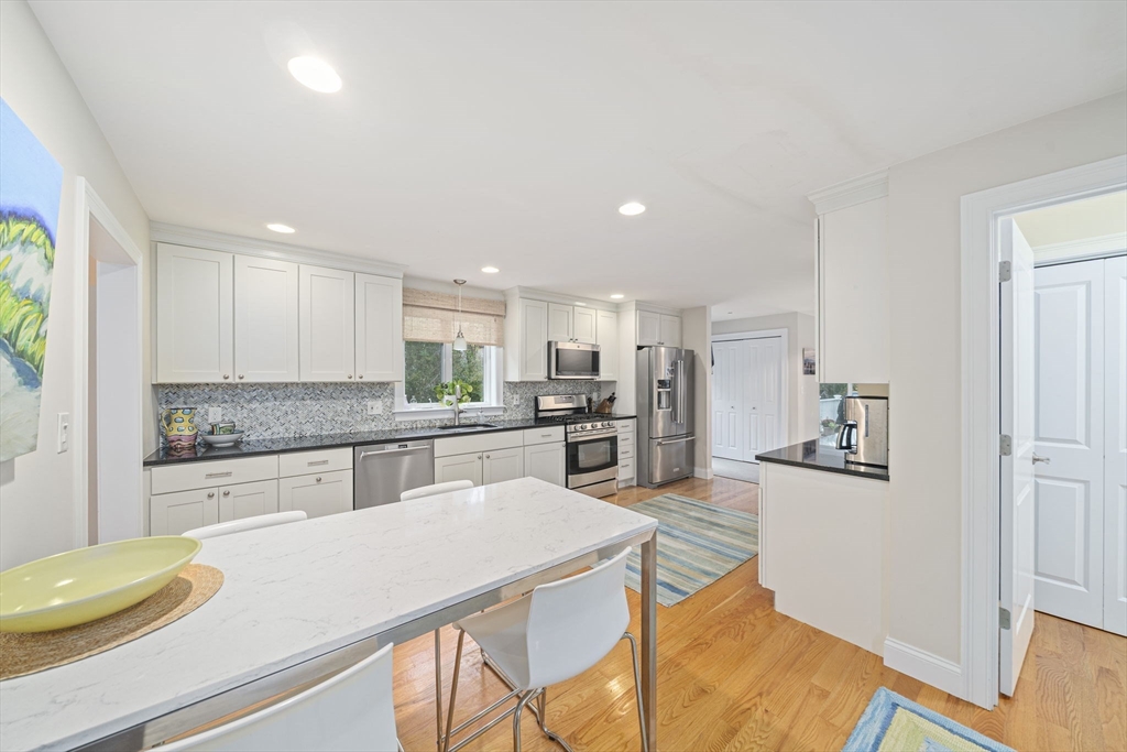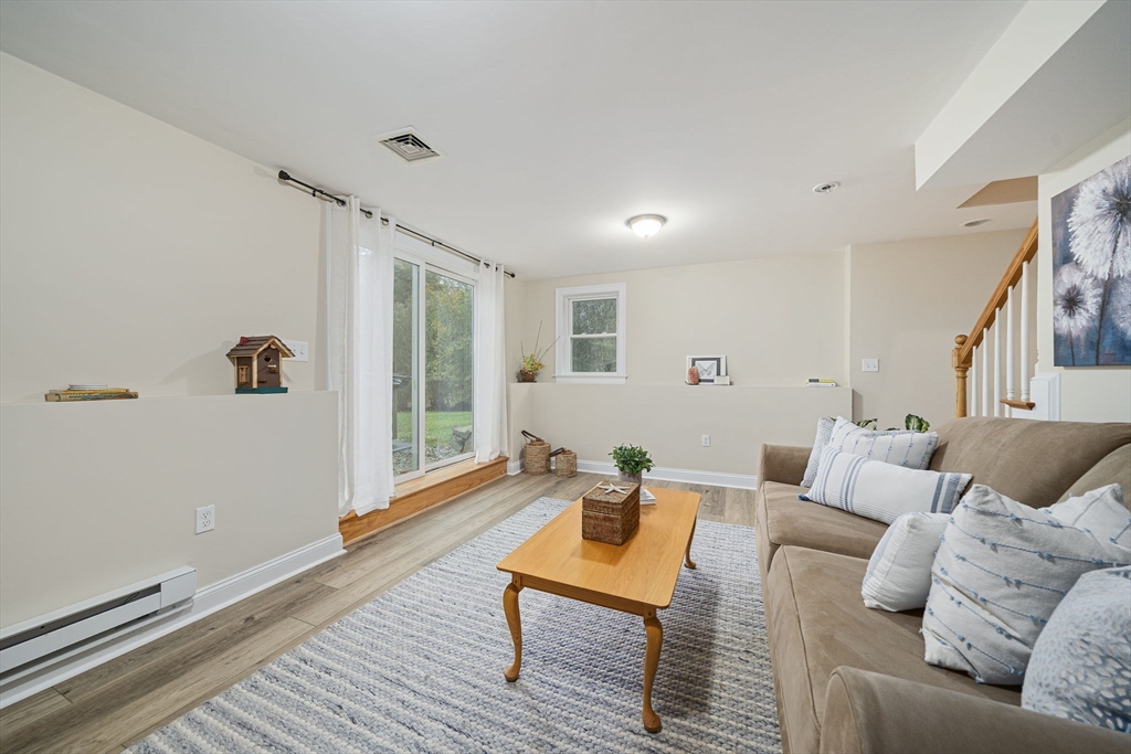 Welcome to this picturesque NE farmhouse-style home conveniently situated in the heart of Cohasset. The front sunroom entrance leads to this turnkey home whitch offers an open floor plan, high ceilings and gleaming hardwood floors. The chefs’ kitchen features gas cooking, a custom backsplash, stainless steel appliances and an eat-in area. Adjacent to the kitchen is a formal dining room, ideal for hosting future holiday meals and entertaining. The living room is off the kitchen with its custom-built-in bookshelves and mantle and a cozy gas fireplace. A large slider offers an abundance of natural light and leads to a private deck overlooking a private yard. The second floor features the guest bathroom and three bedrooms, one of which is ann oversized primary suite with a spacious bedroom, bath with a large shower, double vanity, and walk-in closet. The finished lower level includes a gymnasium or playroom, storage and a slider to the backyard, hot tub, and patio. See attached video!!!