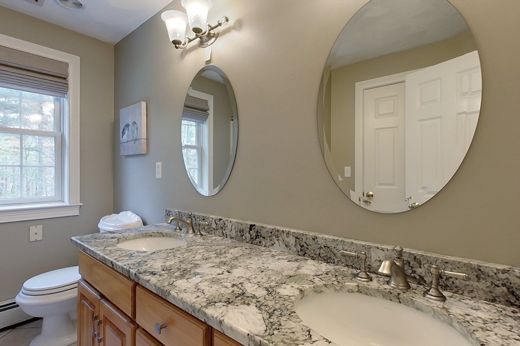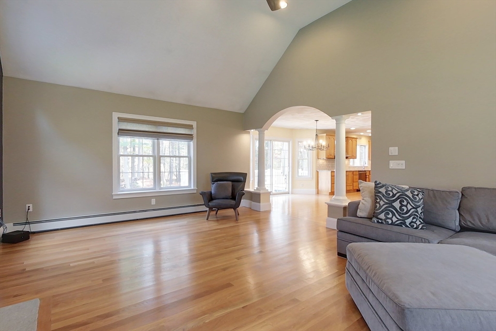This beautifully maintained home is filled with upgrades and architectural details that impress at every turn. Gleaming hardwood floors, shadow box wainscoting, inlay ceilings, arched walls, and pillar accents add timeless charm. The spacious, open-concept kitchen/breakfast is ideal for entertaining, featuring an oversized layout, new counters, abundant cabinetry, and a sunlit dining area with sliders to the back deck. The grand family room showcases cathedral ceilings, crescent-topped windows, and a stunning stone fireplace. Upstairs offers a beautiful primary suite with a private bath, two additional bedrooms, and a full bath. Enjoy a 2-car garage, laundry room, formal Dining Room, Living Room, guest 1/2 bath and 750+ sq. ft. of unfinished basement space. Nestled on 2 private acres with manicured landscaping, stone walls, and a fire pit area—this home is move-in ready and truly stands out! Showings begin at the Open Houses this weekend Sat 11/1 and Sun 11/2 from 12 to 2PM.