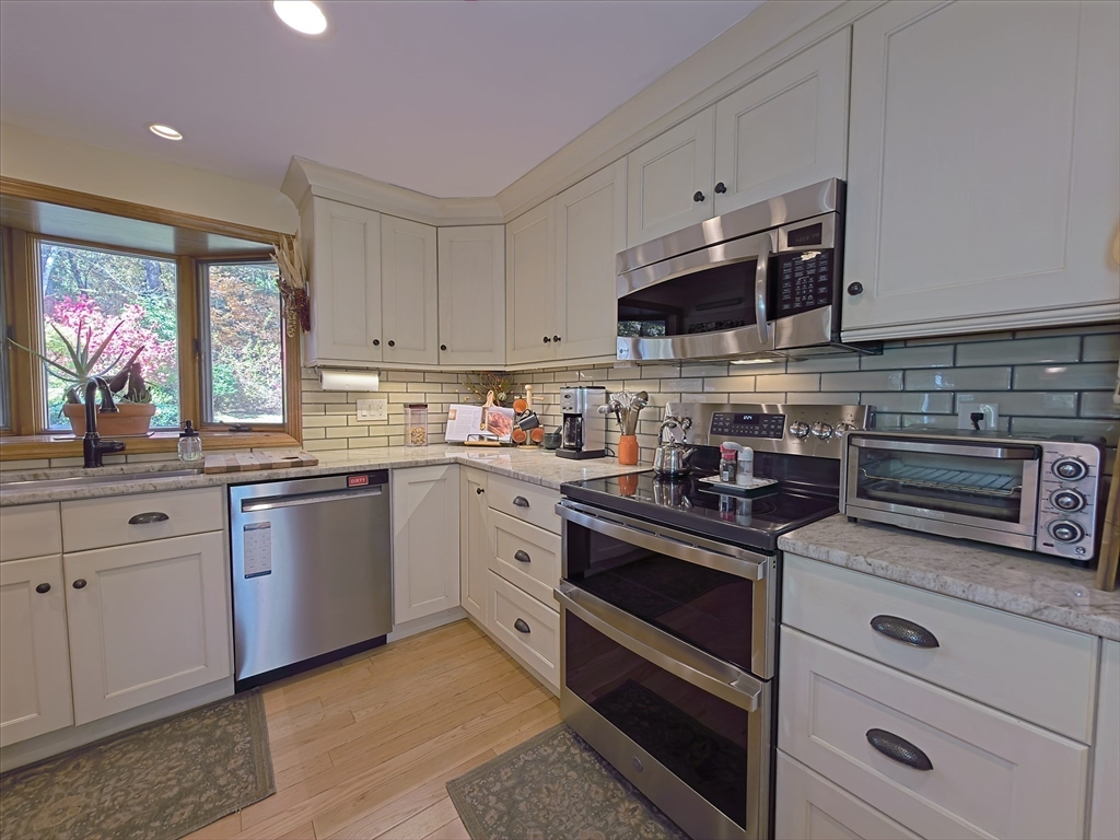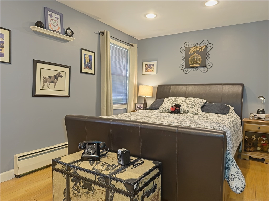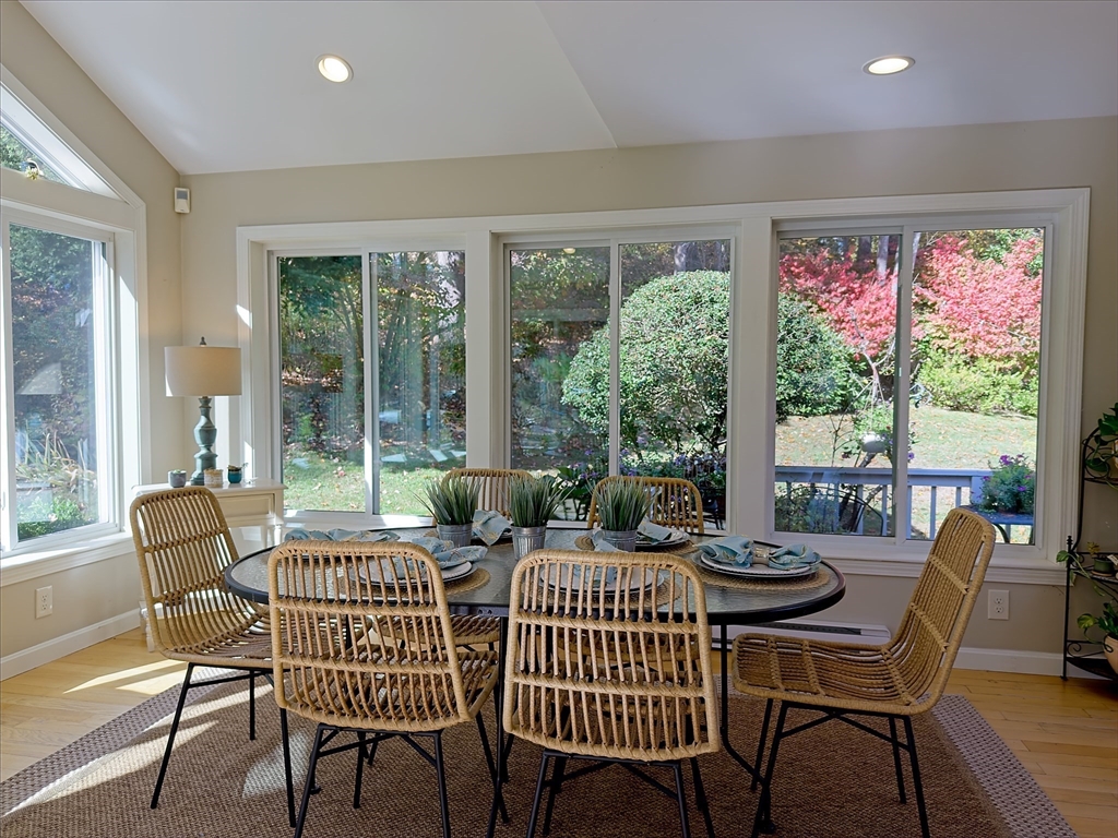Pride of Ownership shows in this inviting multi-level home. Offering 4 bedrms, 2.5 baths, & 10 spacious rms, including a sunroom, home office, laundry rm, & large dining area that opens to the kitchen & living rm—ideal for entertaining or relaxing. Enjoy the charm of 3 fireplaces located in the living, entertainment, & primary bedrm. The large primary suite features 2 closets, including a walk-in with parquet flooring, a sitting area, & a private bath with double sinks & a vanity area. Beautiful hardwood floors flow throughout. Thoughtful updates include a 2020 boiler & water heater, driveway & landscaping (2018), replaced front windows, & fencing along the driveway & front yard. The professionally landscaped lot features lush lawns, a sprinkler system, floral & vegetable gardens. A backup generator connection provides added peace of mind. A whole-house fan & 2 car garage enhance comfort & convenience. Very convenient to Rtes. 495 & 93 for access to Boston, the coast, or the mountains.