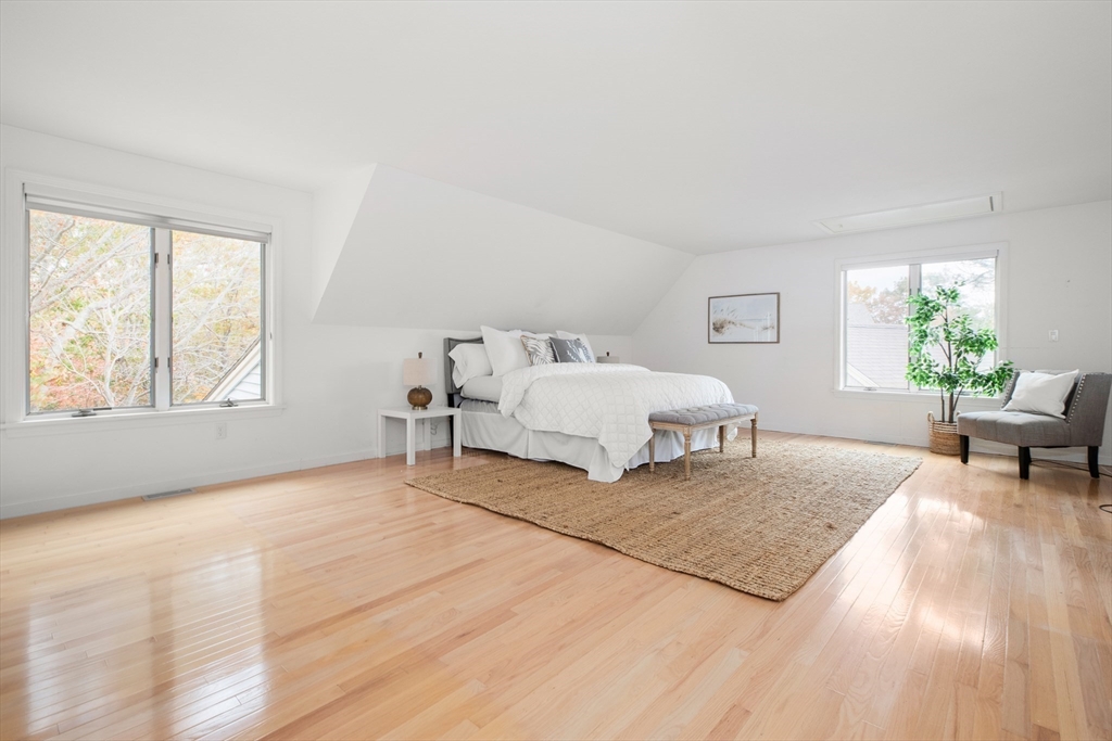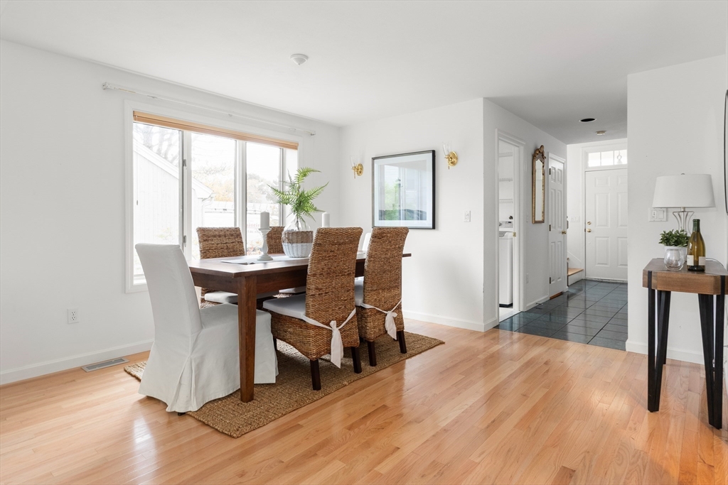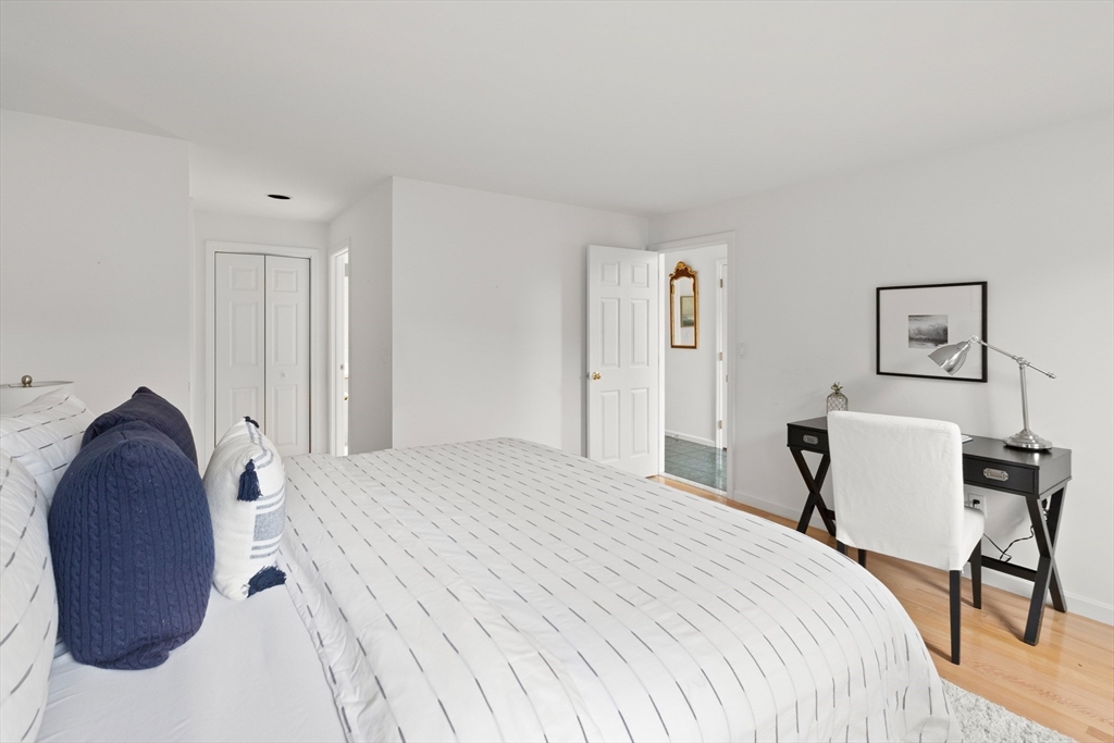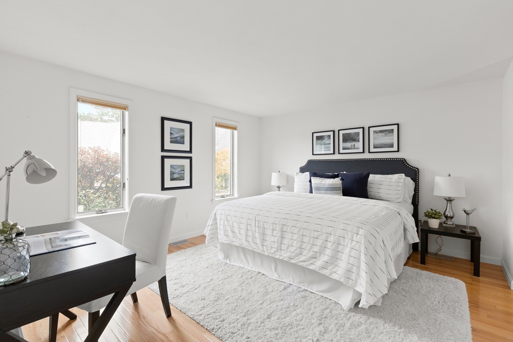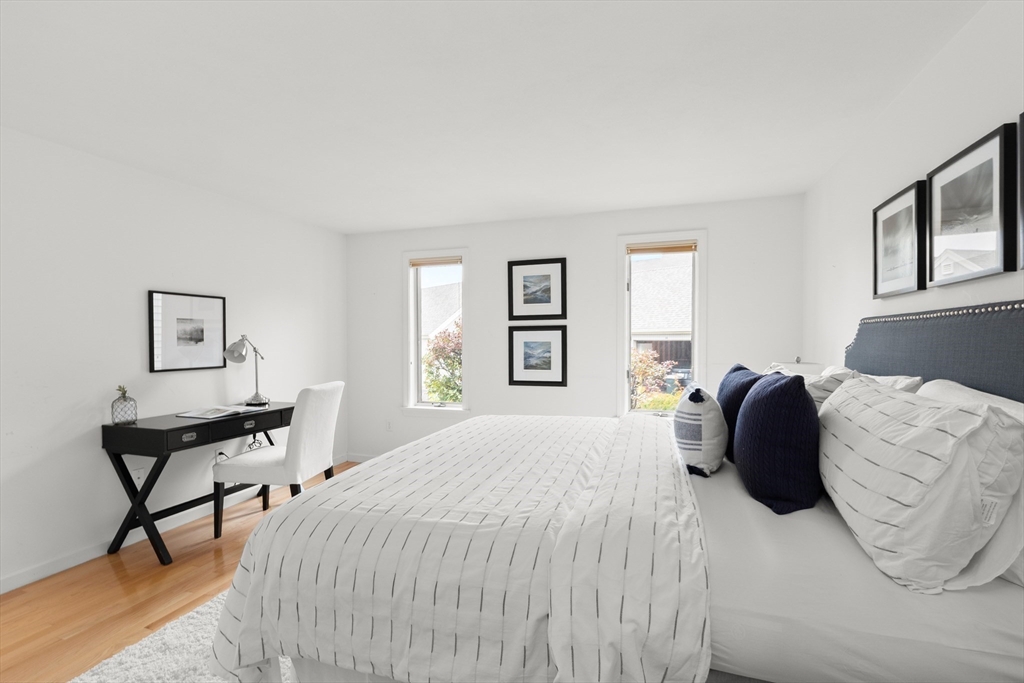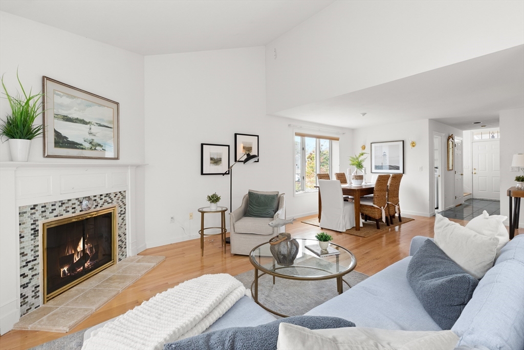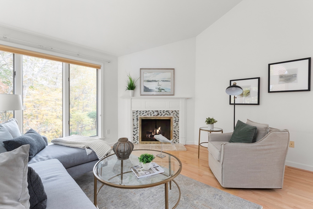 Discover a beautifully appointed end-unit condominium in the heart of Rockport. This spacious 3-bedroom, 3-bathroom home offers 2,262 square feet of refined living space, thoughtfully designed for comfort and convenience. Built in 1992, this well-maintained residence features a flexible layout with hardwood floors throughout and the potential for a first-floor primary suite. Upstairs, an oversized principal bedroom includes an adjoining bath and generous closet space, creating a luxurious private retreat. Natural light fills the open living areas, enhancing the warm and inviting atmosphere. Outdoor spaces include a deck accessible from both the kitchen and living room, as well as a ground-level patio for relaxing or entertaining. A single-car garage adds everyday practicality, while the prime location offers easy access to Rockport’s charming downtown, scenic coastline, and cultural attractions.