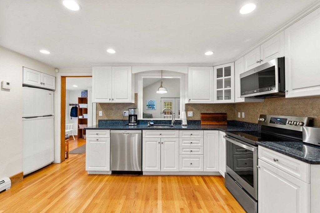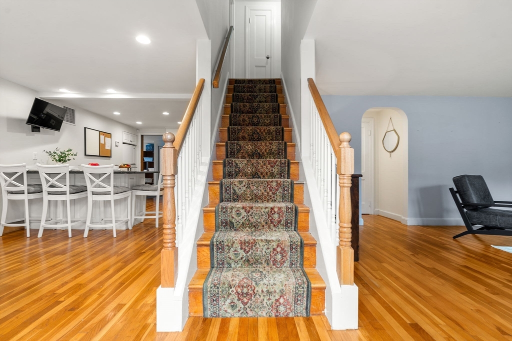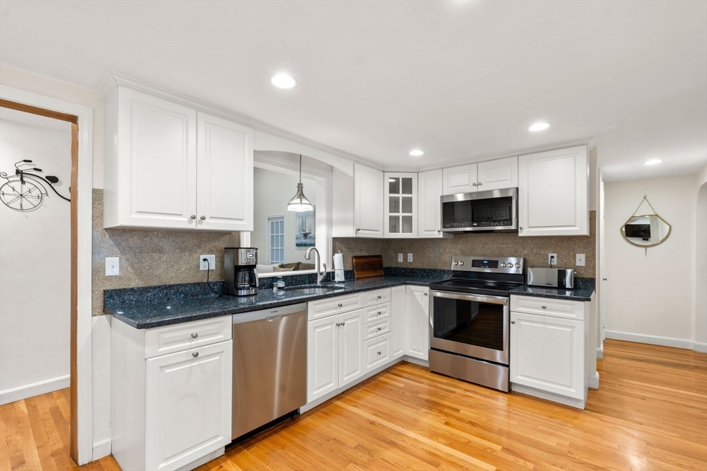 Move in ready and steps to all location this home checks all the boxes. From the large renovated island kitchen with breakfast room, or the recent family room with vaulted ceiling and primary suite addition to the recently finished room in the lower level. The front sitting room offers a fireplace with picture window and the recently added mudroom can be entered from a one car garage or side entryway. There is a new wrap around deck that overlooks the level fenced back yard. Second floor hosts two spacious bedrooms each with double walkin closets and space for desks that share a full renovated bath. Many upgrades have been done to this meticulously cared for home over past 10+ years including electrical, heating, ac, floors, bathrooms, paint and driveway just to name a few. Popular Islington neighborhood makes this such a convenient spot with steps to the train, shops, restaurants and playground. Not to be missed - Celebrate the holidays in your new home.