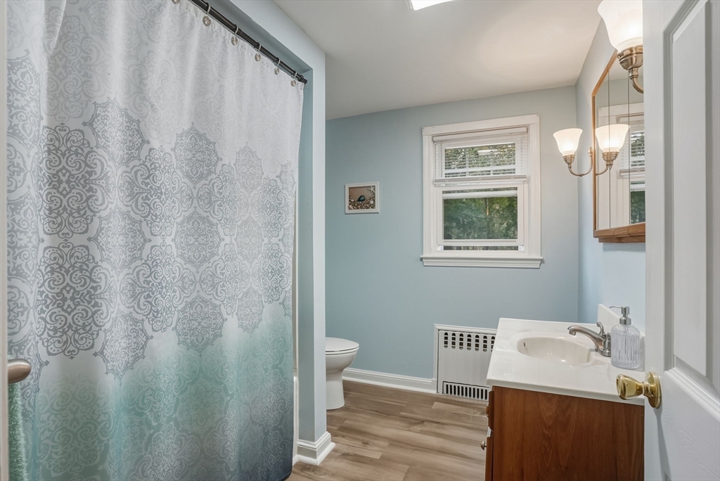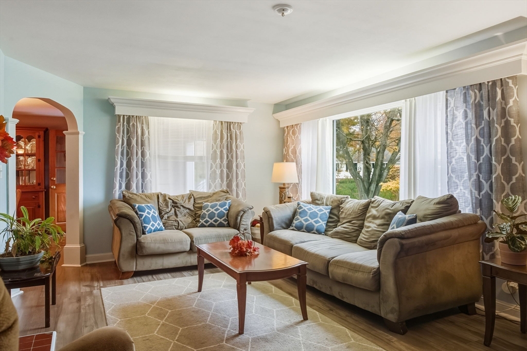 Conveniently located on a side street near Holbrook’s town center, 187 Belcher offers comfort, updates, and potential in a prime commuter-friendly setting. The spacious living room with a cozy fireplace opens seamlessly to the kitchen and dining area, creating a warm gathering space for everyday living. The kitchen features stainless appliances and a peninsula with seating for casual meals. Most windows are vinyl replacements, and major system upgrades include a newer roof (2019), boiler (2023), and electrical panel (2019). Updated vinyl plank flooring flows through the main living area, and all three carpeted bedrooms are generously sized. The full basement offers abundant storage, a cedar closet, and great potential for future refinishing. Outside, enjoy a fenced yard with an inground pool and plenty of space for outdoor entertaining. A one-car garage adds extra storage. Close to schools, parks, shopping, and major routes, this home combines space, convenience and long-term value.
