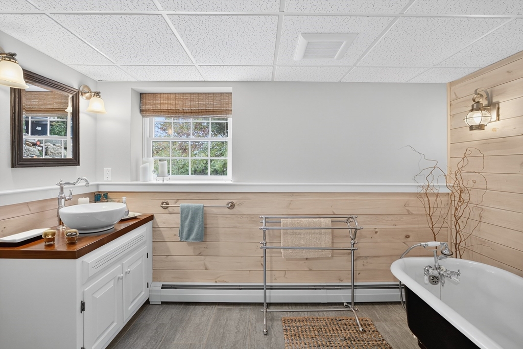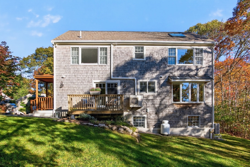 Tucked among mature trees and vibrant landscaping, this classic updated Cape-style home offers timeless New England charm with all the comforts of modern living. Enjoy a 1st floor Primary Bedroom Suite, Air-Conditioning, 1st Floor laundry, hardwood floors and a finished basement. Inside, you'll find a warm and inviting layout complete with wood burning fireplace. 2nd floor loft and lower level wood stove . The flexible floor plan offers comfortable living spaces, a well designed kitchen, and thoughtfully curated bedrooms that provide privacy and versatility for family or guests. Step outside to enjoy the tranquil setting—lush lawn, mature plantings, and a picturesque outbuilding that adds character and functional storage. The private backyard next to tidal marsh that leads to Israel Cove, offers a patio area ideal for outdoor dining or quiet relaxation beneath the trees. Located in one of Falmouth's most desirable areas.