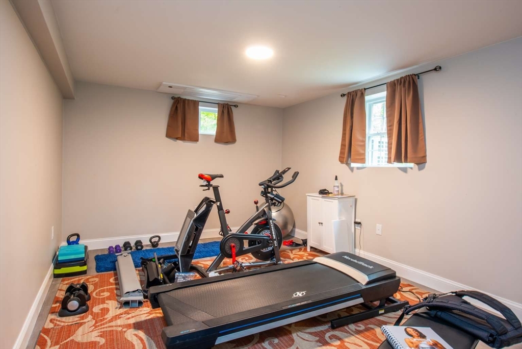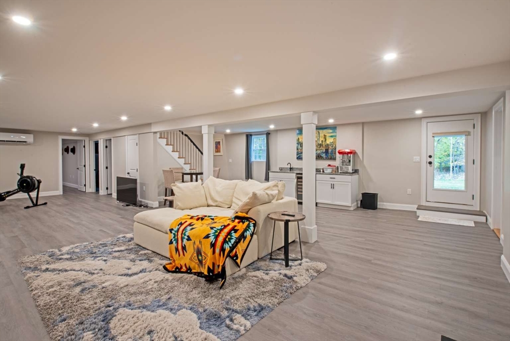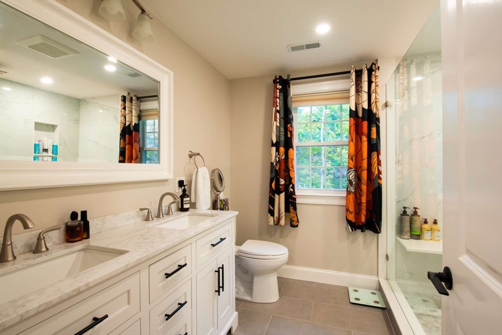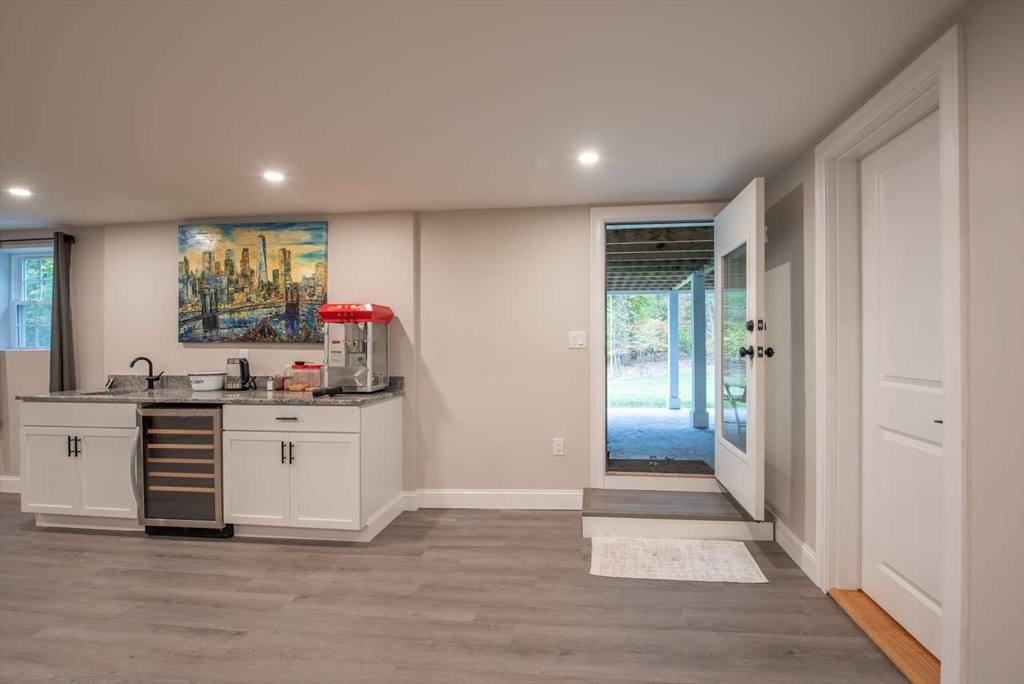 Completely renovated 3 Bedroom, 3 full bath custom ranch home with large covered front porch in highly desirable neighborhood. Open floor plan kitchen, dining and living room with wood burning fireplace & slider to large new rear deck. Kitchen with white shaker cabinets, large center island, custom quartz countertops and new stainless-steel appliances. First floor includes primary suite with custom walk-in closet, en-suite luxury bath with walk-in glass enclosed shower, 2 additional spacious bedrooms and laundry. Large lower level includes a den with wet bar and fireplace, game/exercise room, office, full bath, plenty of storage and walk out to large patio and level yard. Two car attached garage leading to the kitchen via mudroom with custom coat tree. Additional features include 200 amp electrical service, gas forced air heating, central A/C, and on-demand water heater. Large corner lot, town beach nearby. Top-rated public schools. Commuter dream location close to all major routes.