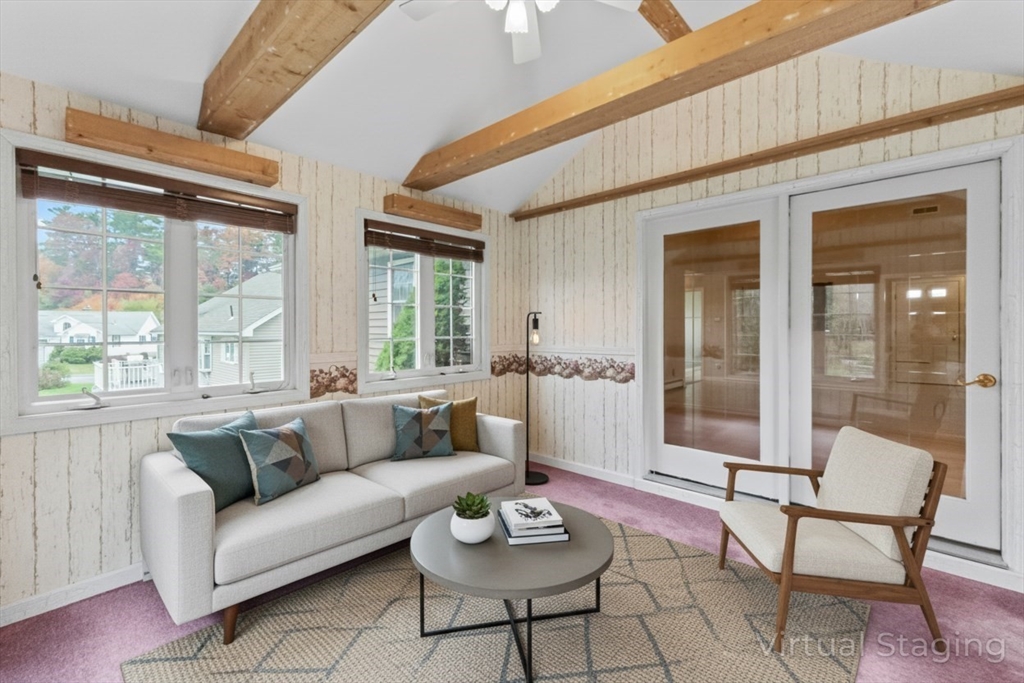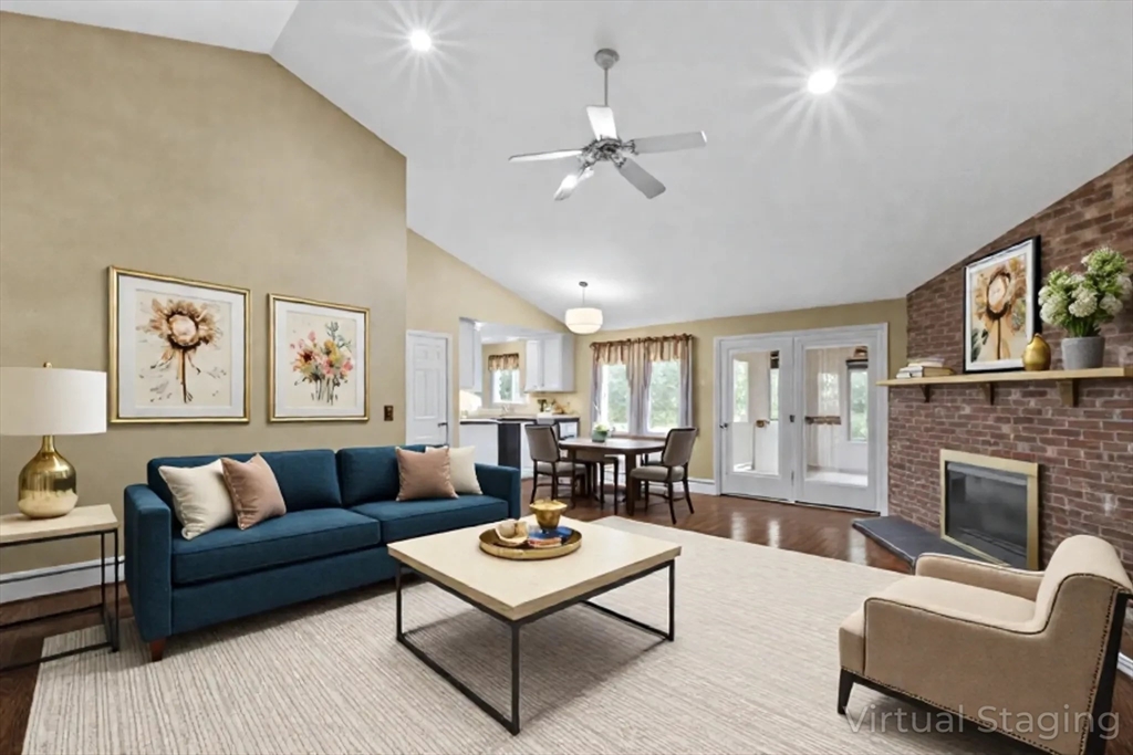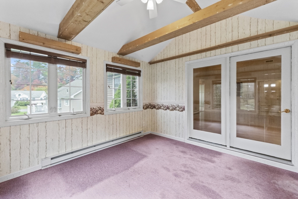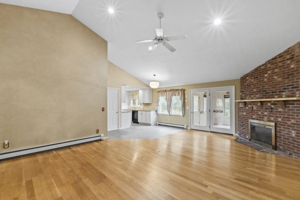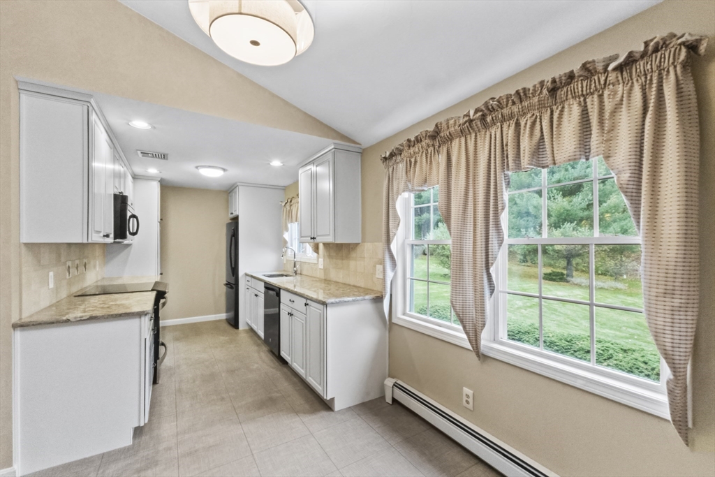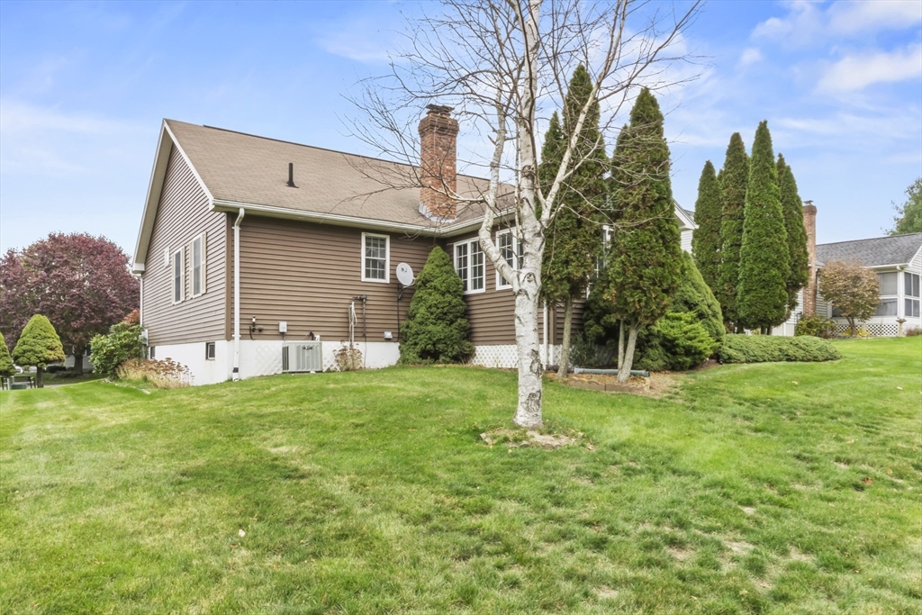 Welcome to single level living in Northboro's sought after Birchwood community, an active 55+ community! This 3BR, 2BA detached condo offers the privacy of single-family living w the ease of condo life enhanced by the community. The heart of the home is the open concept living space. The sun-drenched LR w cathedral ceilings, gleaming hardwoods & cozy fireplace makes for a perfect gathering space while the updated kitchen w SS appliances & quartz counters is the perfect size for prepping for a small dinner or large gathering! Off the LR, you'll find a charming 4-season sunrm overlooking a large backyard. There are 3BRs, inc. a primary suite w walk-in closet & private full BA. Laundry off the entry foyer is ideal for single level living. Enjoy the convenience of a 1 car att’d garage, central A/C & private back patio. Well pump replaced 2023 & A/C 2022. Great location for easy access to local amenities such as shops, restaurants & major routes! 2 dogs no more than 15 lbs each.