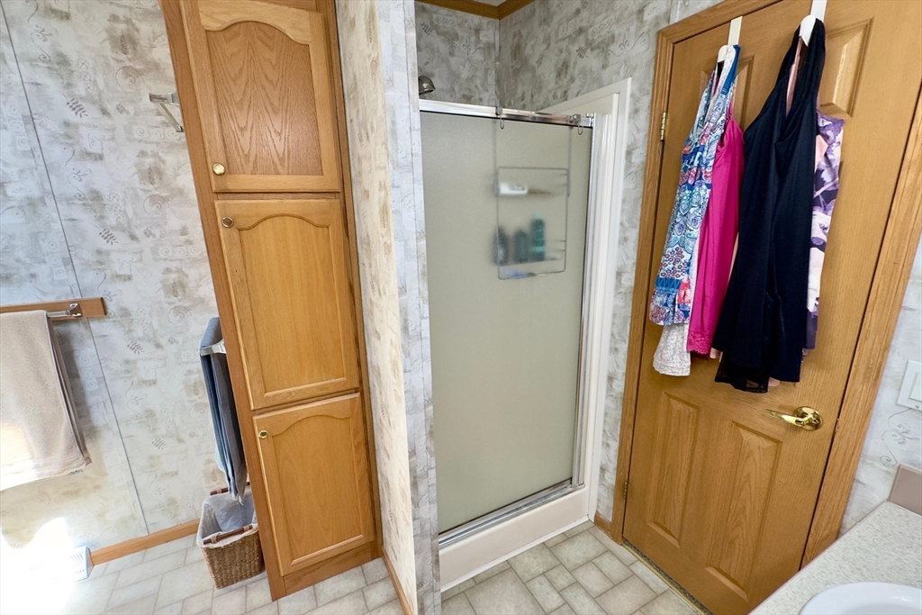 Welcome to Windbrook Acres Co-Op! This impeccably maintained 2003 Titan double-wide offers 1,568 sq. ft. with 3 bedrooms and 2 full baths. Enjoy a spacious open-concept living room with a propane fireplace leading to a large kitchen featuring abundant cabinetry, generous counter space, and an adjoining dining area for six. A laundry room with pantry storage sits off the kitchen. One wing includes two bedrooms with walk-in closets and an updated full bath with a white walk-in shower. The opposite side offers a private primary suite with a walk-in closet and luxurious bath with double-sink vanity, walk-in shower, and jacuzzi tub. A versatile bonus room with plumbing for a sink makes a great hobby or craft space. Outside enjoy a 26’x10’ covered deck, 16’x10’ powered shed, two-car driveway, central A/C, propane heat, and new roof (2023). Lot fee $250/month includes water, sewer, trash, snow, and taxes; $19,000 co-op buy-in included in price!