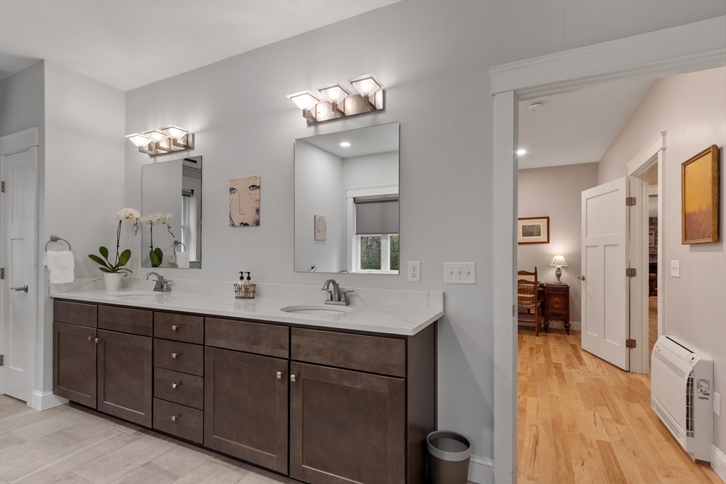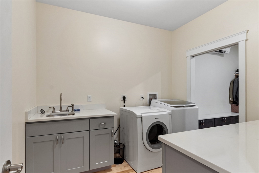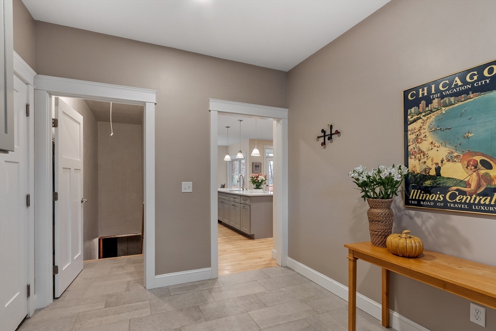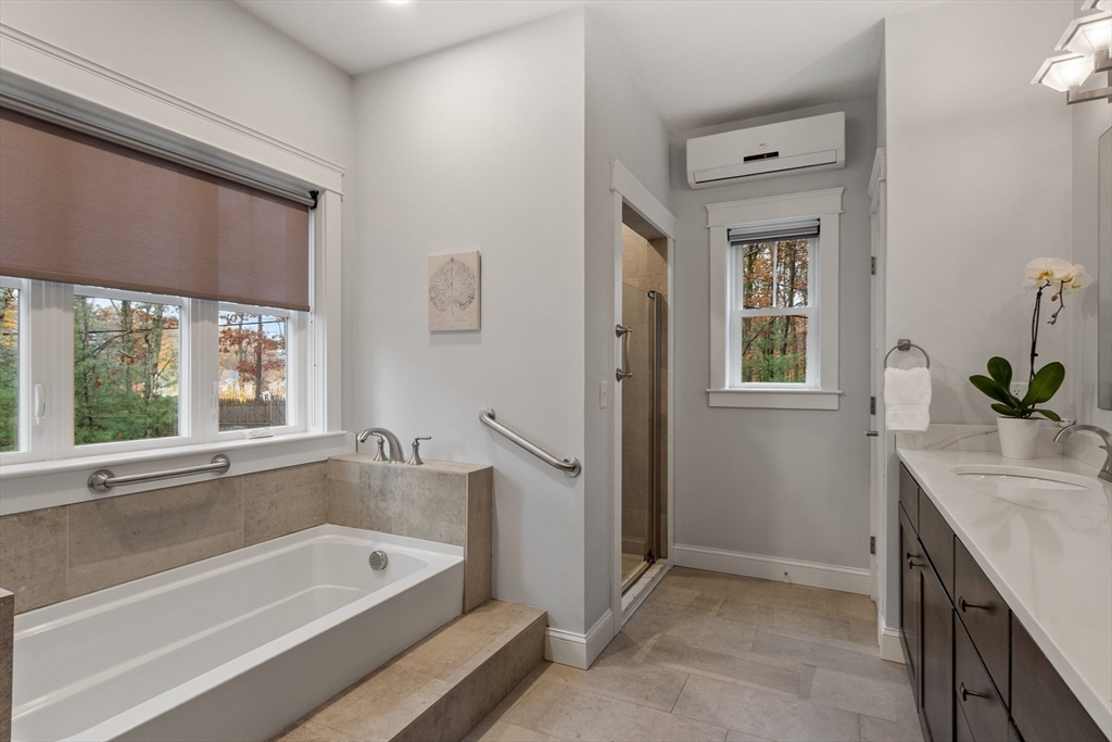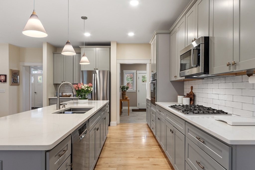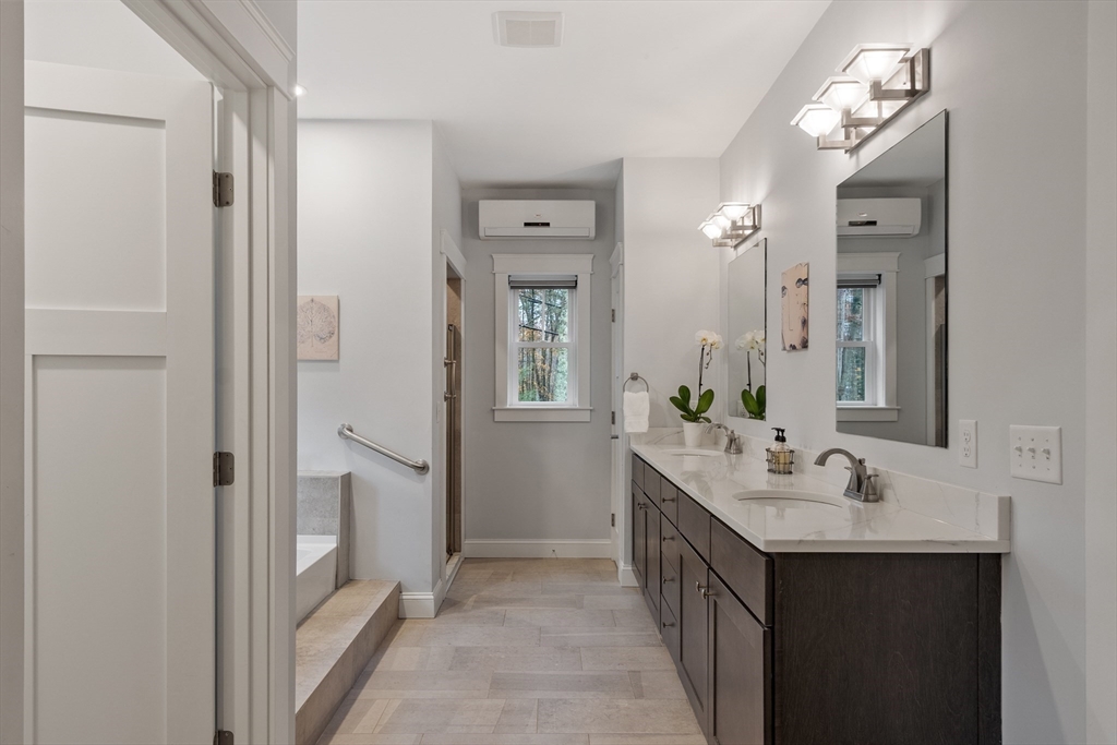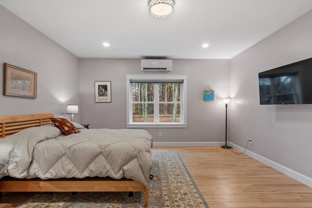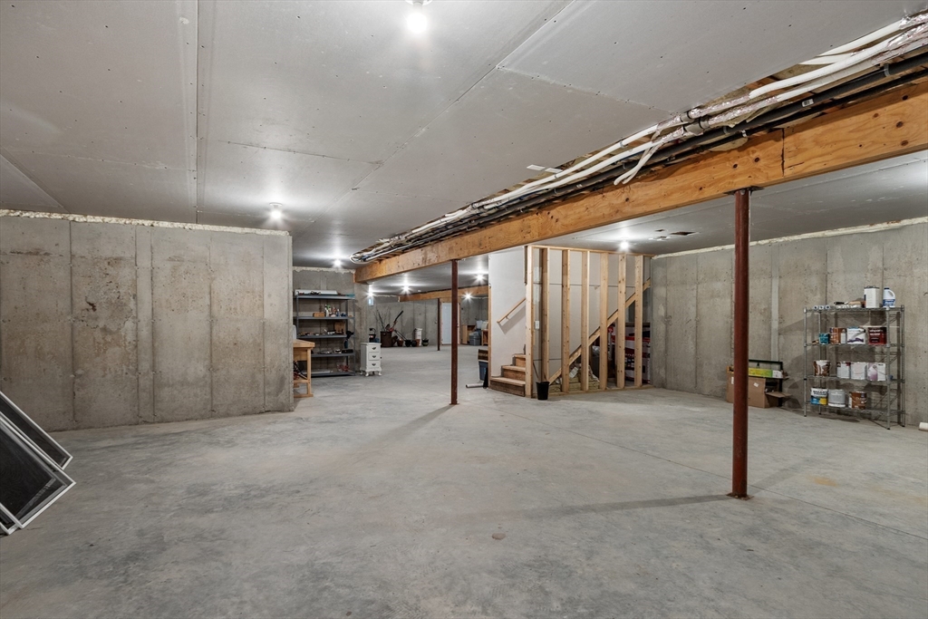 Rare opportunity! This 6-year-young custom ranch blends quality craftsmanship, energy efficiency, and modern comfort on a quiet country road. The covered porch welcomes you into a spacious mudroom that opens to a bright, open-concept living area with gleaming hardwood floors, large windows, and a cozy gas fireplace.The chef’s kitchen features quartz countertops, custom cabinets, and a large island. Sunlit dining and living spaces flow seamlessly to a private fenced backyard with a patio—ideal for relaxing or entertaining. The main suite includes a walk-in closet and a spa-like bath with double vanity and quartz finishes. Three additional bedrooms offer large closets, and the 2nd full bath has double sinks and separate tub area. A two-car garage and expansive unfinished basement provide excellent storage and expansion potential. Updates include mini-split systems, owned solar panels, water filtration, and a backup generator. Convenient to Hudson Center, Highland Commons, and I-495/I-290