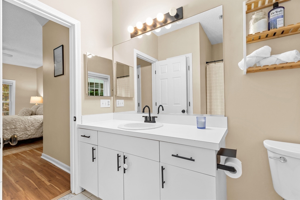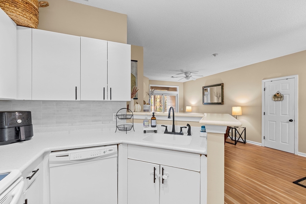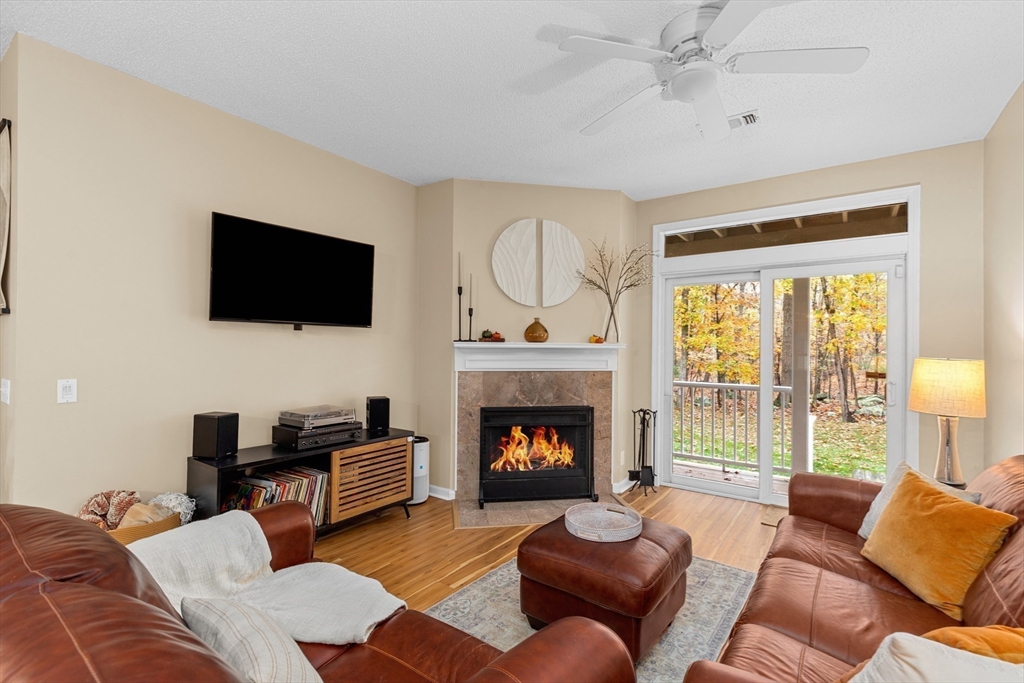 This sparkling and move-in ready one level condo is located at the end of desirable Devon Wood condominium complex. Walk right out from the living room slider to a Trex deck with an additional storage closet and private wooded back yard. Step into the bright, open-concept living space, perfect for entertaining or relaxing, complete with new flooring, fresh paint, a wood burning fireplace and lots of closet space. Nestled on 350 acres of beautifully preserved woodlands and accessed by a private road, Devon Wood offers a serene escape with walking trails, tennis courts, and a resort-style pool and jacuzzi. This one won't last!
